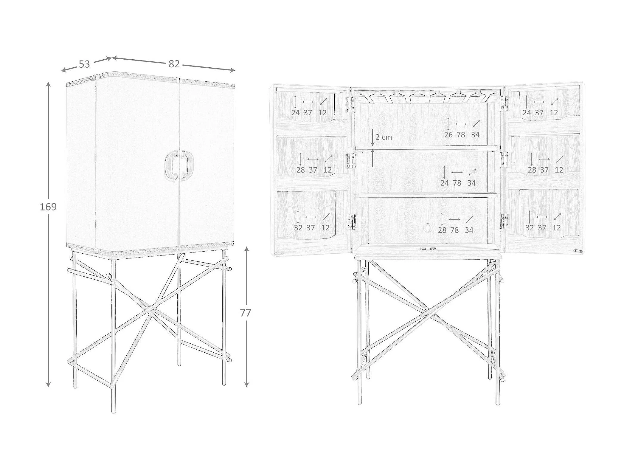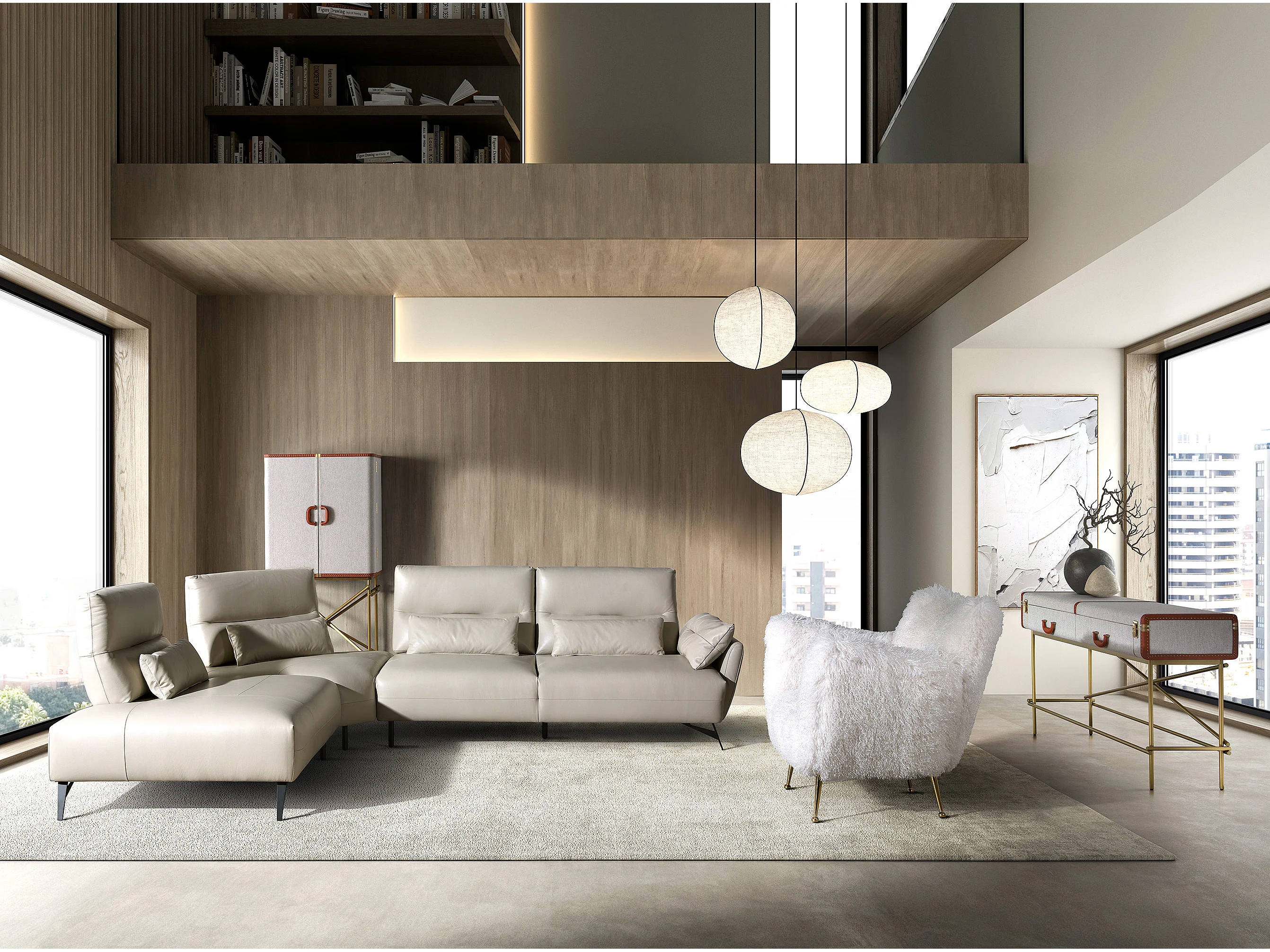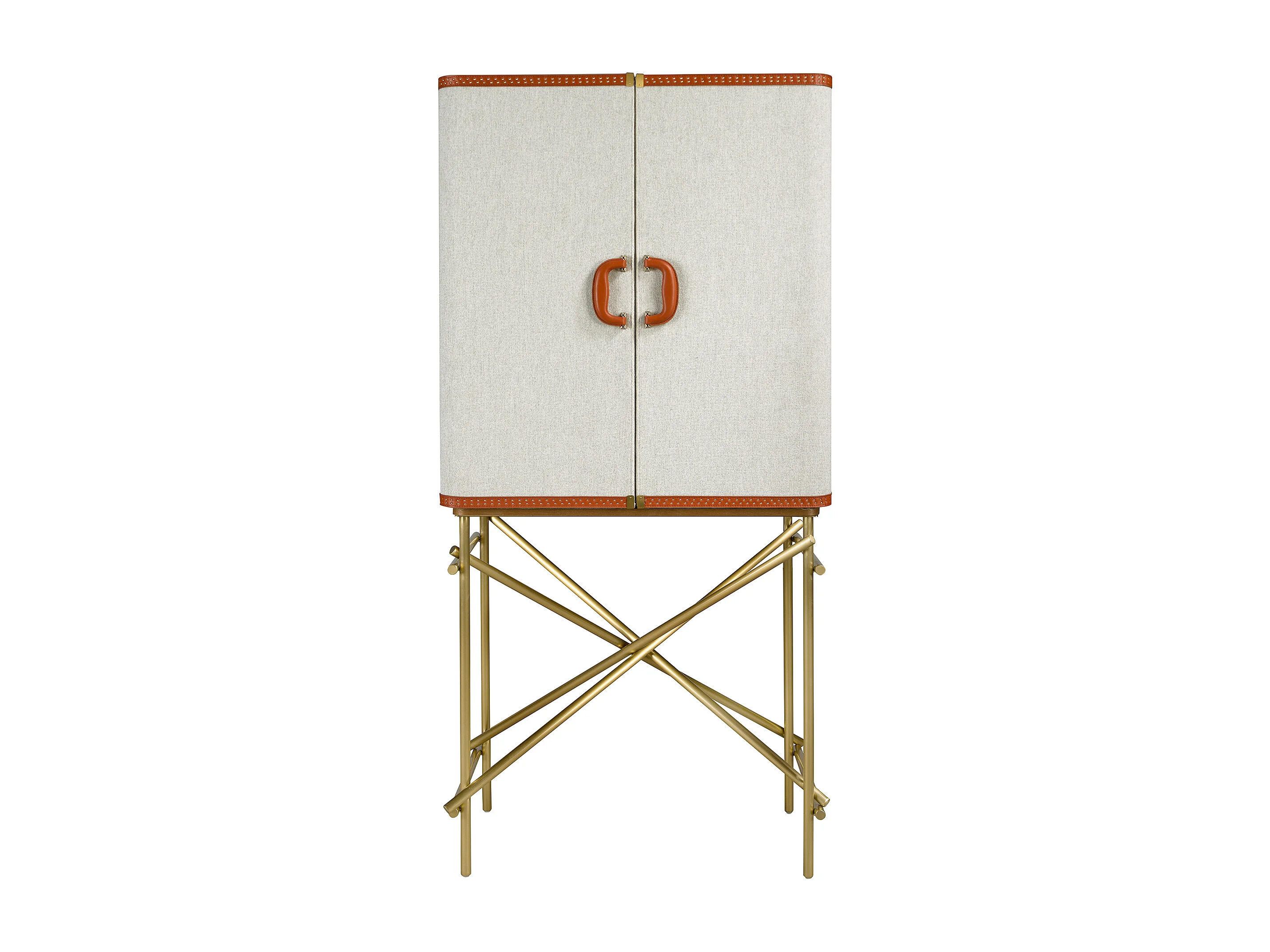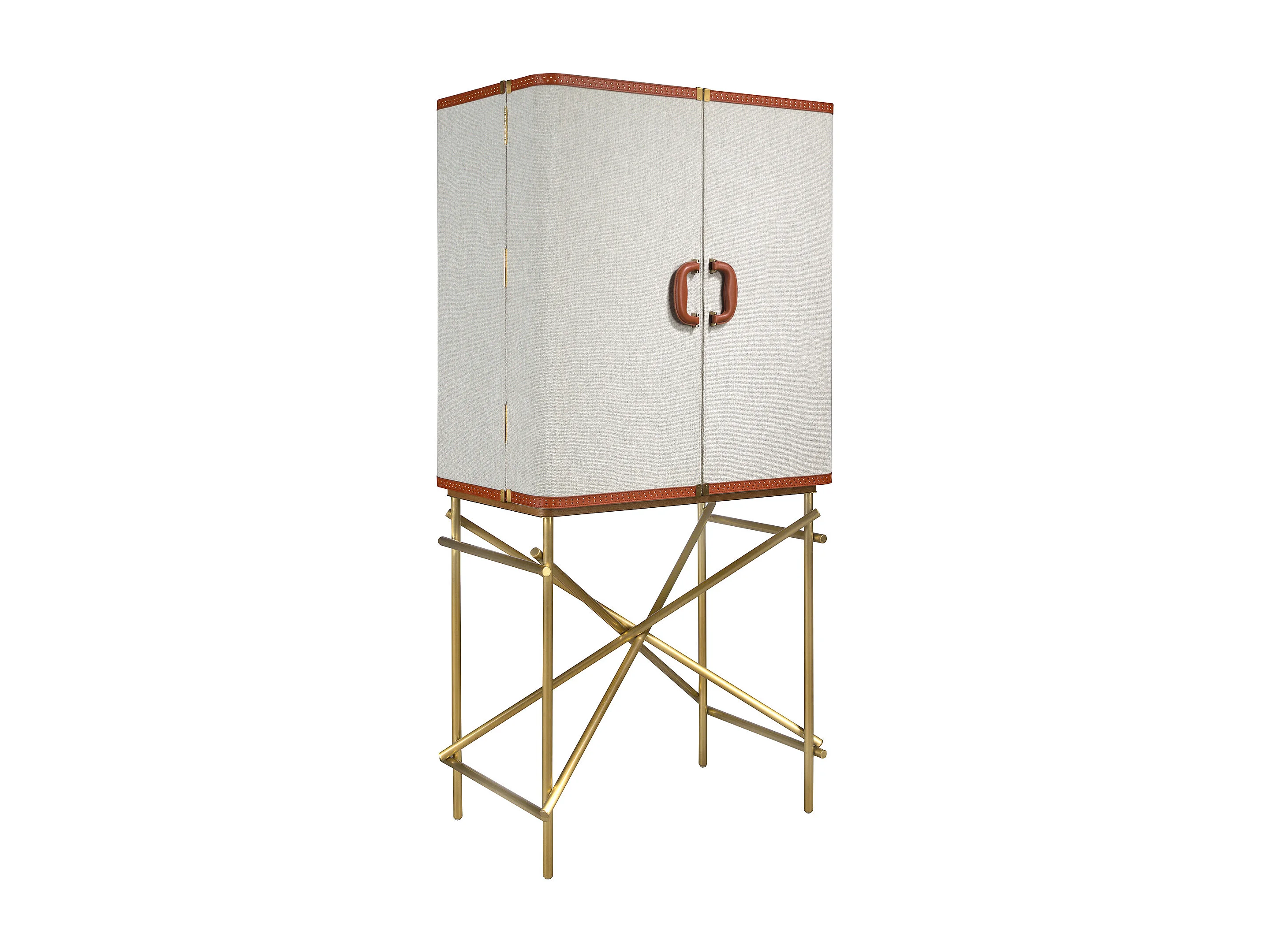 Großes Sideboard, Stoff, Nussbaum und goldfarbener polierter Stahl 3272 ANGEL CERDA