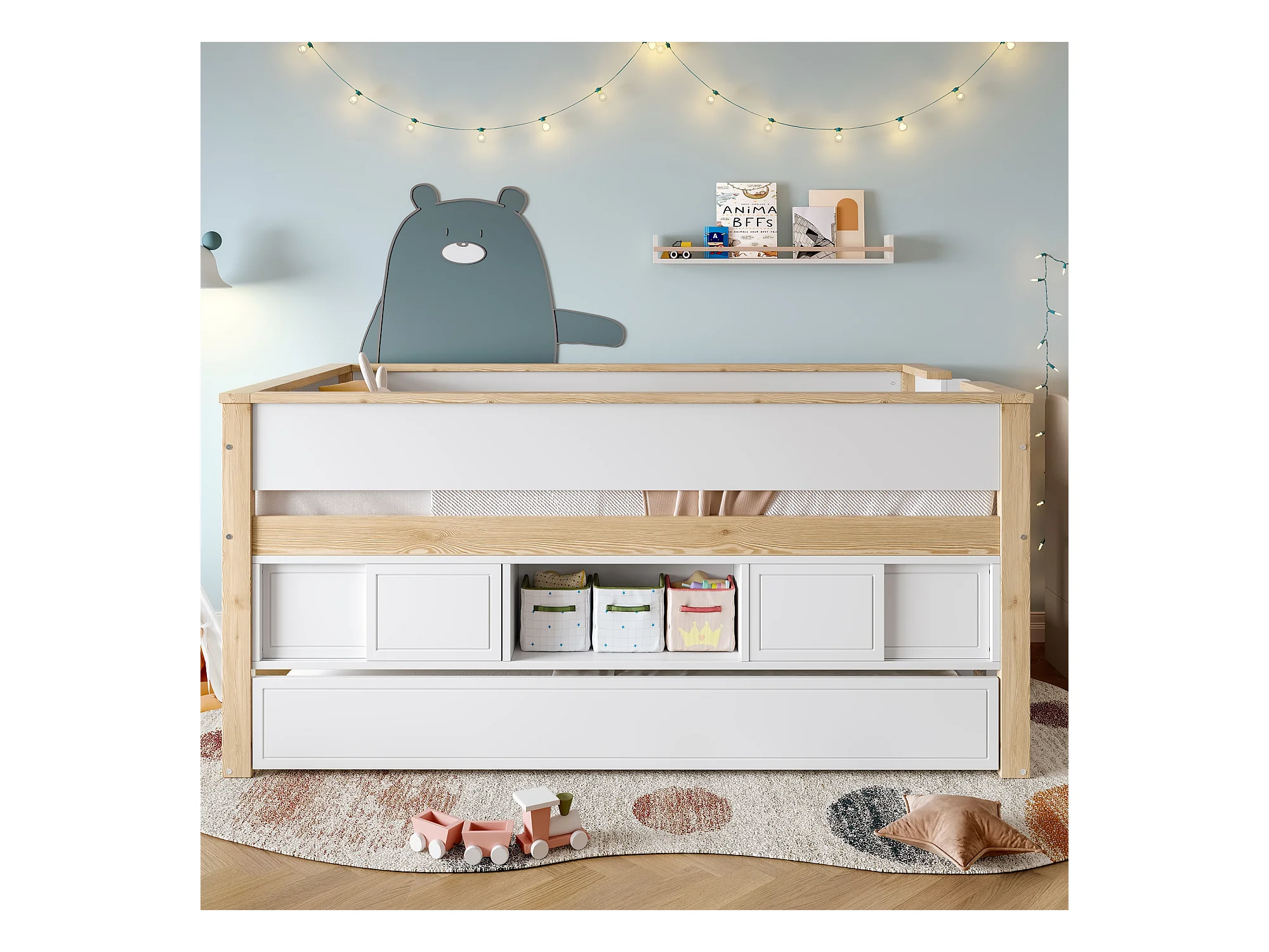 Halbhohes Bett, 90x200cm, Bett mit ausziehbarem Bett,Kinderbett,Mehrere Ablagefächer