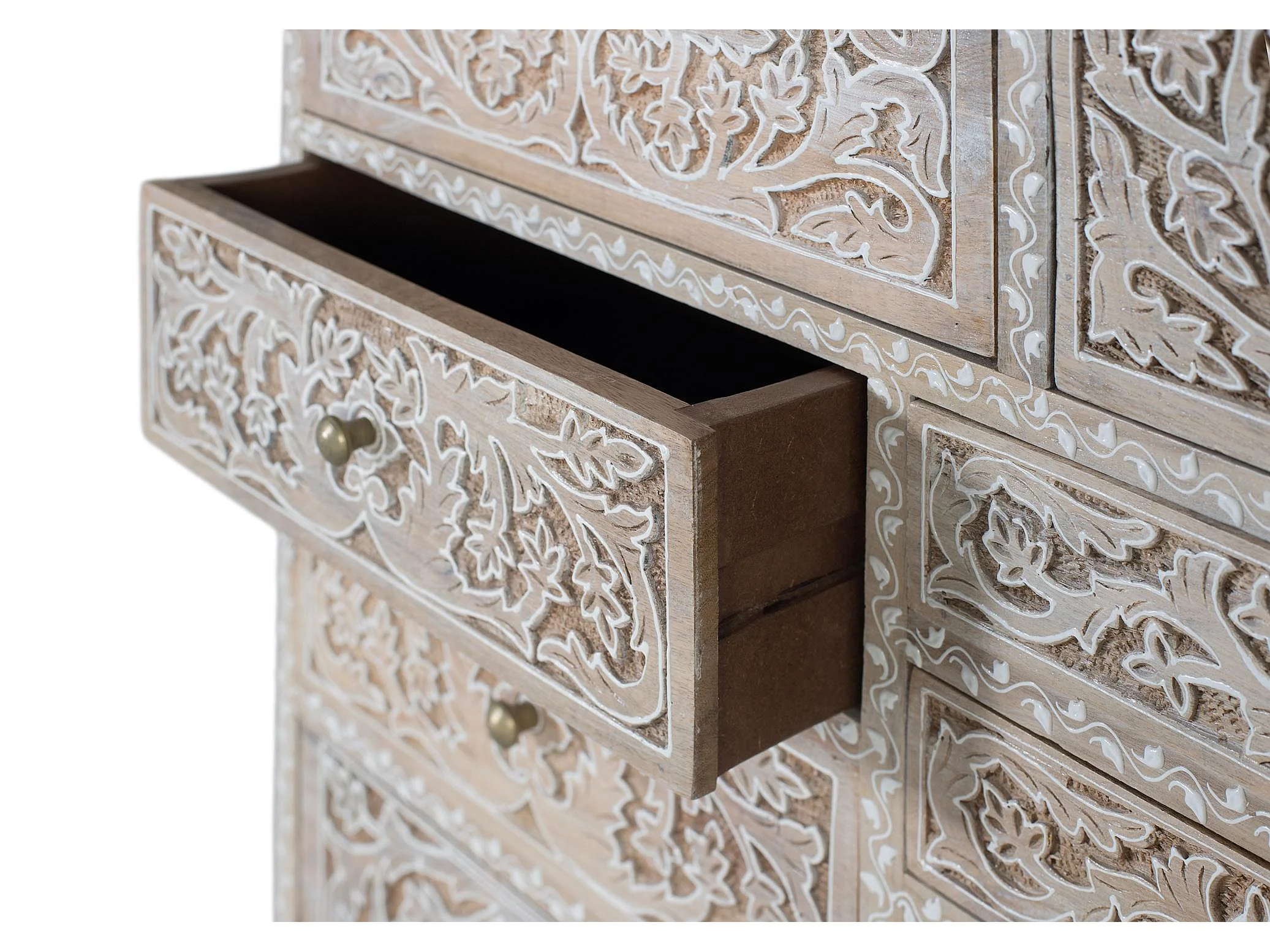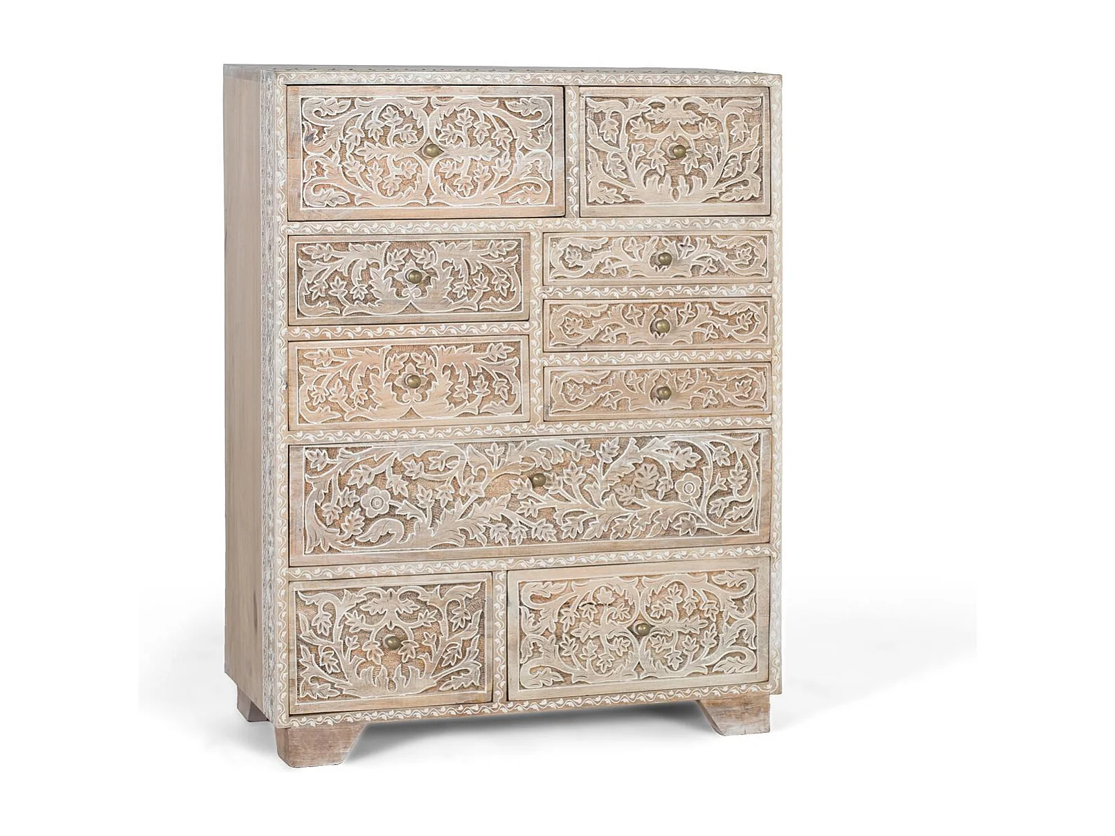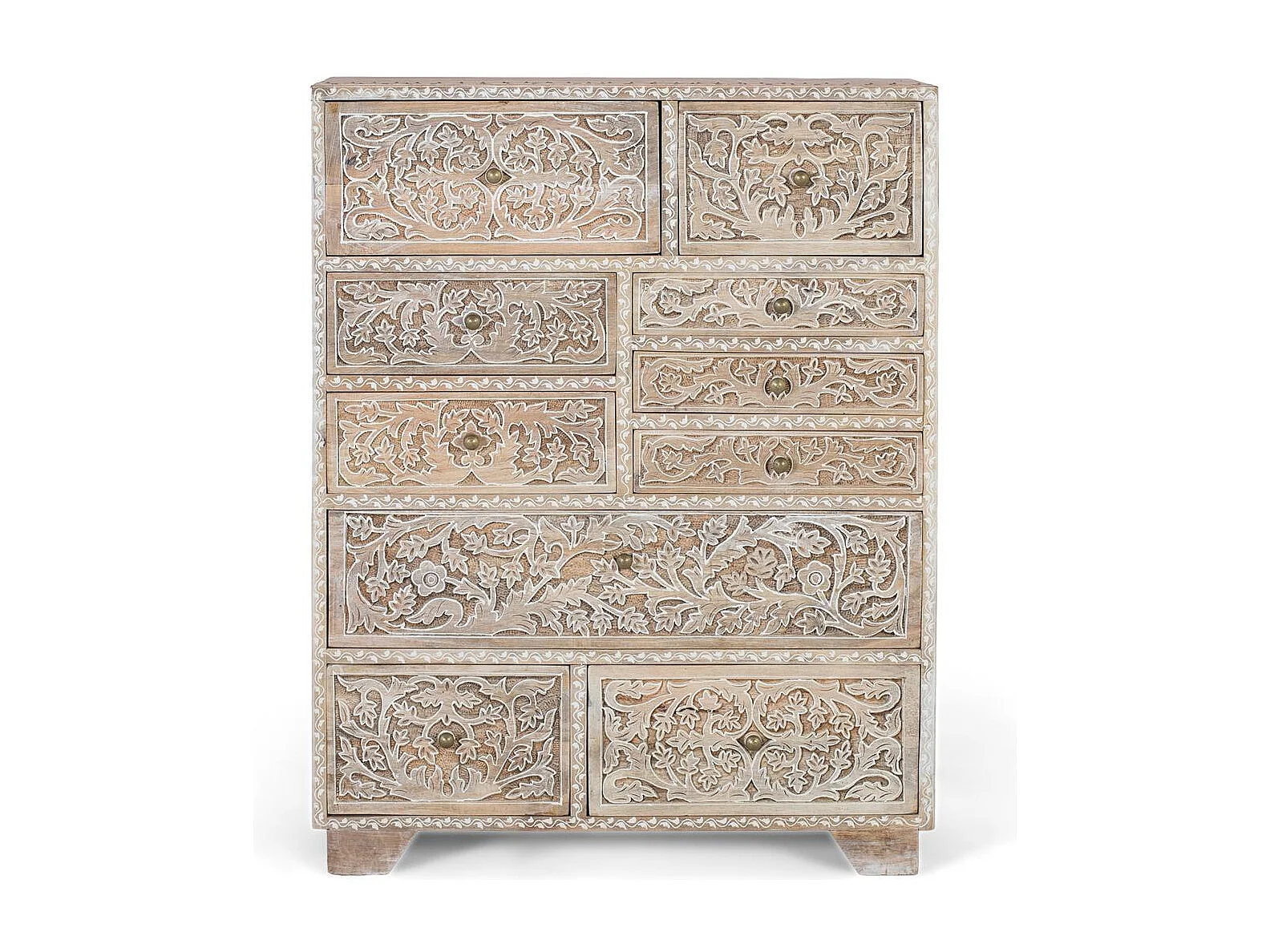 Handgeschnitzte Kommode aus Mangoholz mit zehn Schubladen