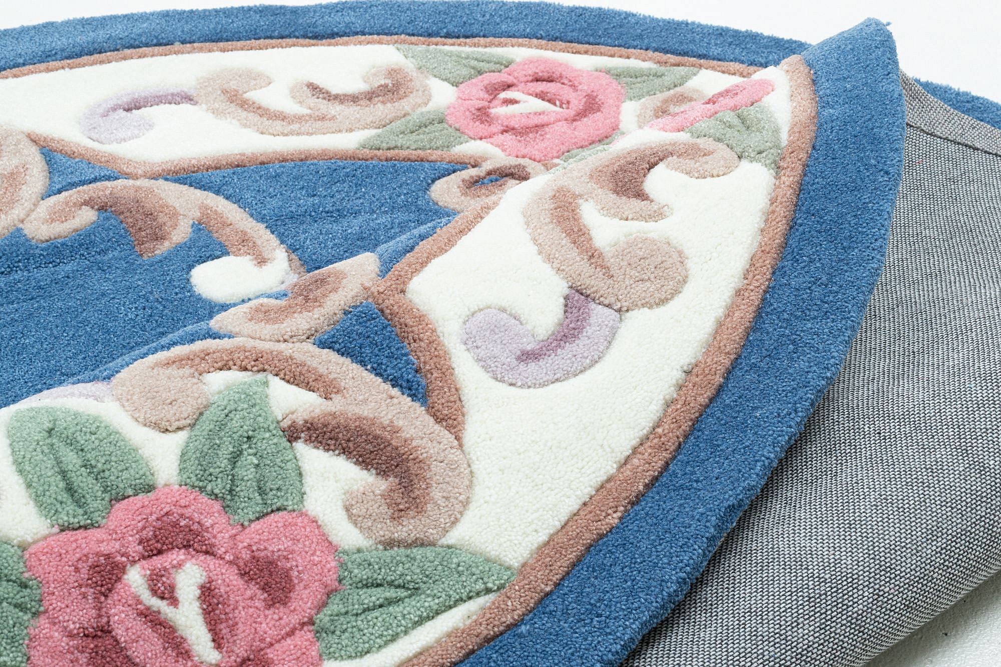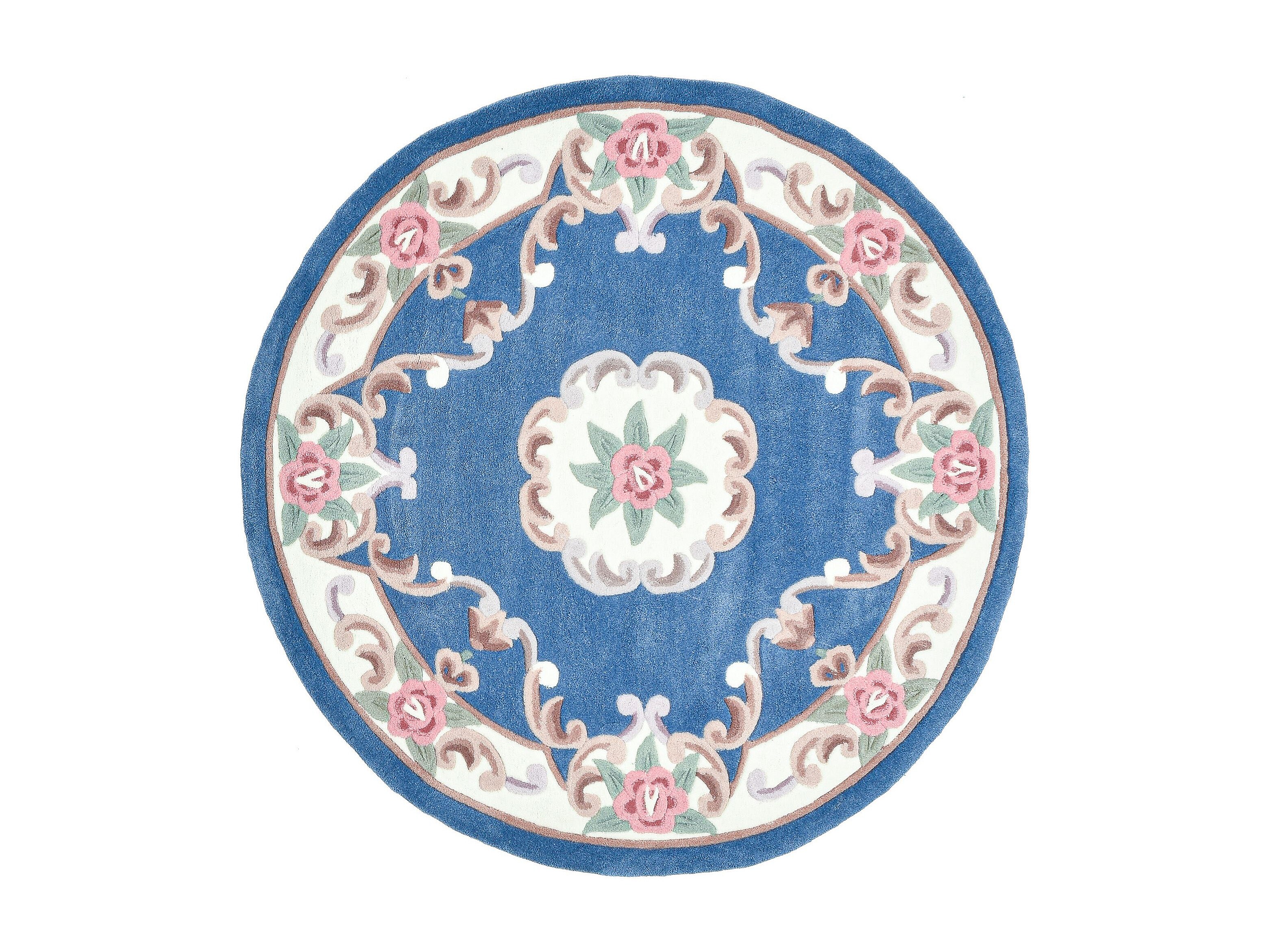 Handgetufteter Teppich mit Bordüre im Aubusson Design 190x190 cm Blau Ming