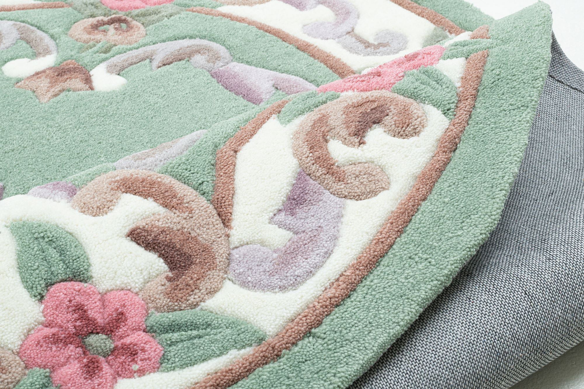 Handgetufteter Teppich mit Bordüre im Aubusson Design 190x290 cm Grün Ming