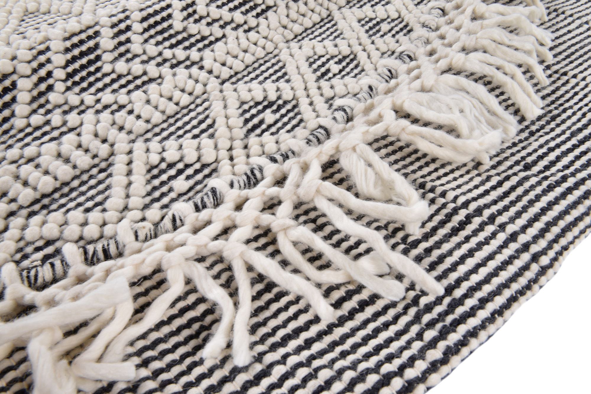 Handgewebter Teppich im Ethno Design 140x140 cm Grau Colored Macrame
