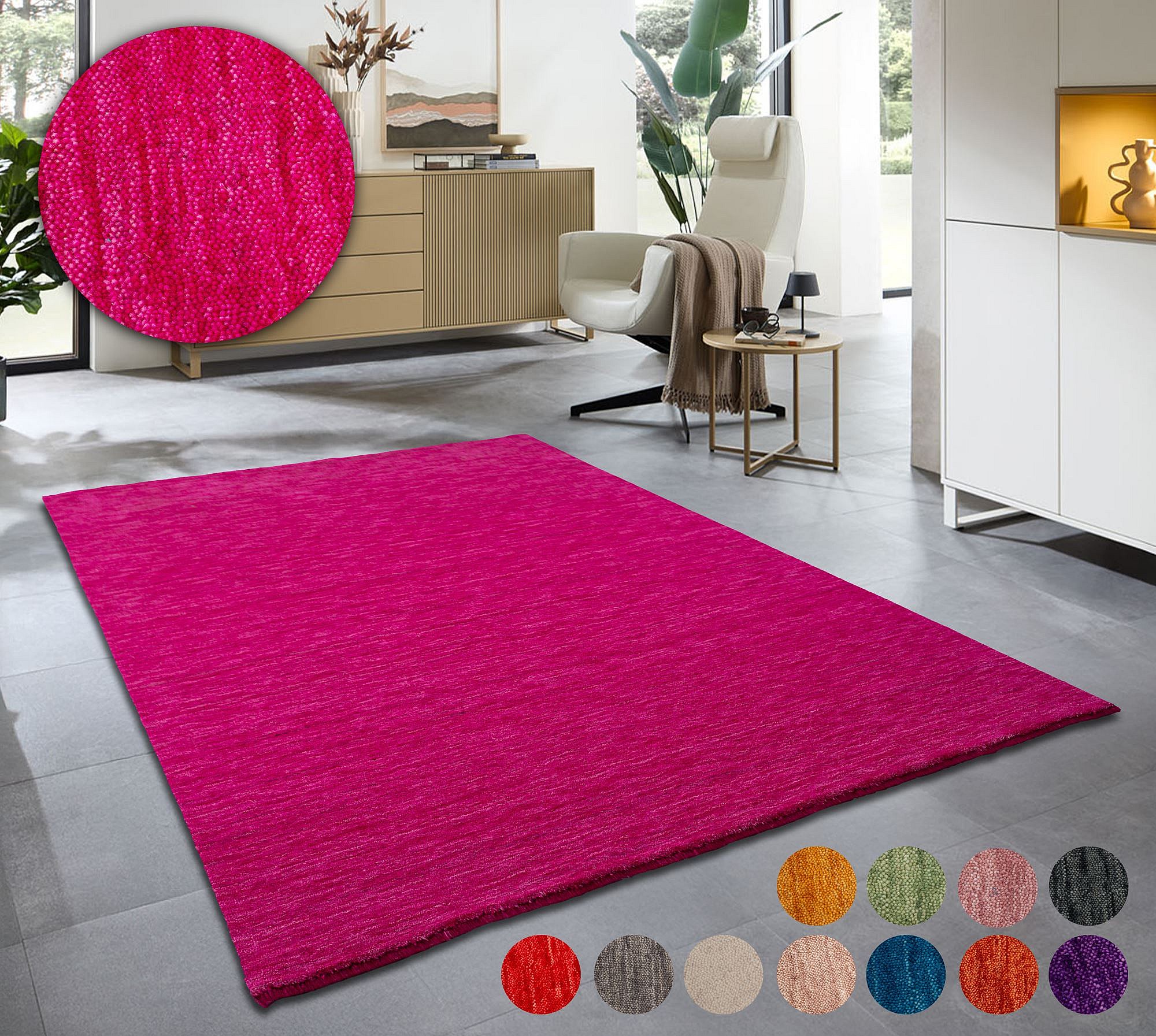 Handgewebter UNI Teppich 70x140 cm Pink Holi