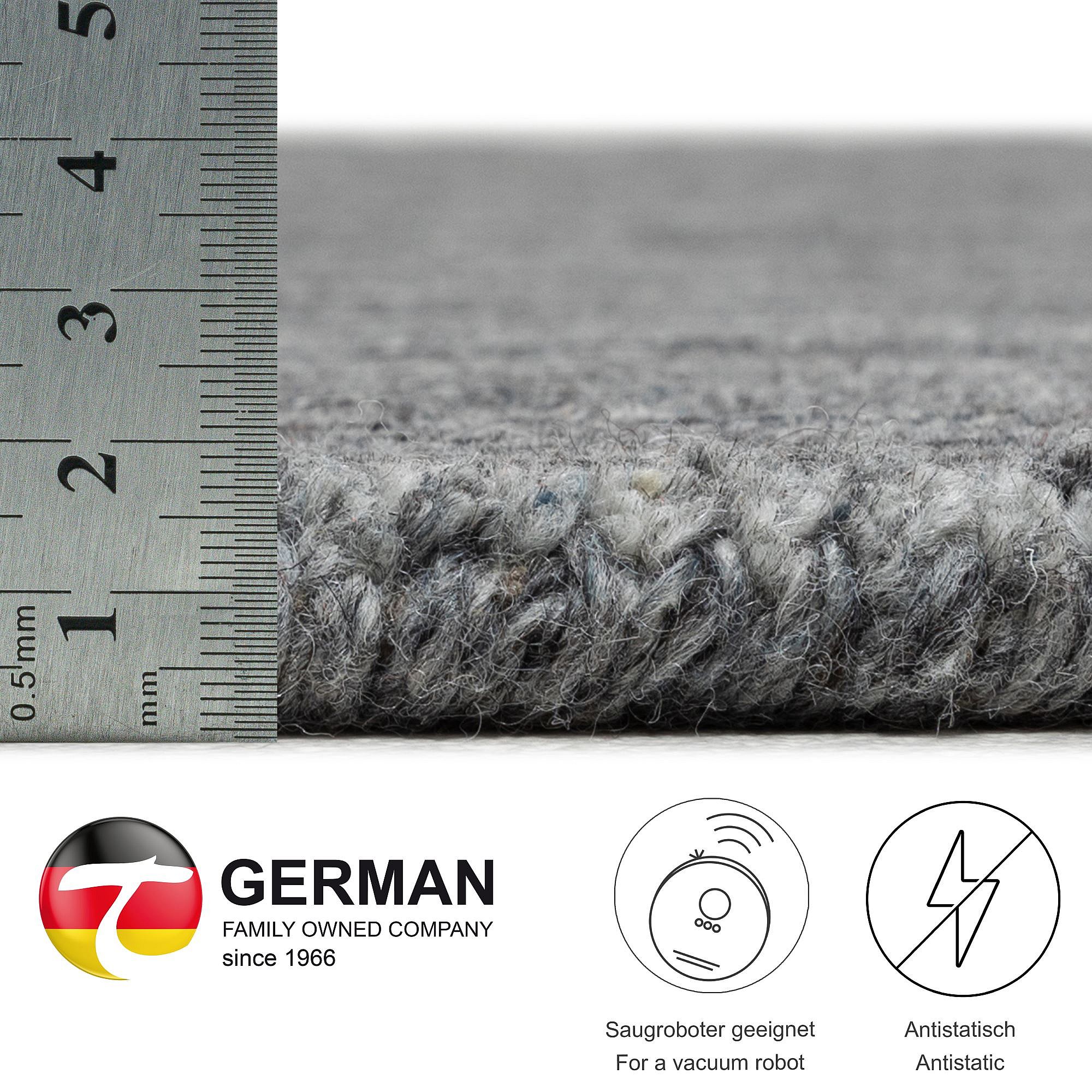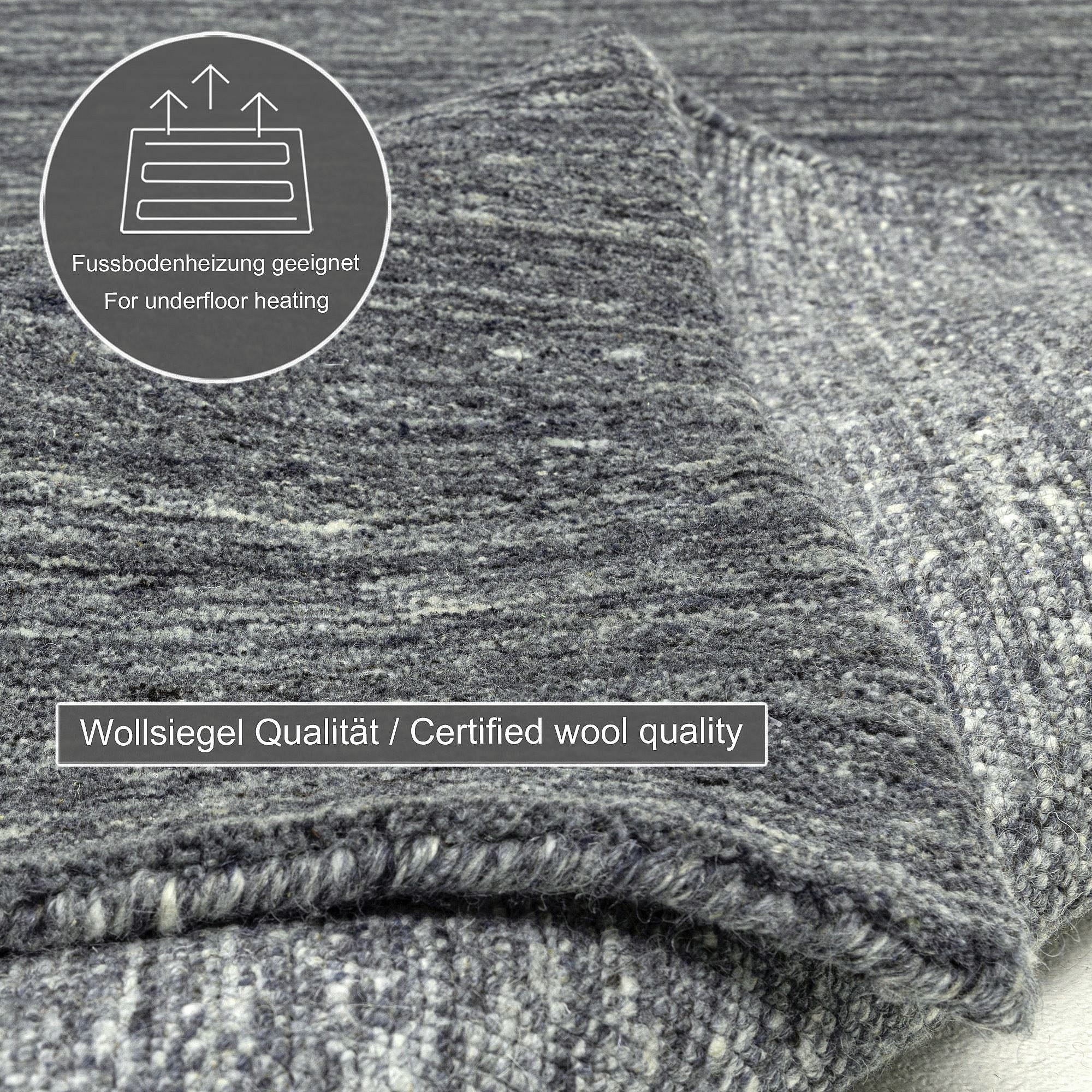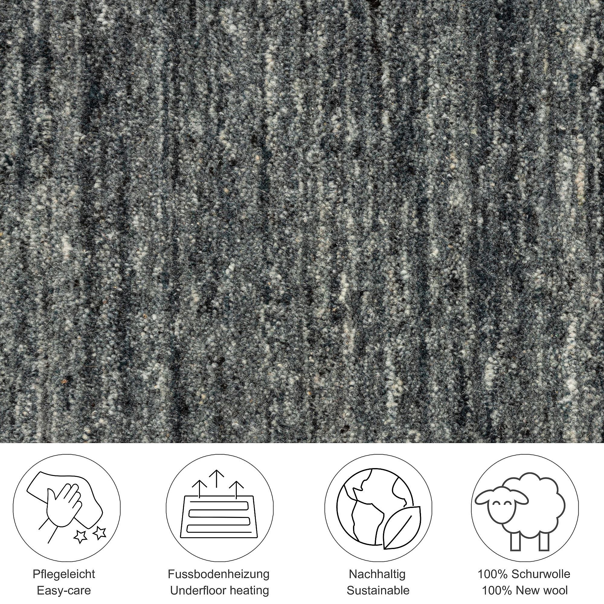 Handgewebter UNI Wollteppich 190x290 cm Anthrazit Pure