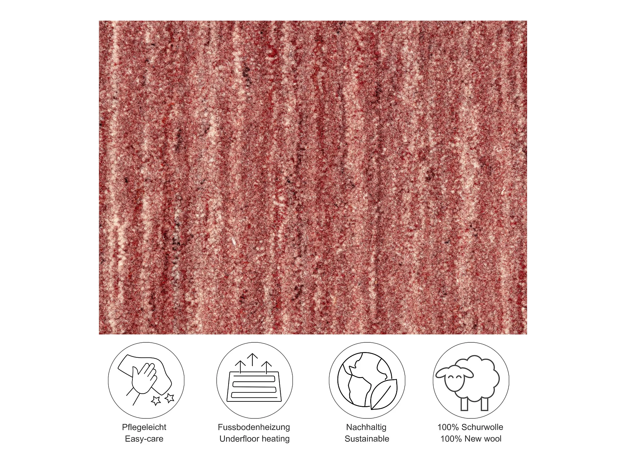 Handgewebter UNI Wollteppich 70x140 cm Rot Pure