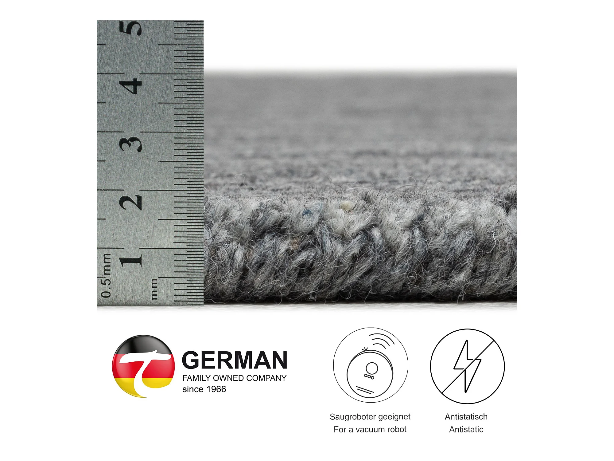 Handgewebter UNI Wollteppich 70x140 cm Anthrazit Pure
