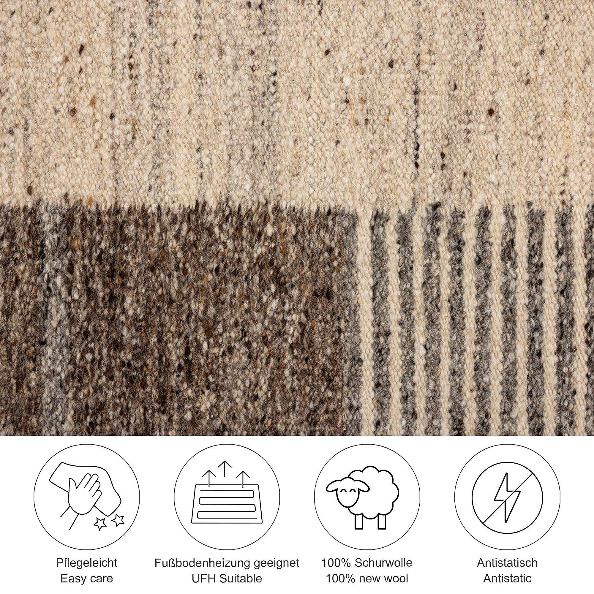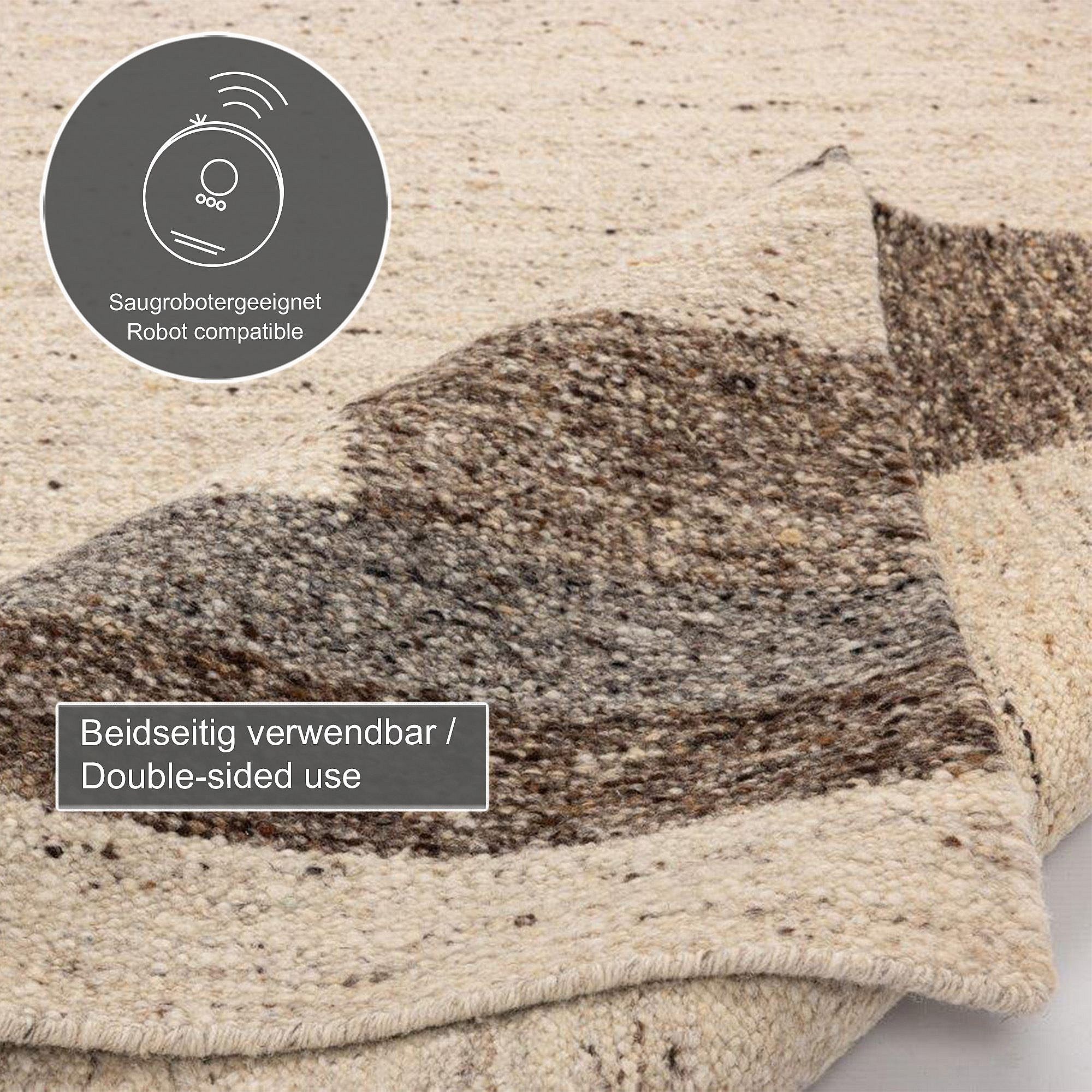 Handgewebter wendbarer Wollteppich 70x140 cm Beige Multi Ehrwald
