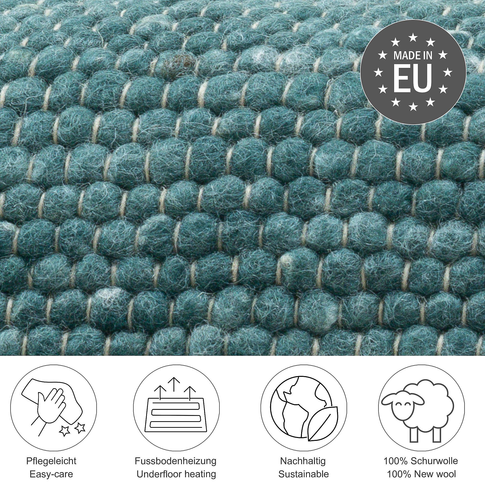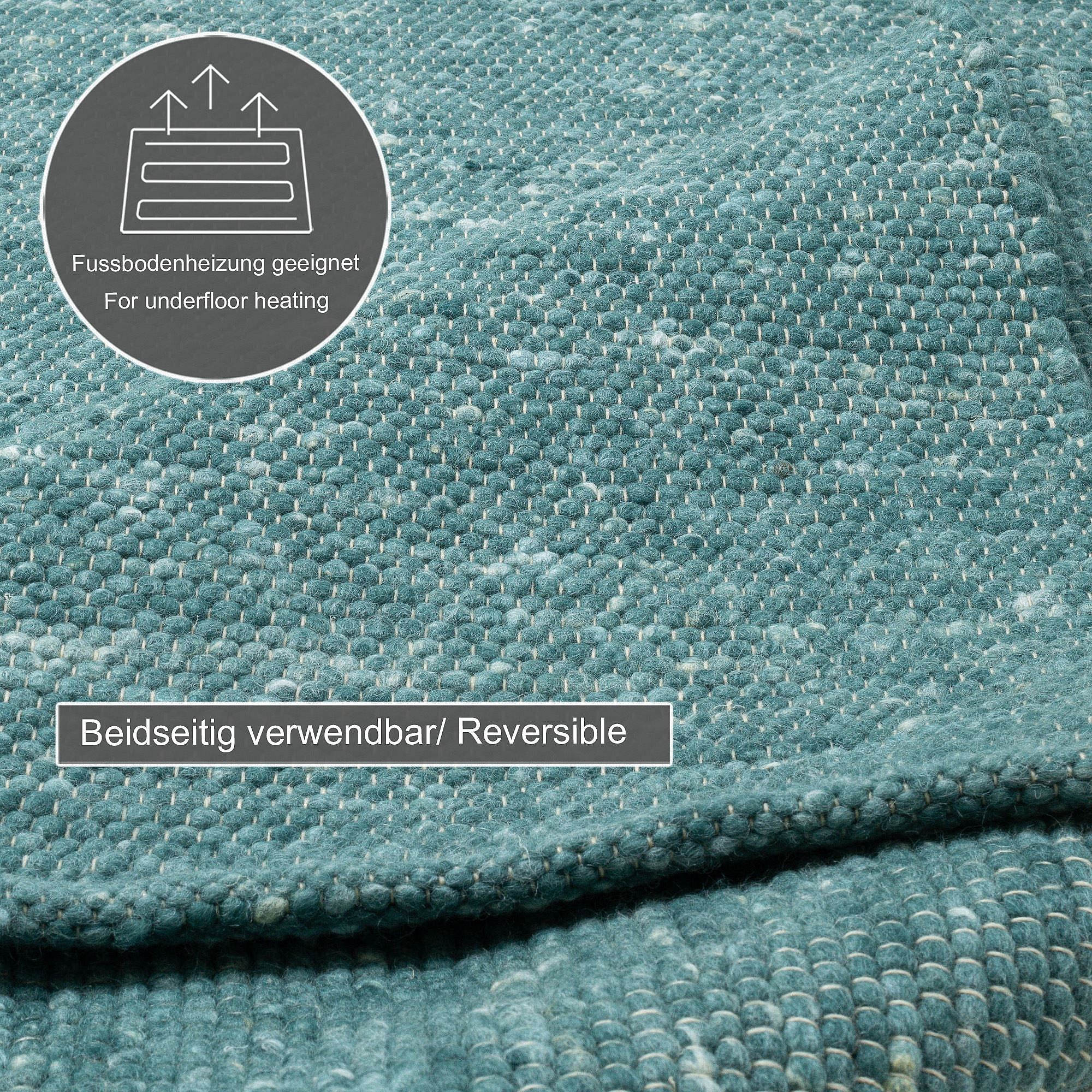 Handgewebter wendbarer Wollteppich 120x180 cm Petrol Alpen