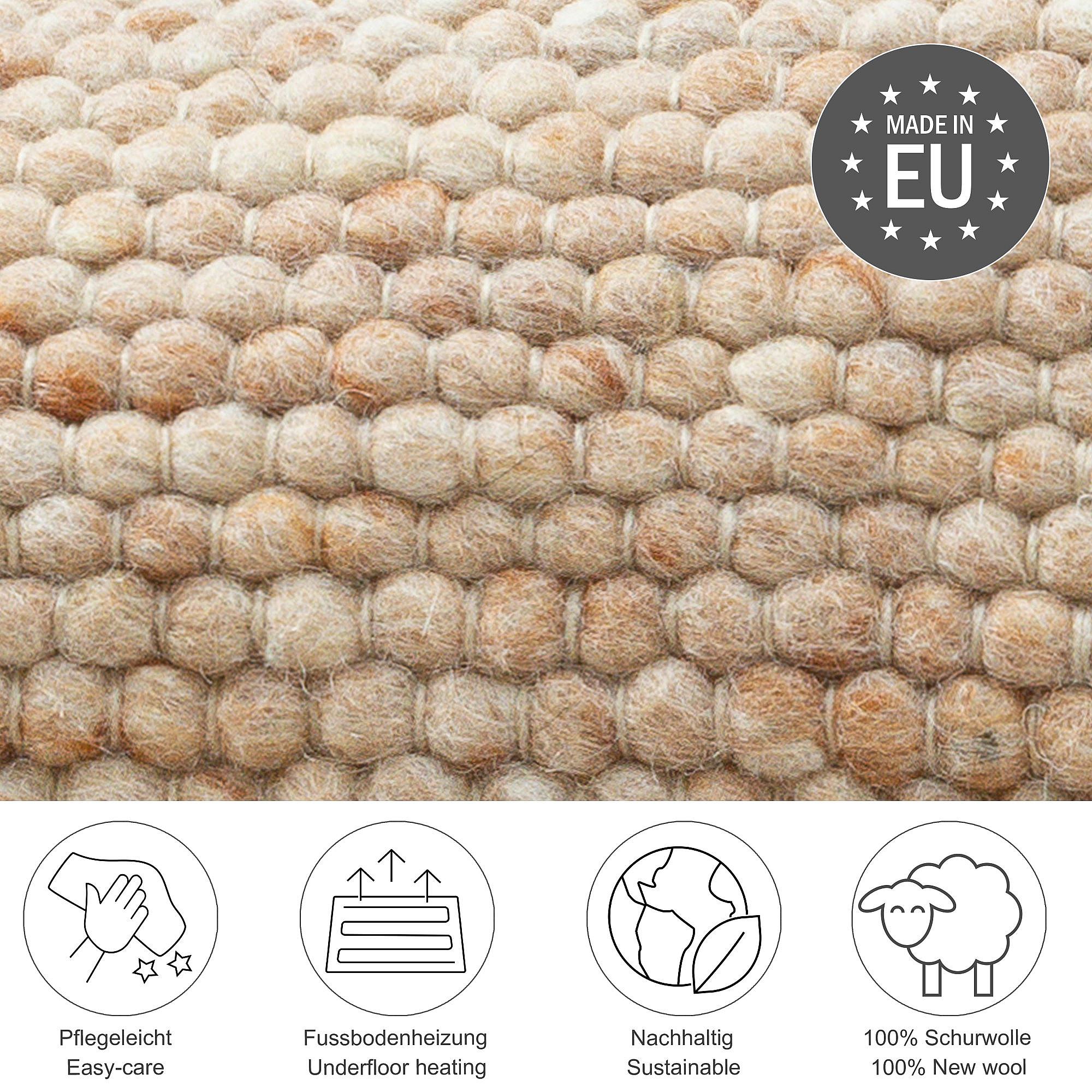 Handgewebter wendbarer Wollteppich 140x200 cm Dunkelbeige Alpen