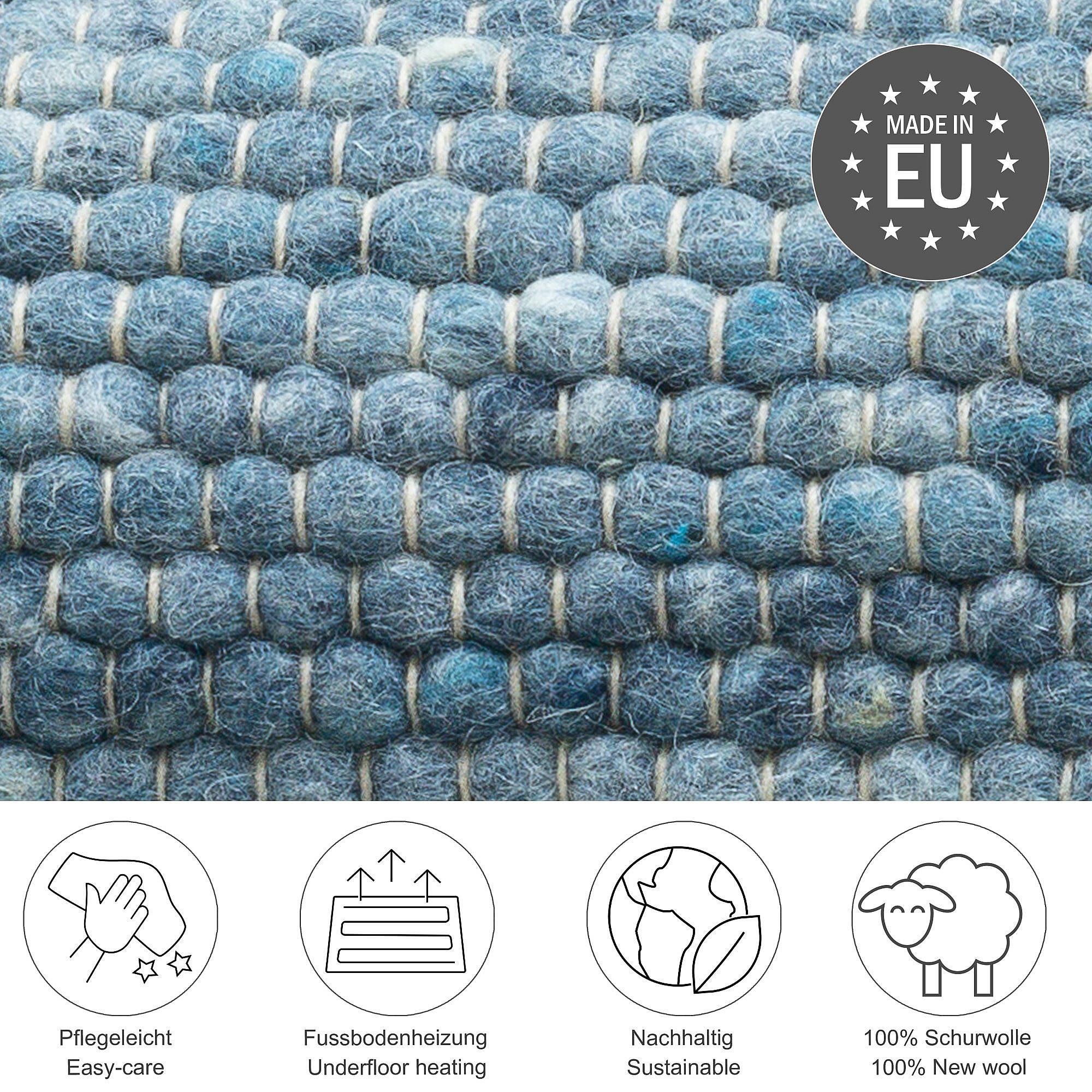 Handgewebter wendbarer Wollteppich 90x160 cm Blau Alpen