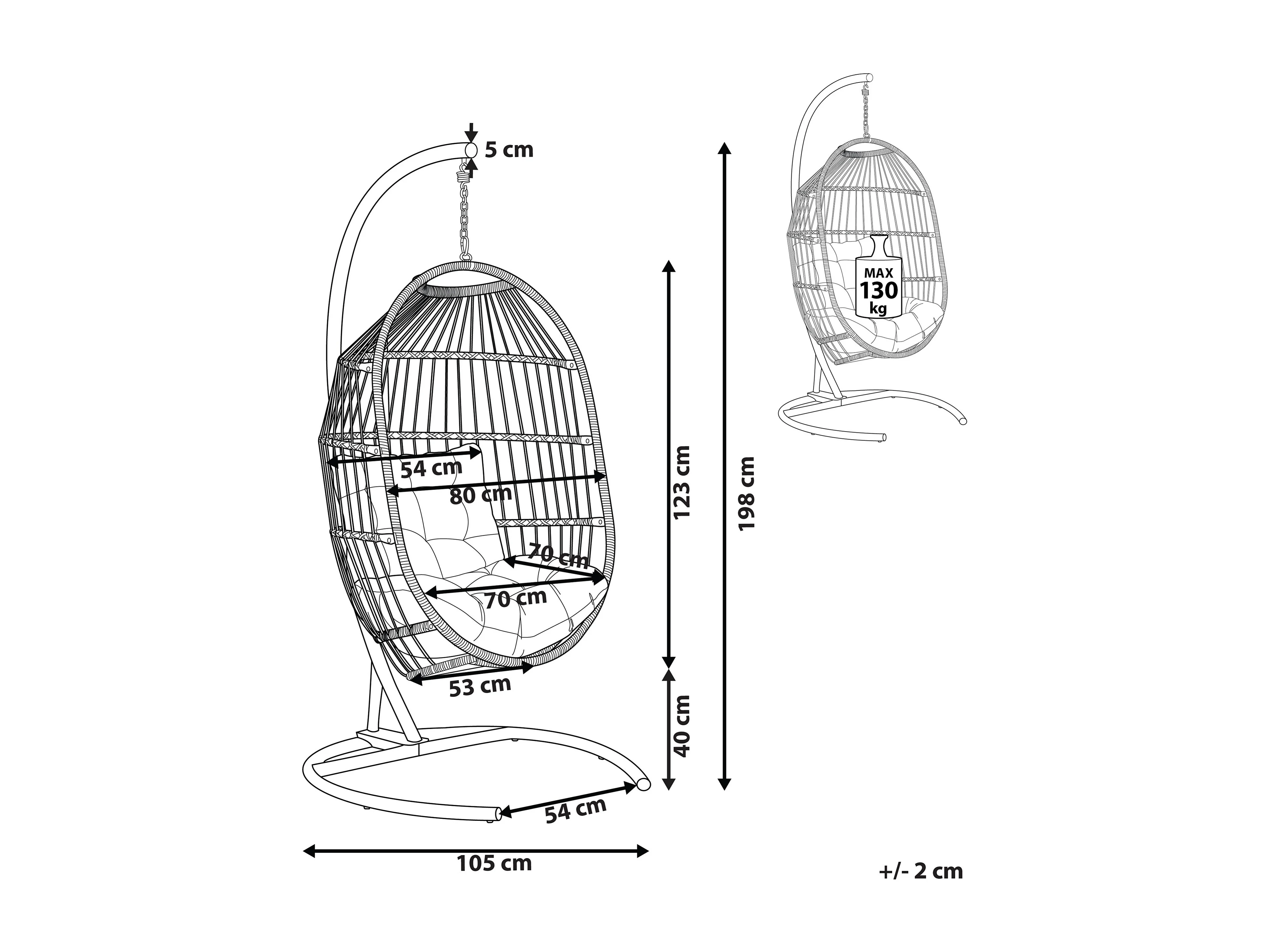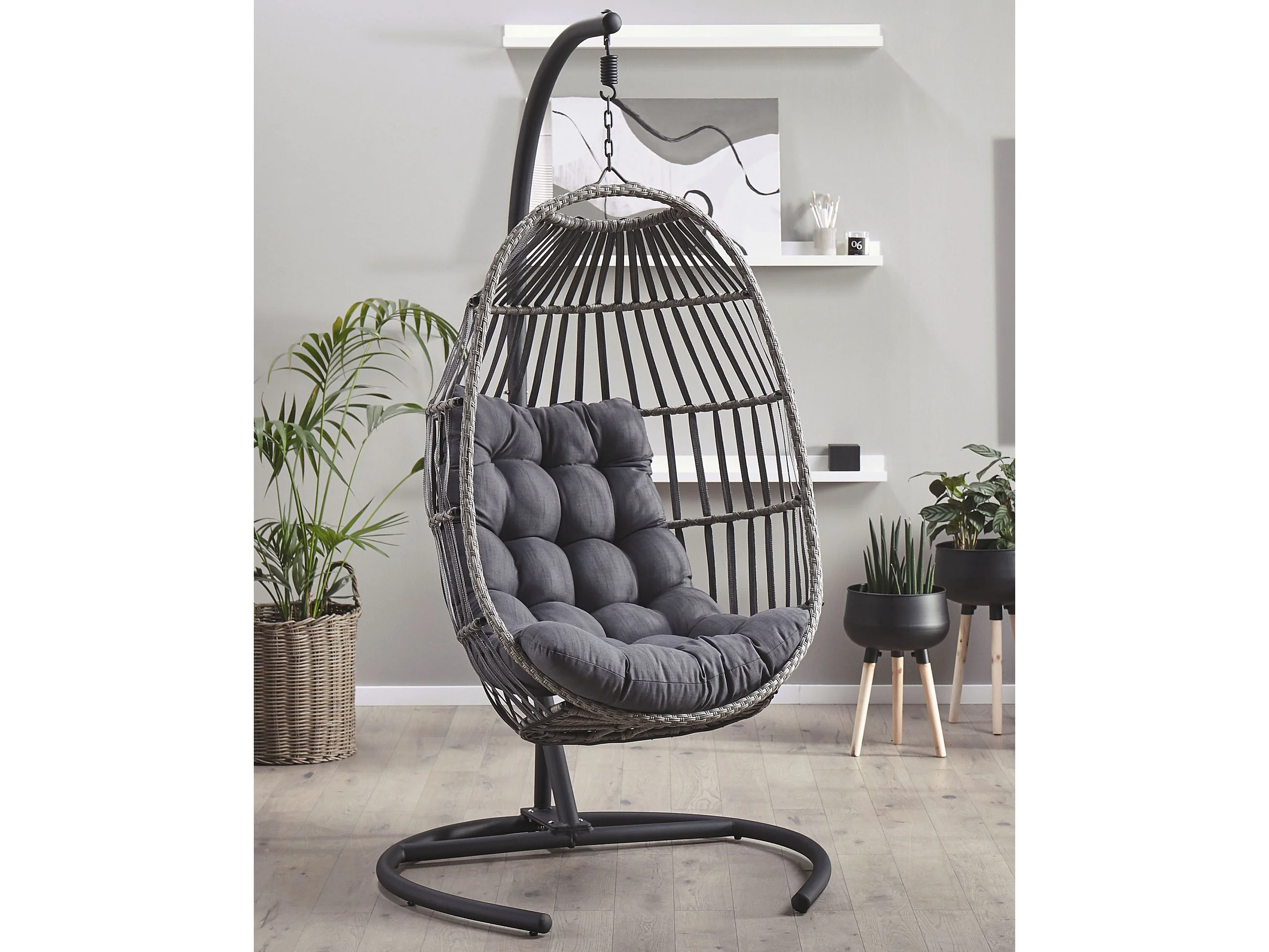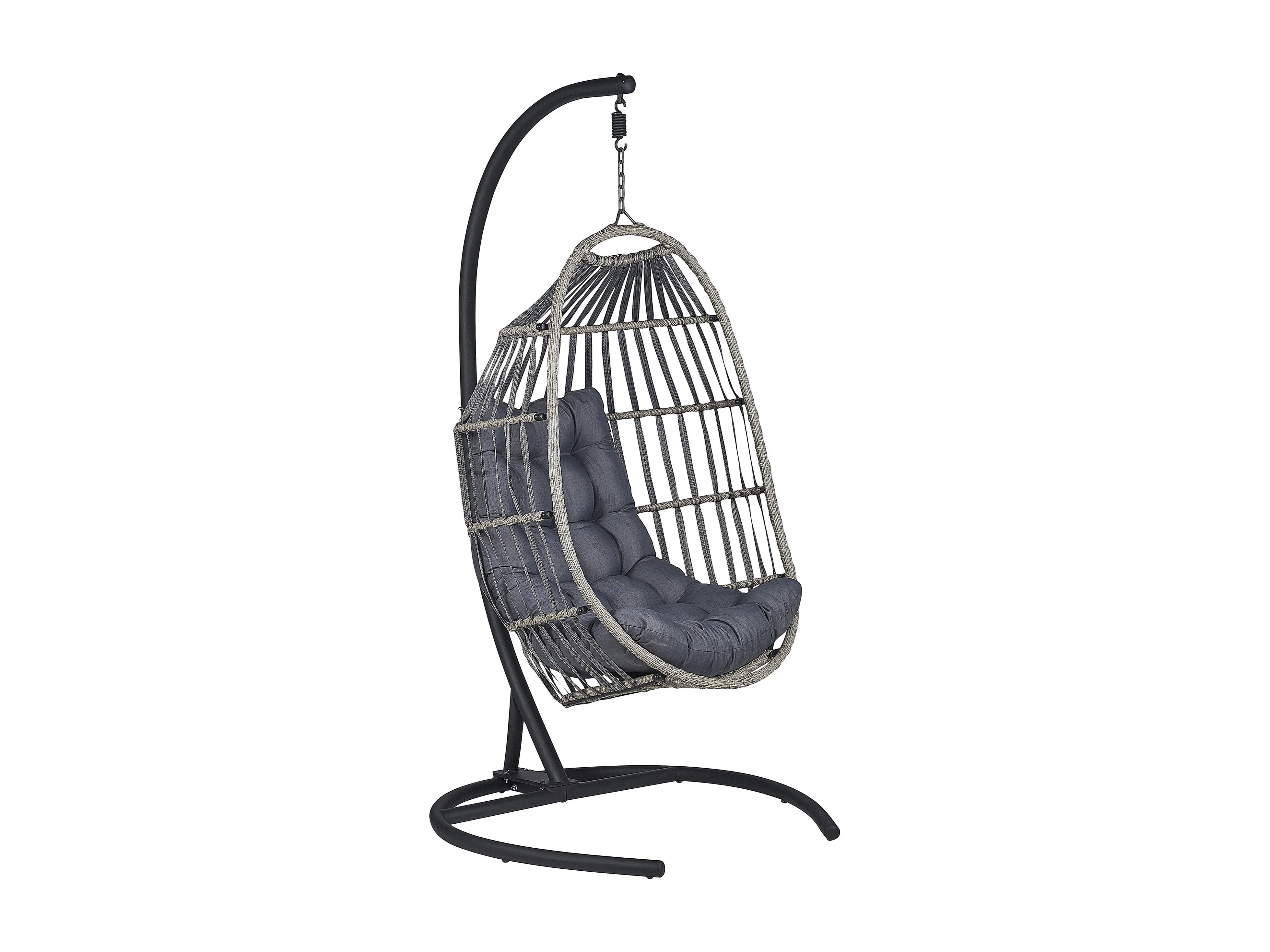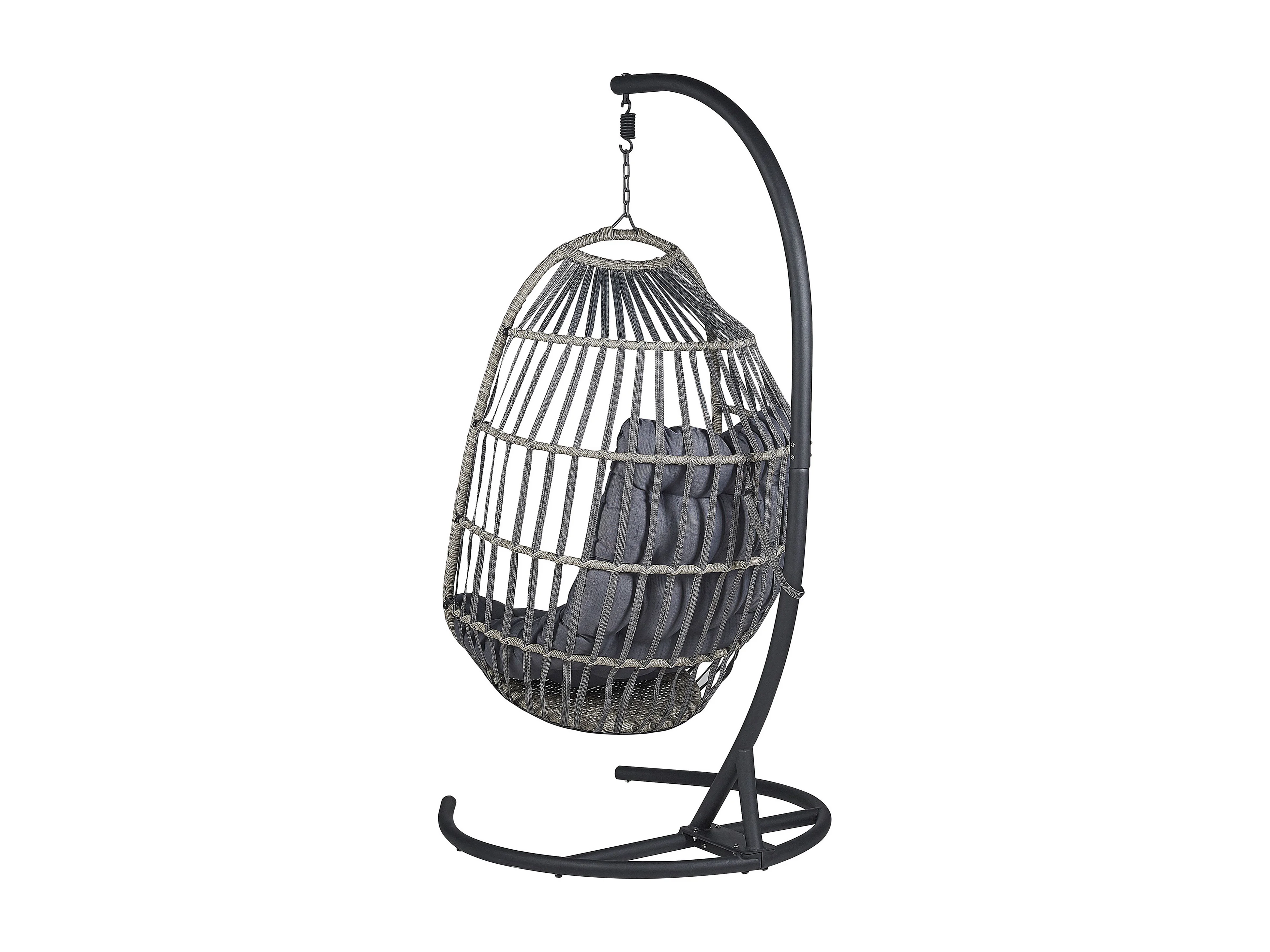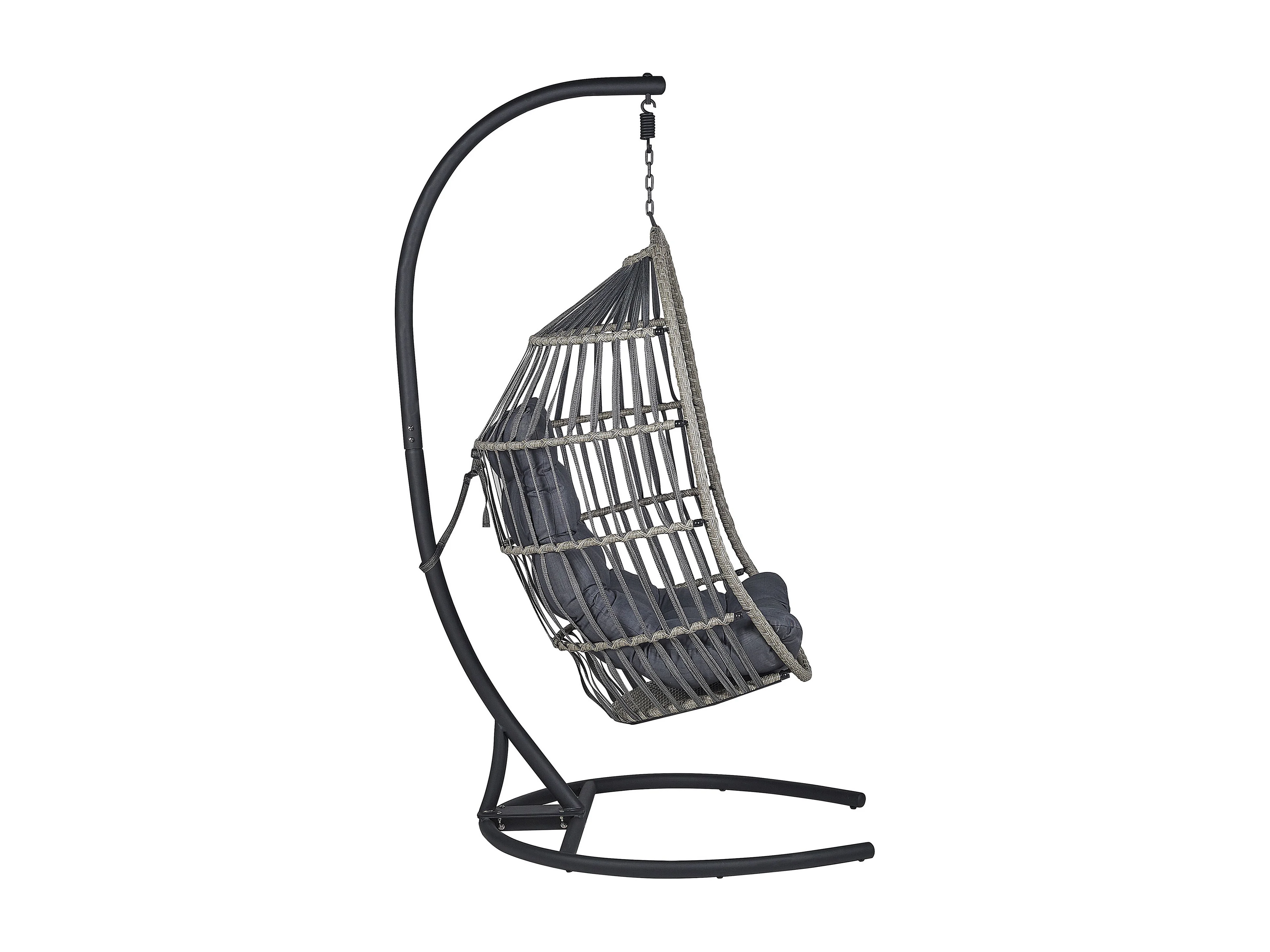 Moderner Hängesessel Rattan mit schwarzem Gestell inkl. Kissen dunkelgrau Sesia