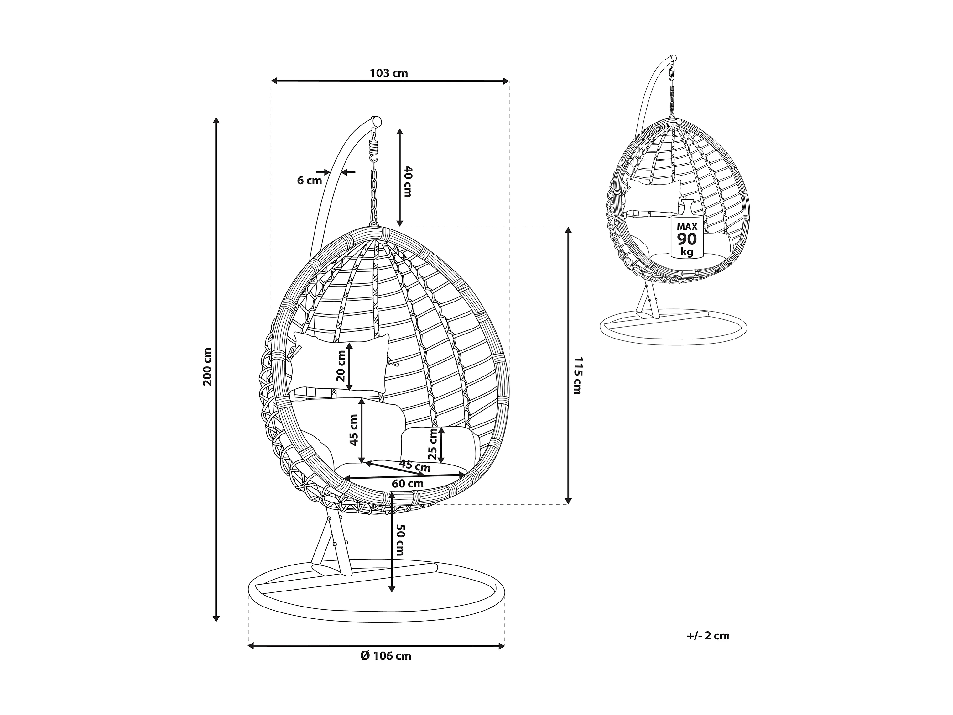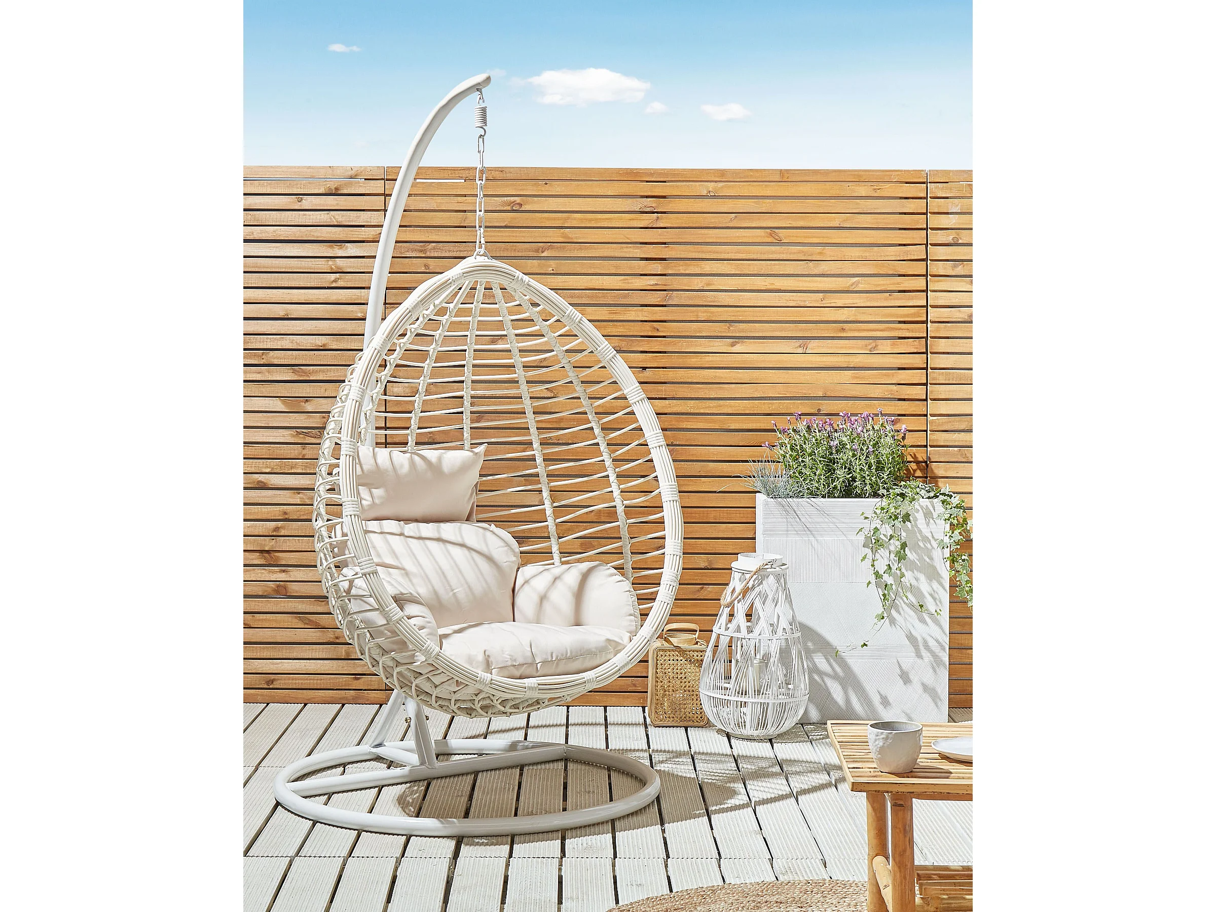 Hängesessel mit weißem Gestell inkl. Kissen Hängestuhl Korb Schwebesessel Fano
