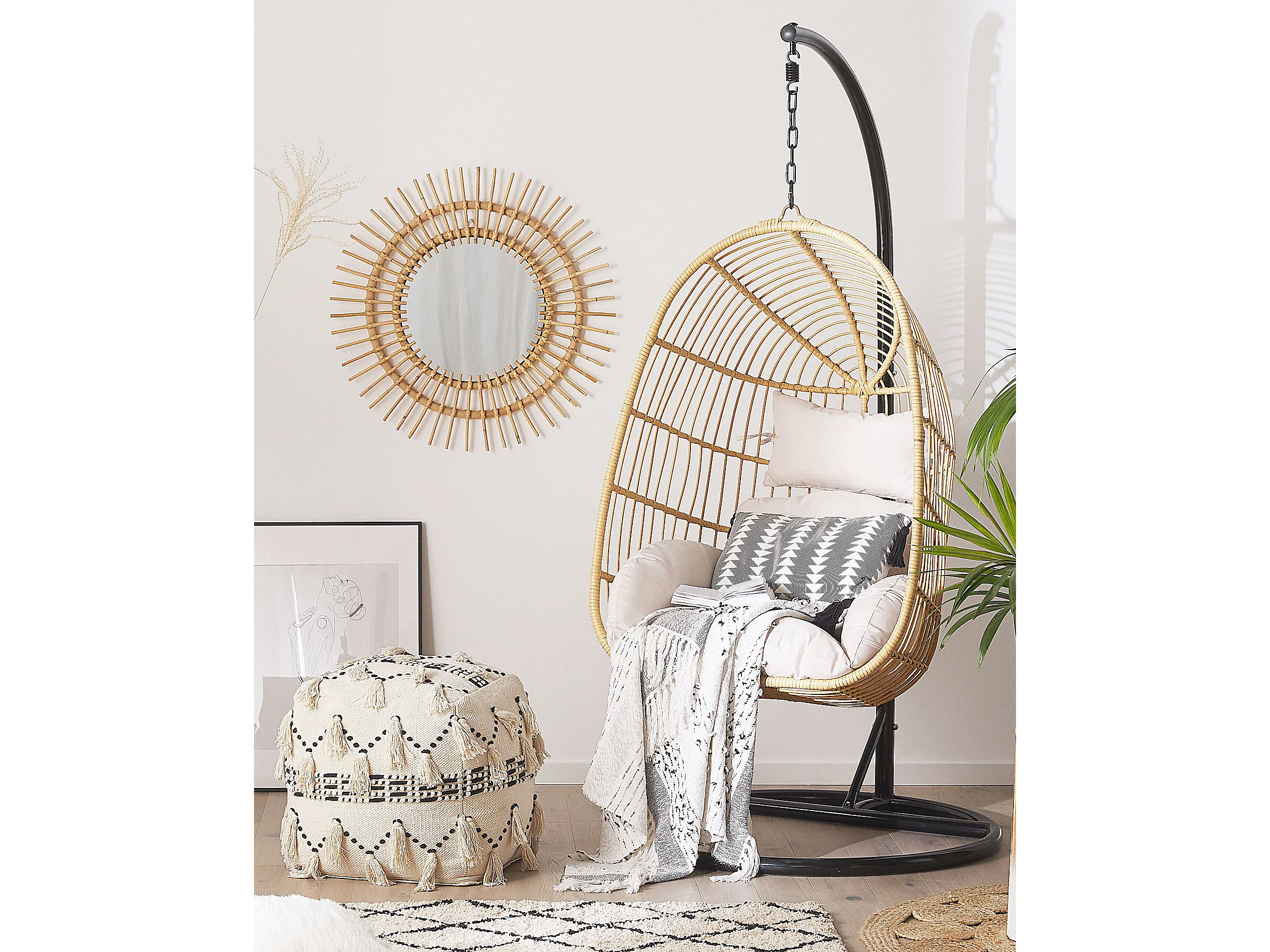 Moderner Hängekorbsessel Rattan mit schwarzem Gestell inkl. Kissen Beige Casoli