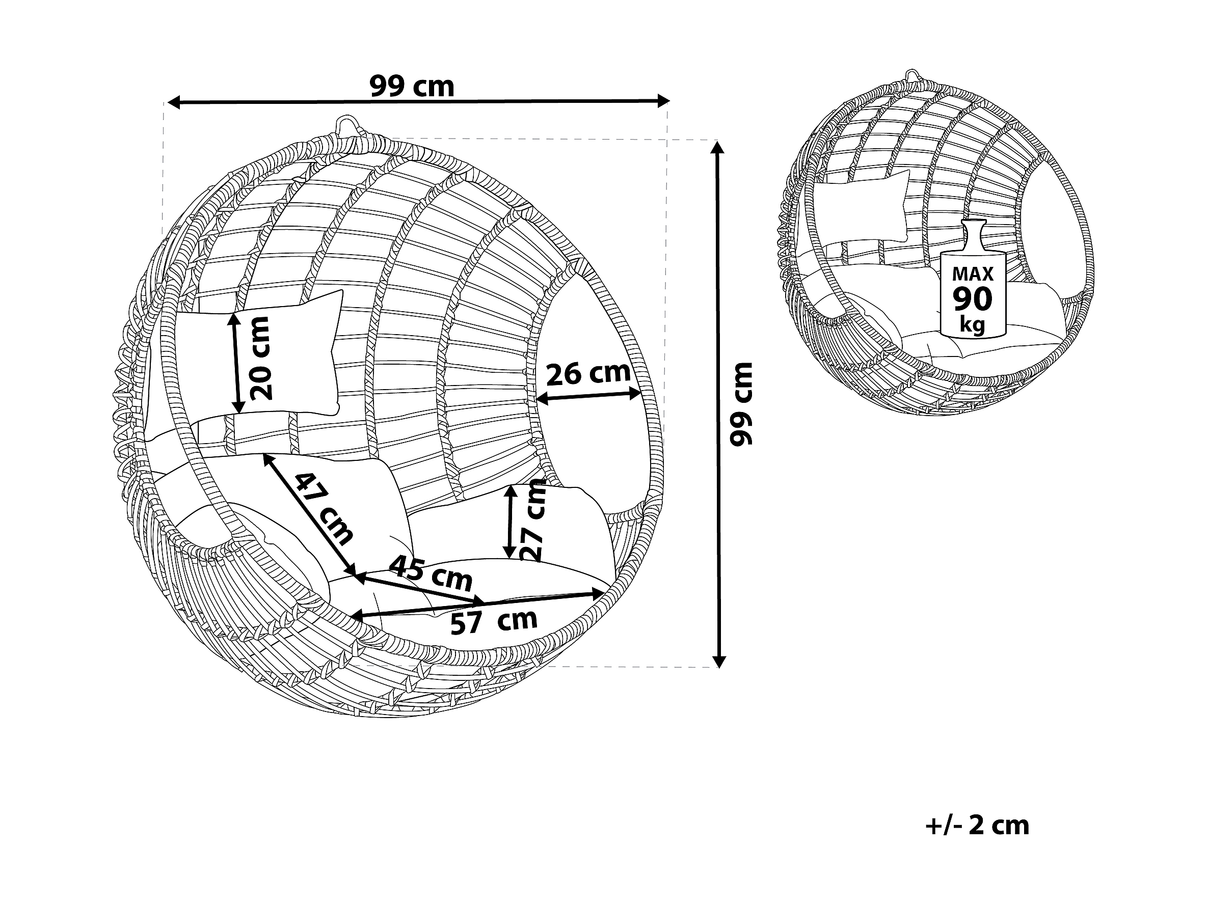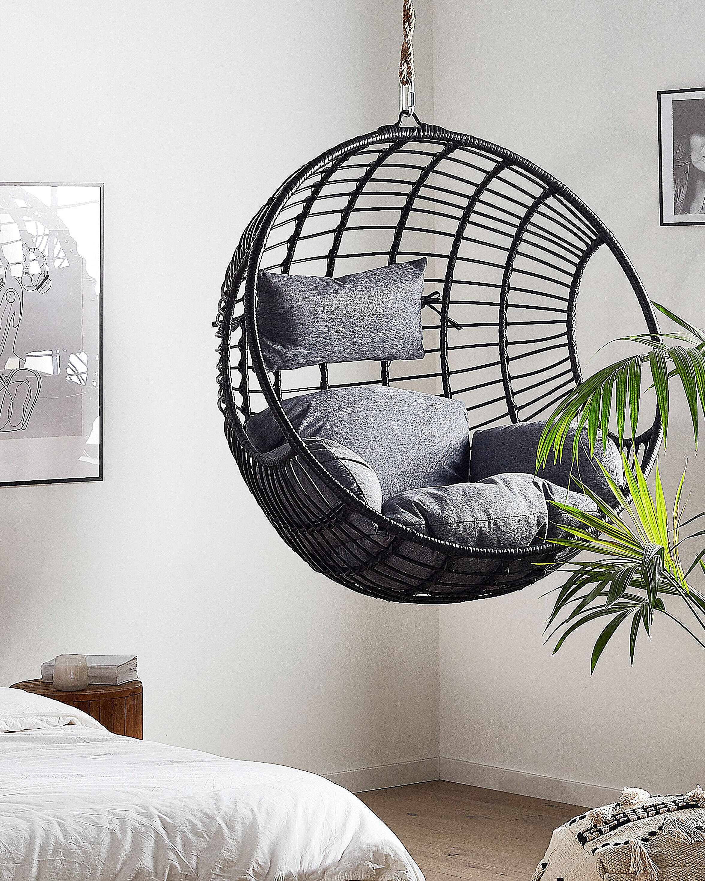 Hängekorbsessel aus Rattan Schwarz ohne Gestell inkl. Sitz- u. Kopfkissen Aspio