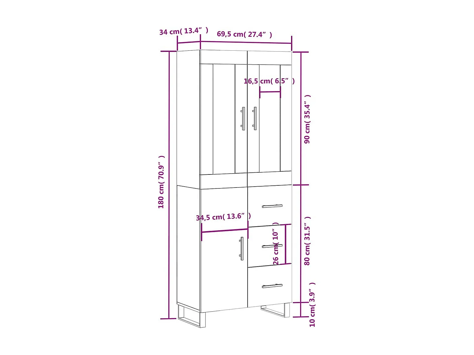 Highboard Weiß 69,5x34x180 cm Holzwerkstoff