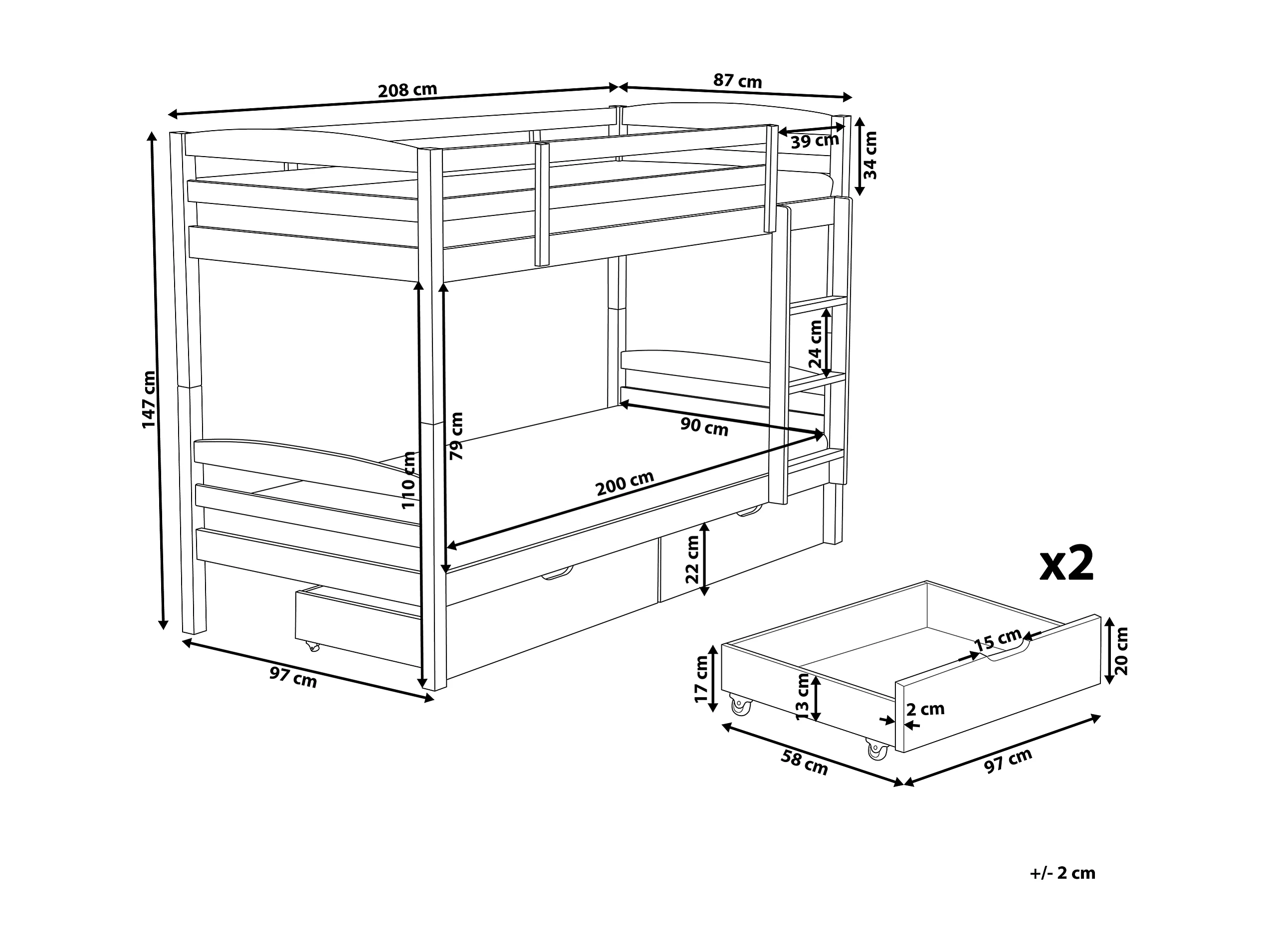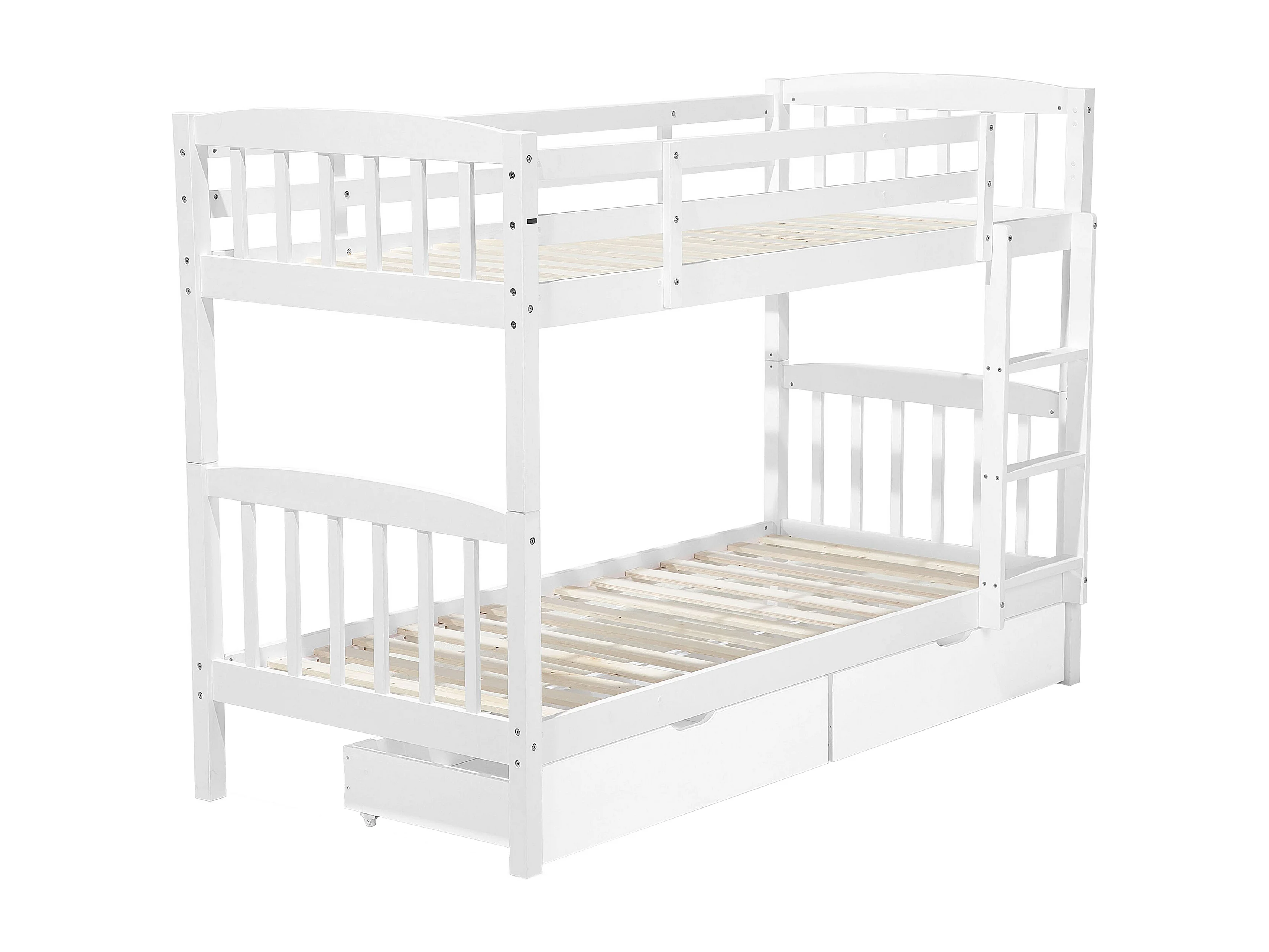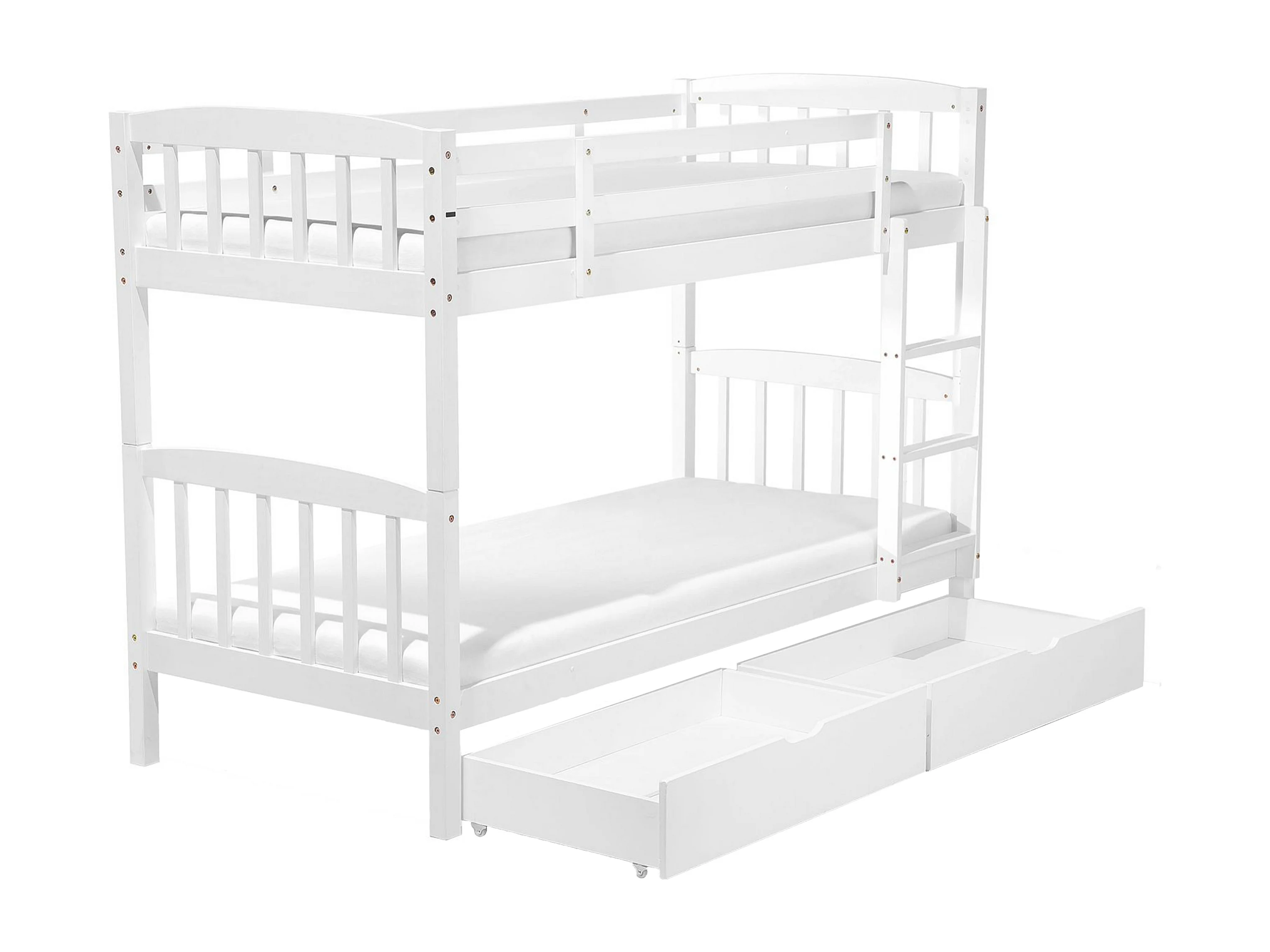 Hochbett 2 Betten mit Bettkasten und Lattenrost 90x200 cm Kiefernholz weiß Revin