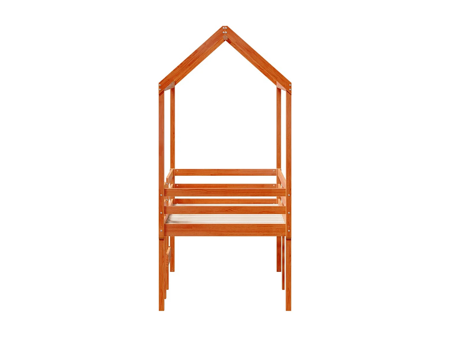 Hochbett mit Dach Wachsbraun 90x190 cm Massivholz Kiefer