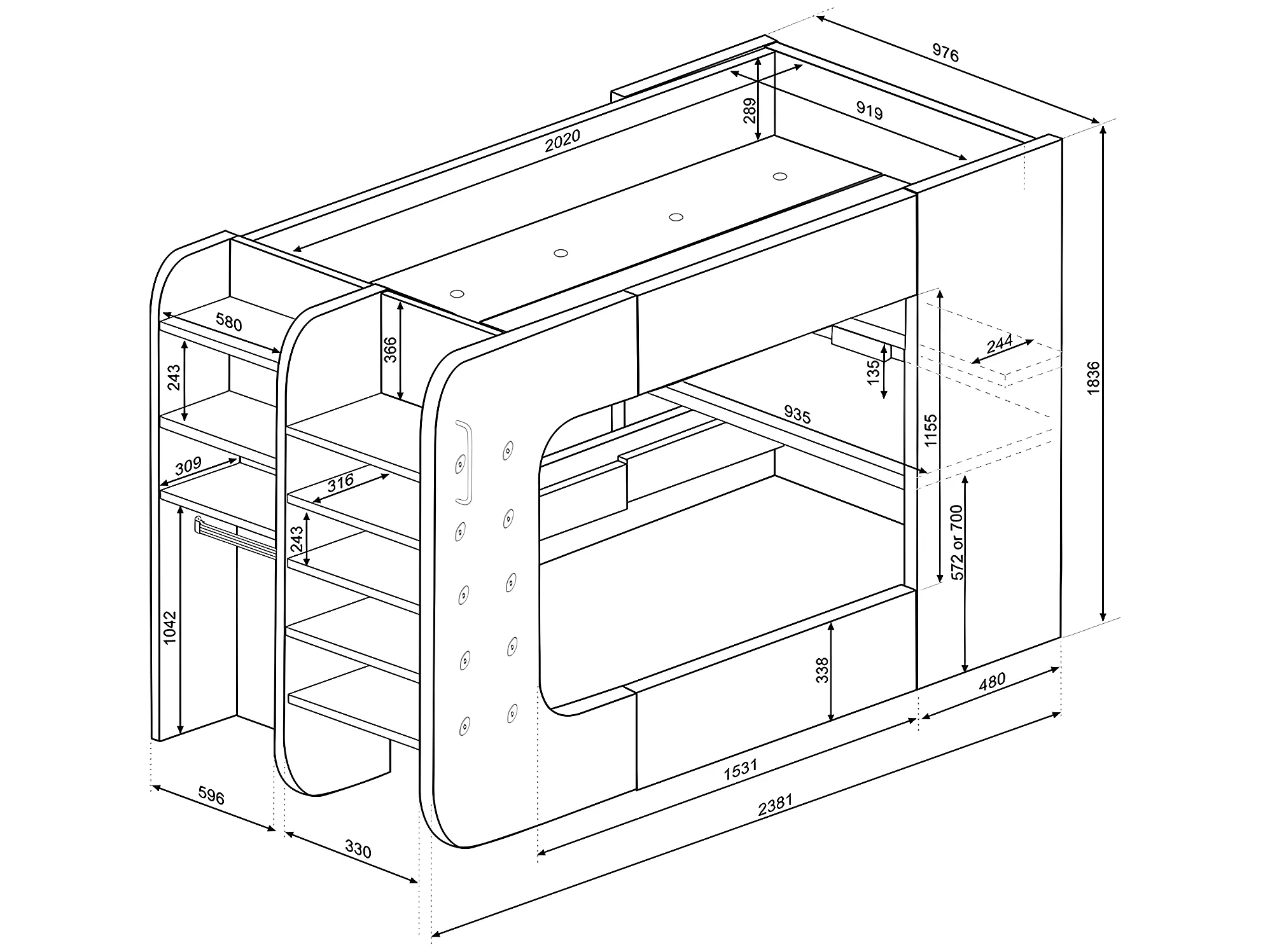 • Praktisch dank seiner integrierten Aufbewahrungsmöglichkeiten