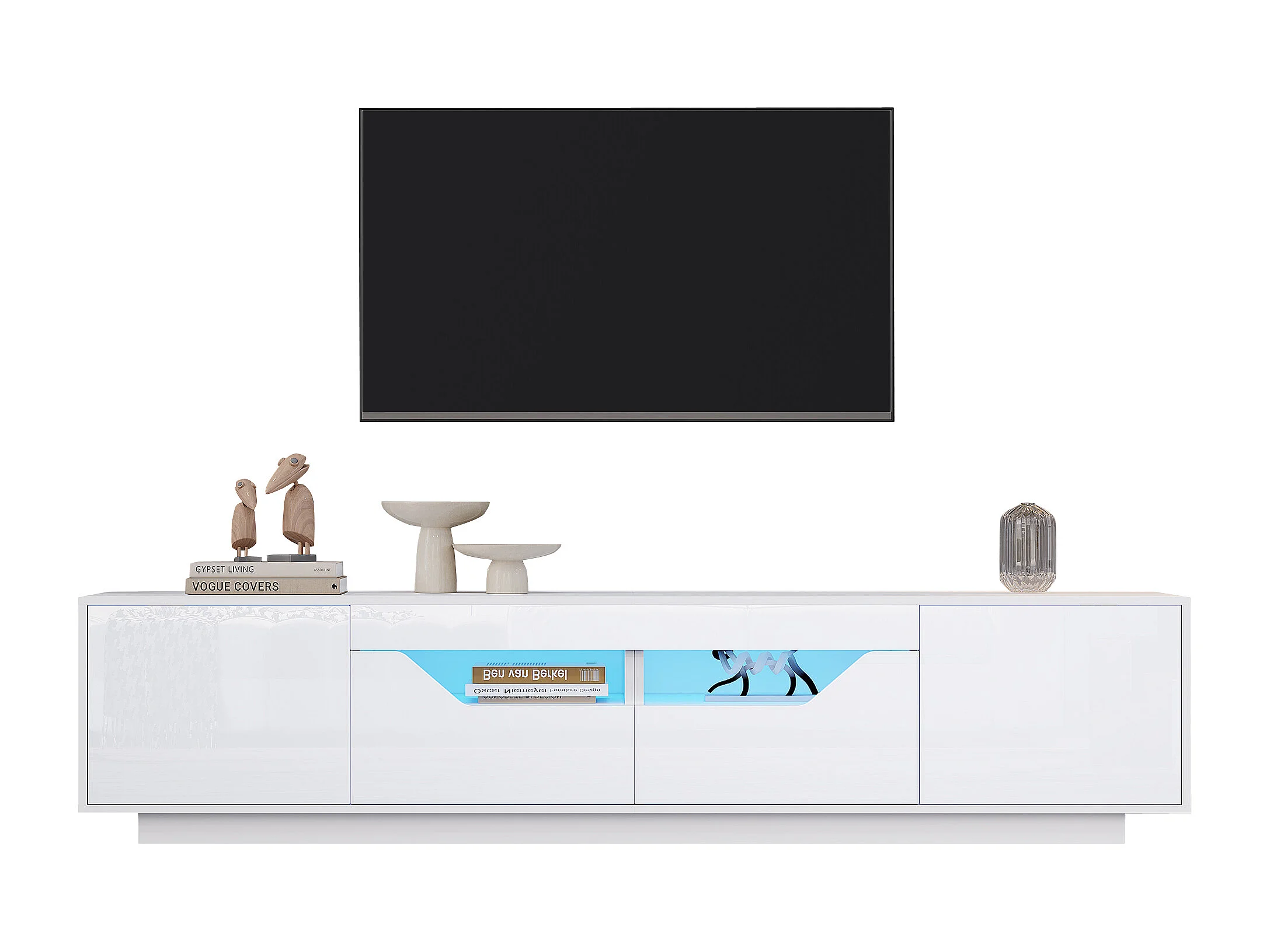 Hochglanz-TV-Schrank 180×40×45 cm - mit LED-Beleuchtung - 2 Schubladen und 2 Türen - Für 75-Zoll-Fernseher geeignet - weiß