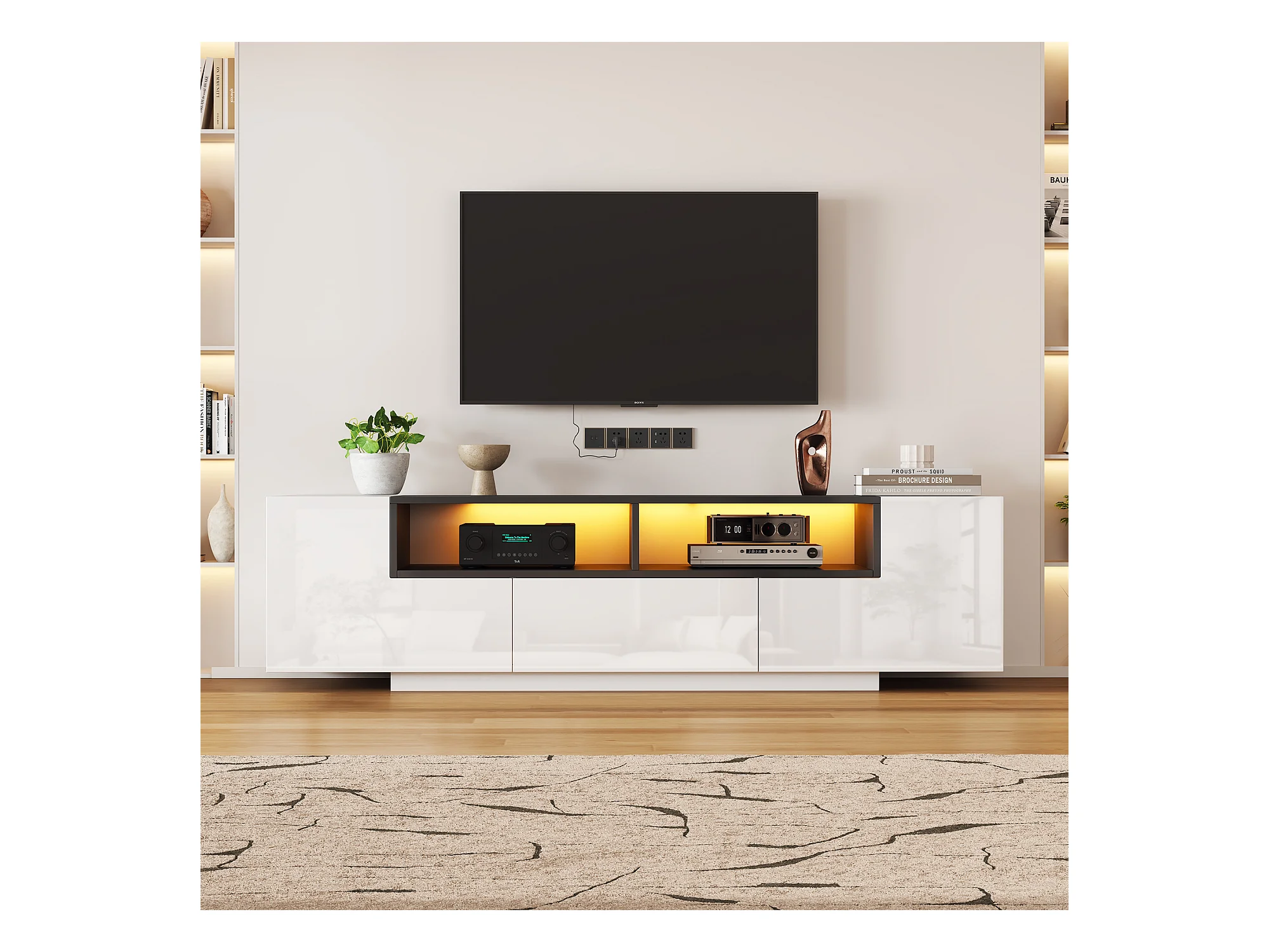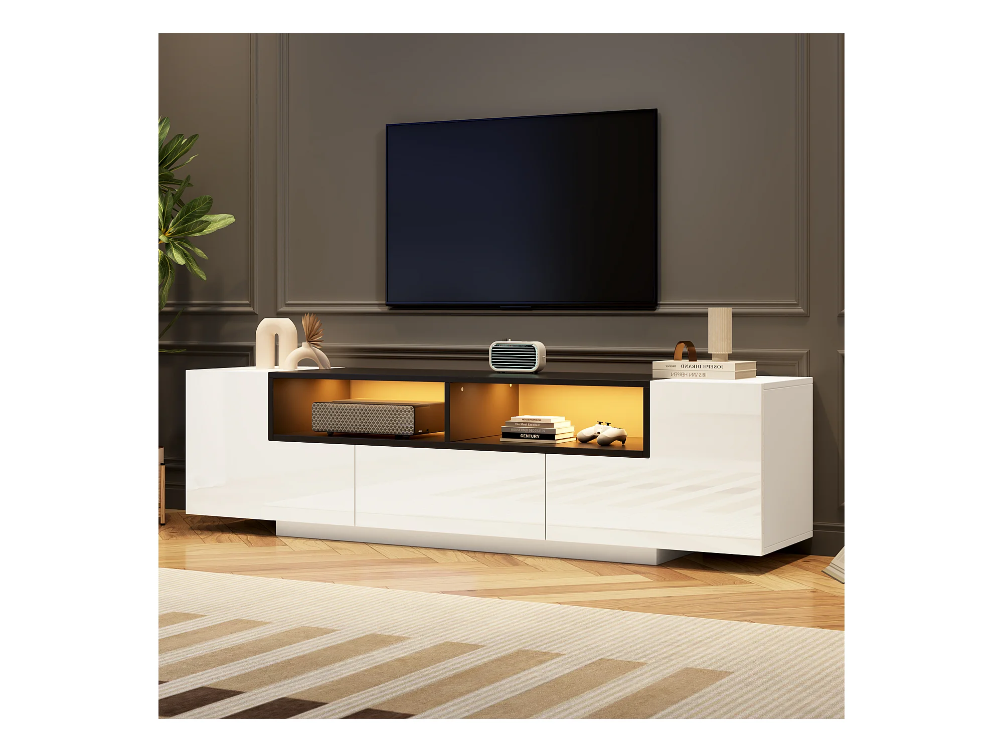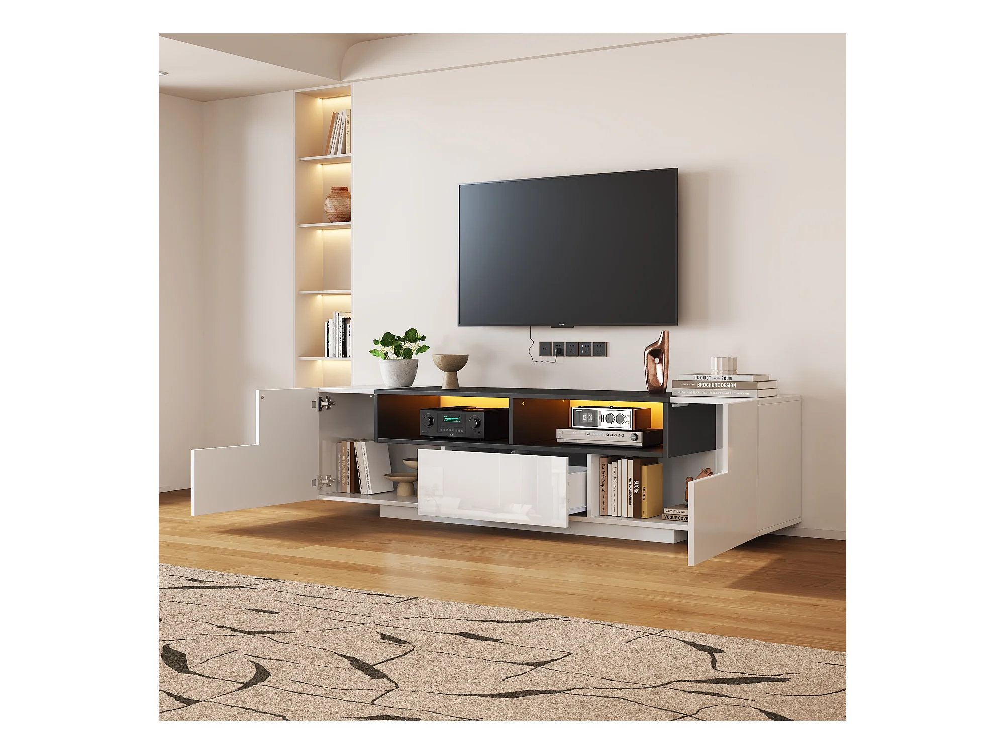 Hochglanz-TV-Schrank 180×40×48 cm - mit LED-Beleuchtung - 1 Schublade und 2 Türen - für 75-Zoll-Fernseher - weiß