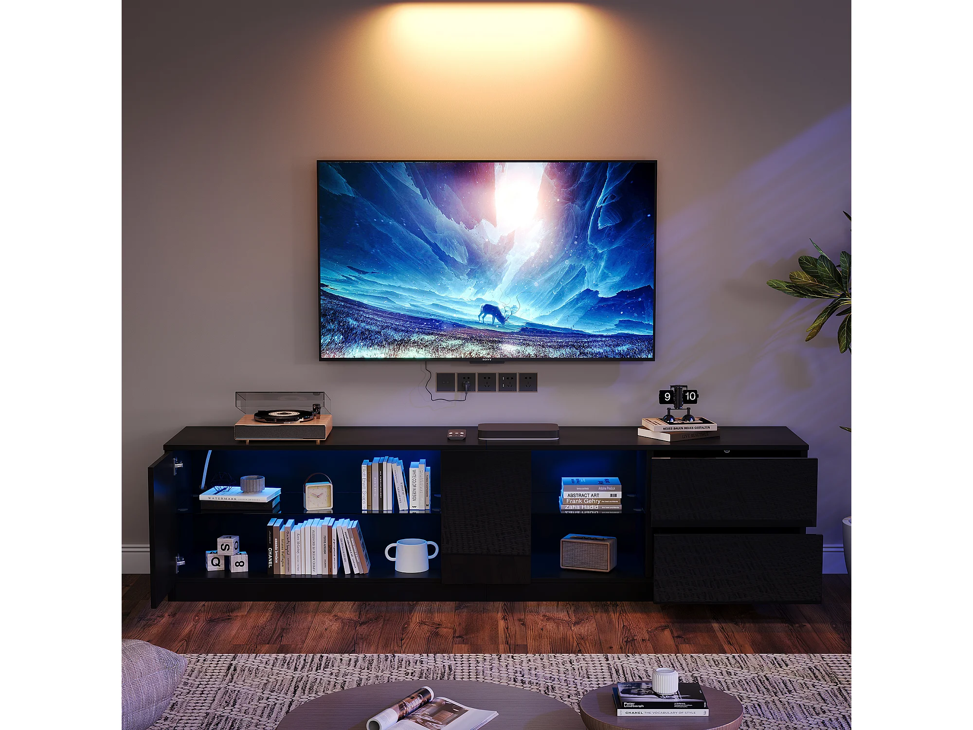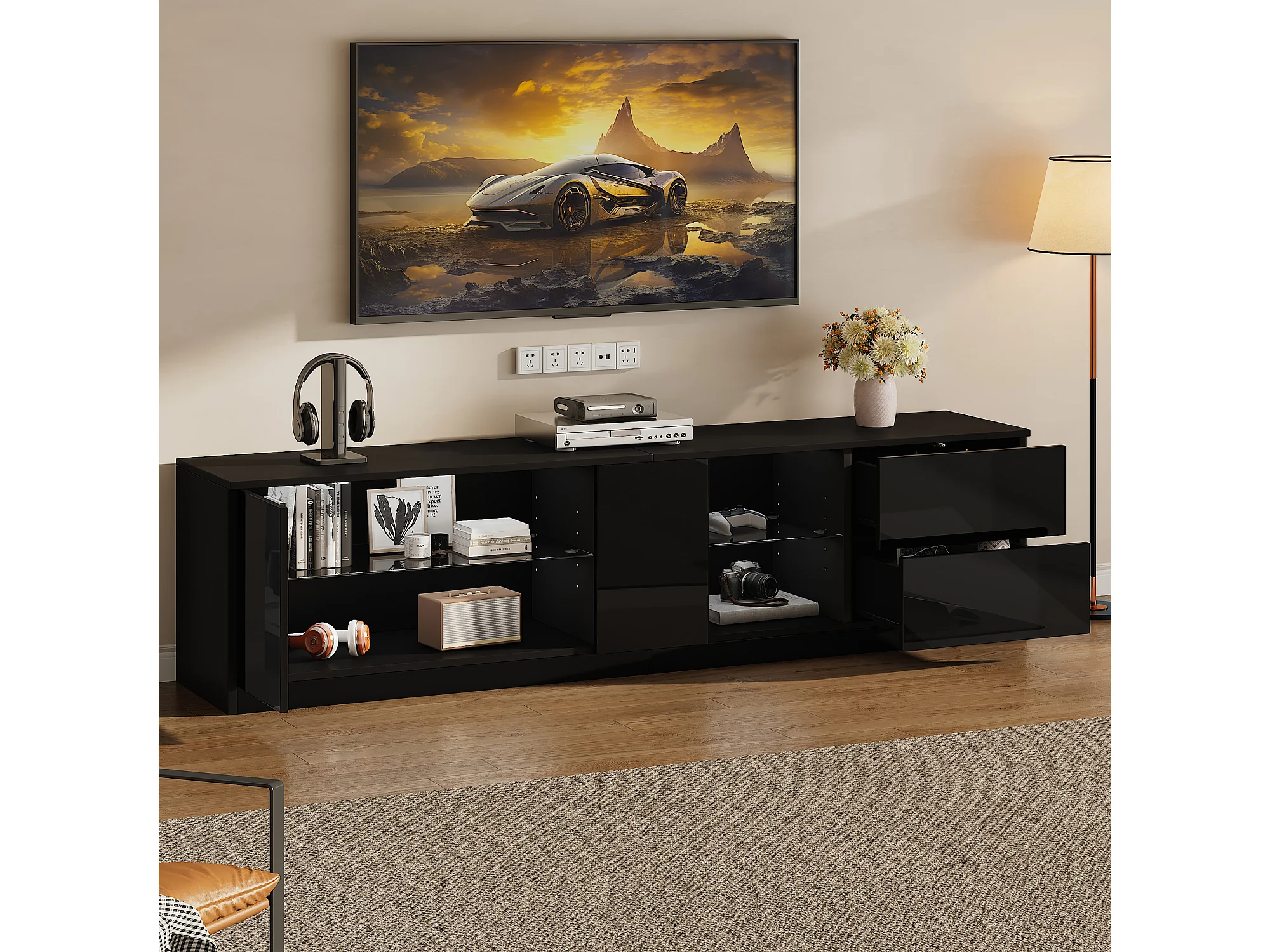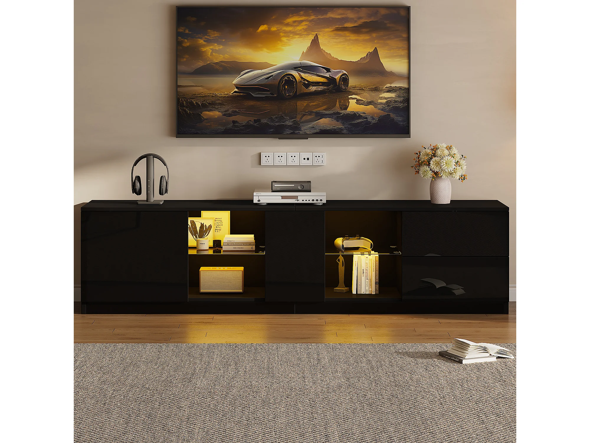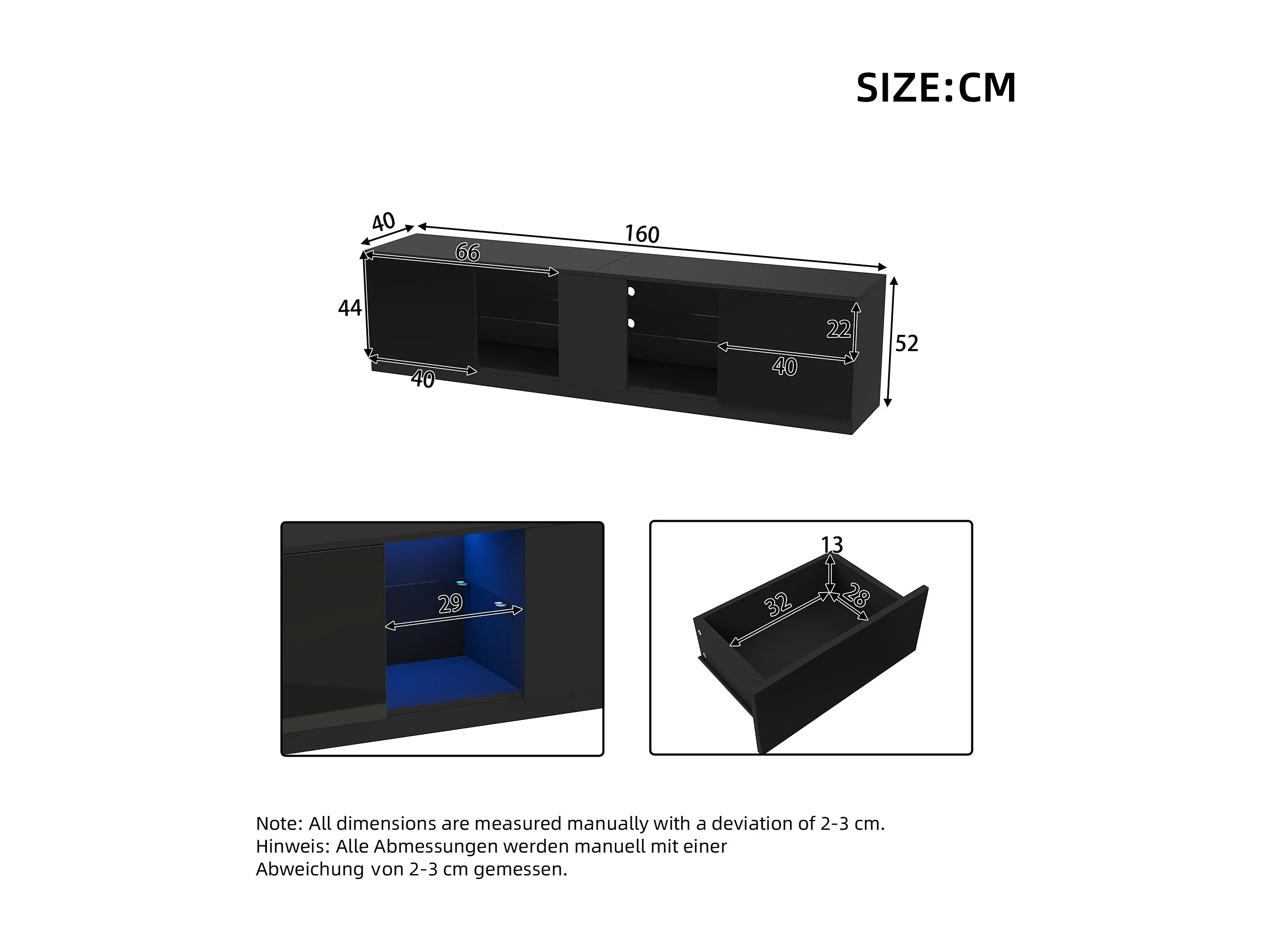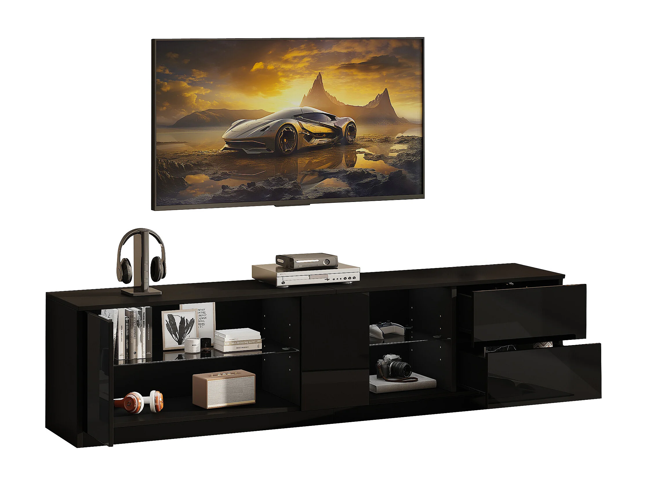 Hochglanz-TV-Ständer – 160 x 40 x 52 cm – mit LEDs + 1 Tür + 2 Schubladen – MDF – schwarz