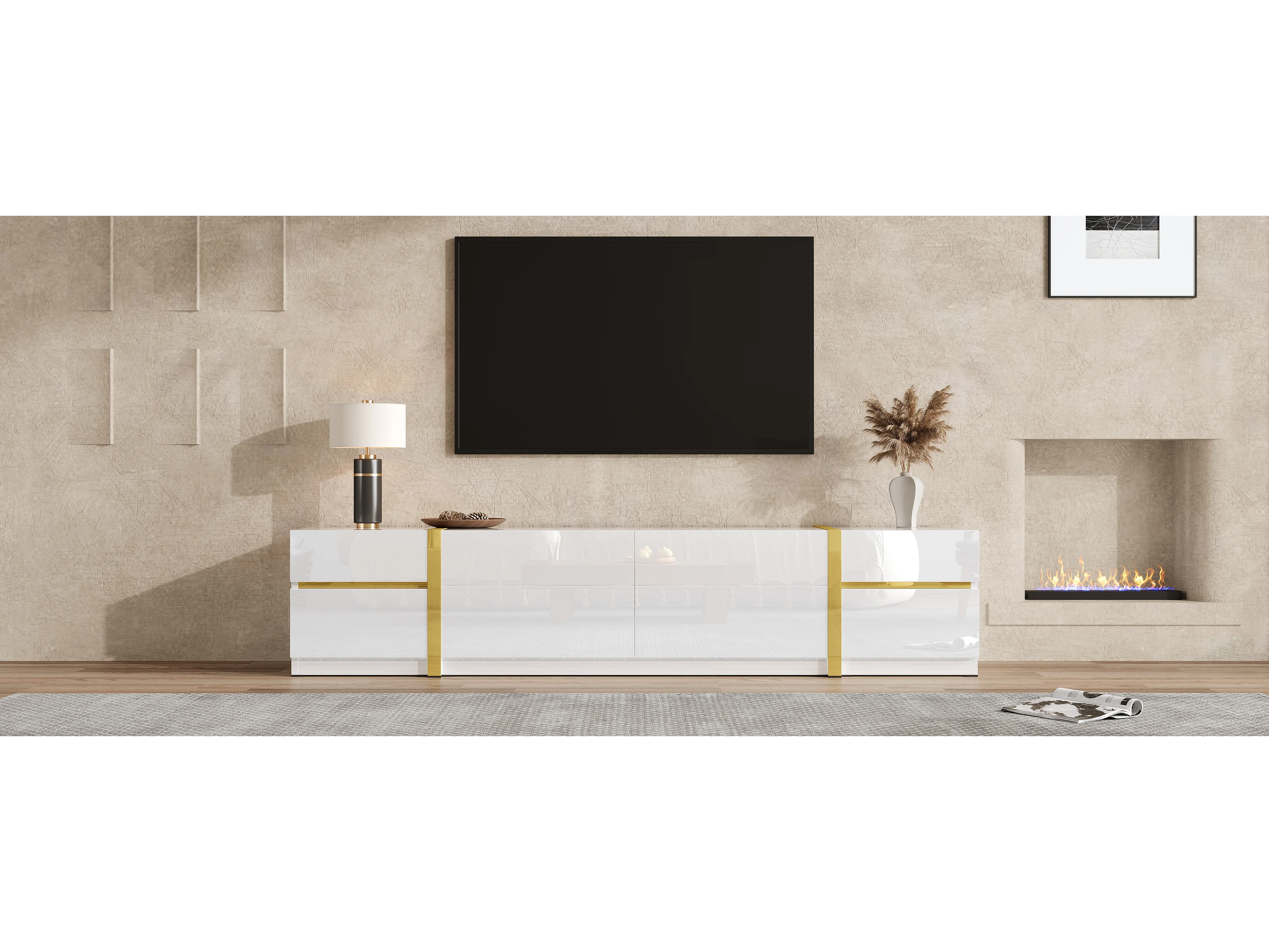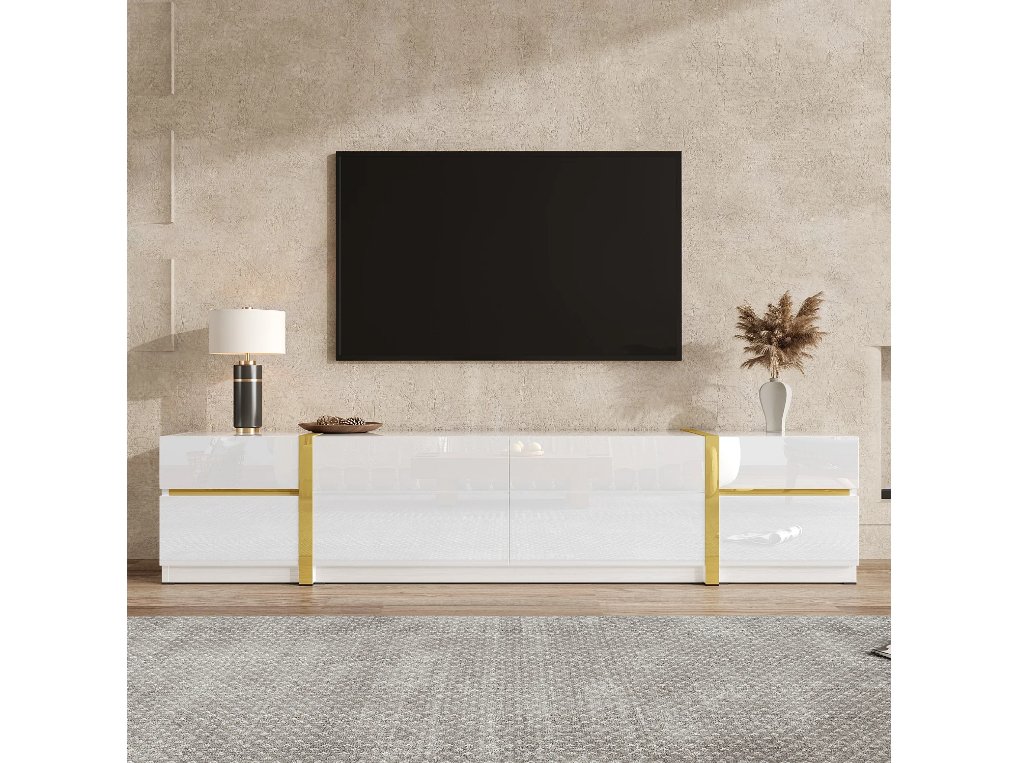 Moderner, hochglänzender TV-Ständer – 190 x 40 x 48,5 cm – mit offenem Stauraum, LED-Beleuchtung und 2 Türen – Spanplatte – weiß