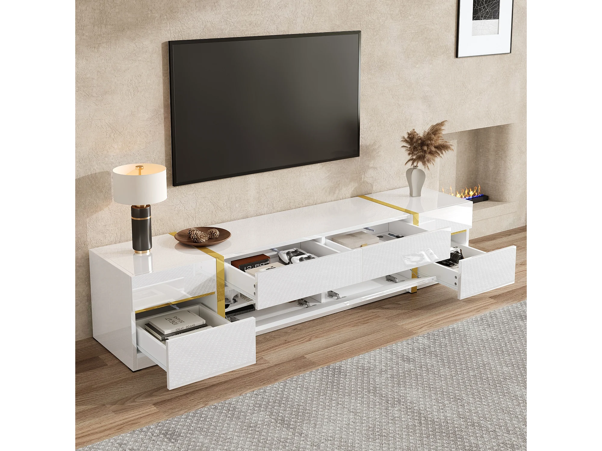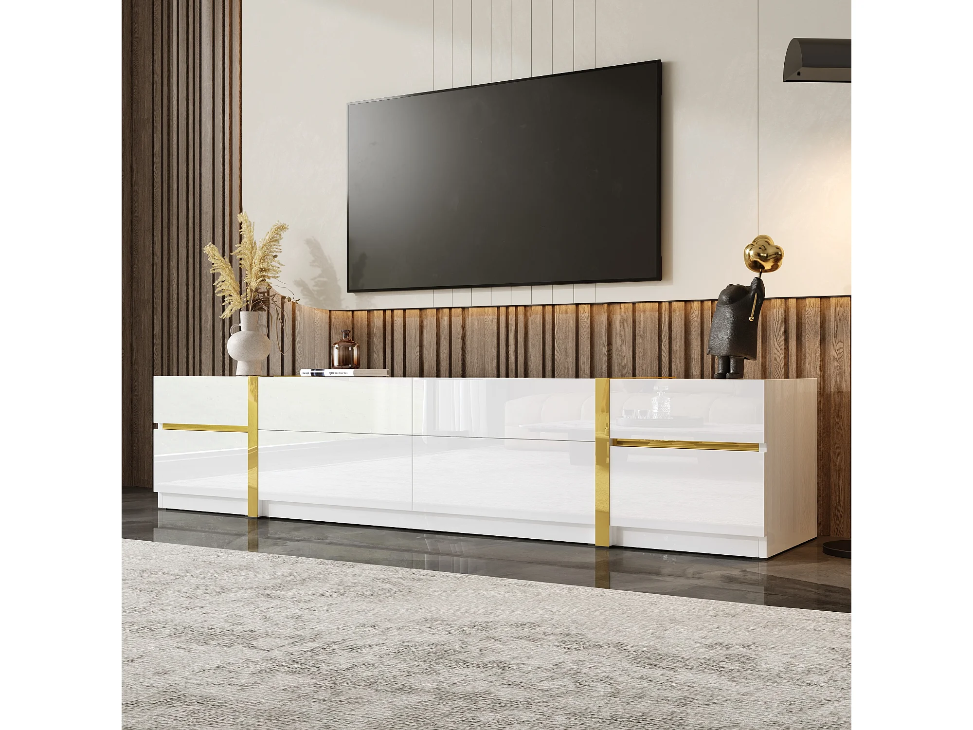 Hochglanz-TV-Ständer – 180 x 40 x 38 cm – mit Schubladen und Türen – modernes Design – MDF – weiß