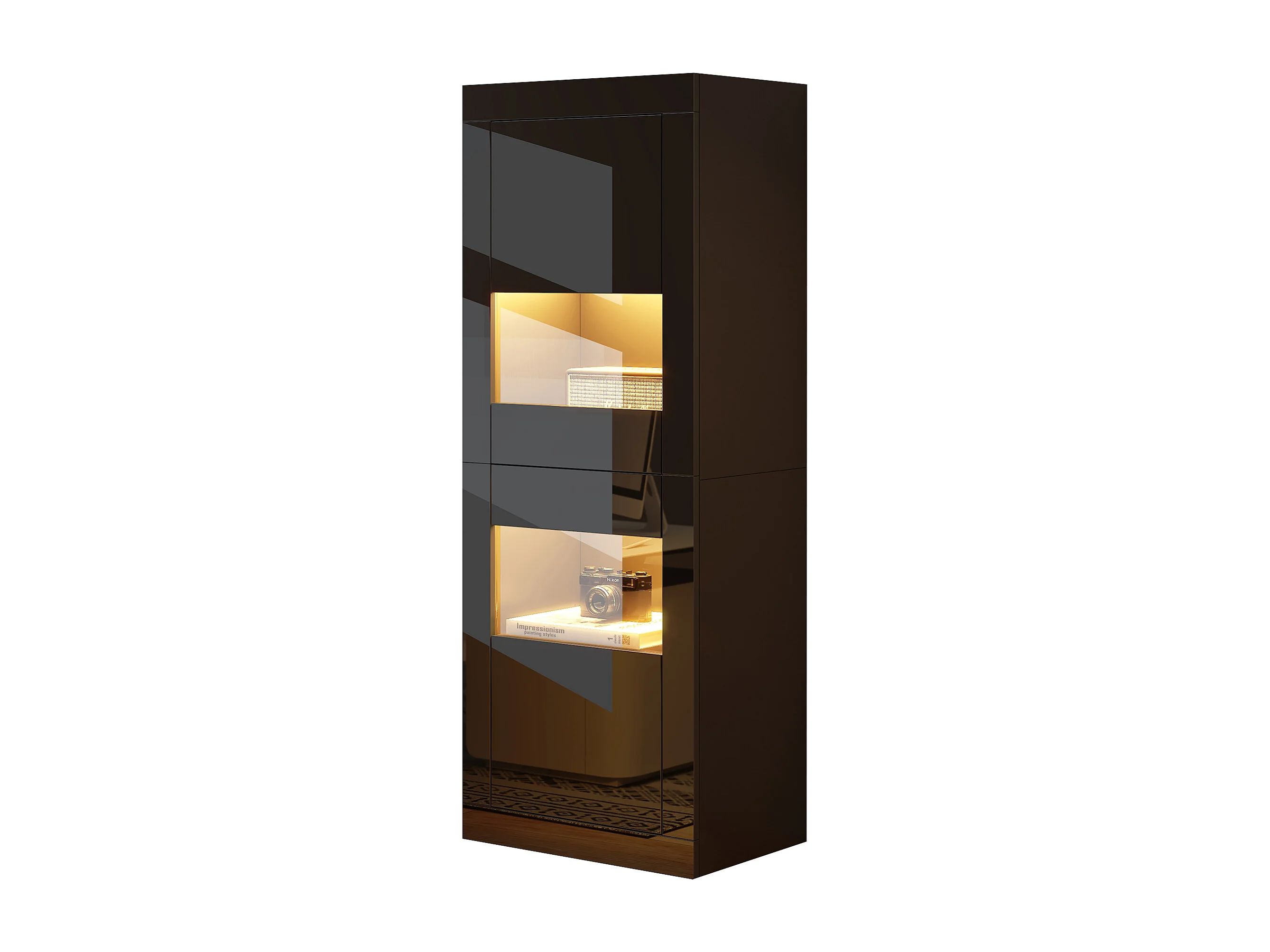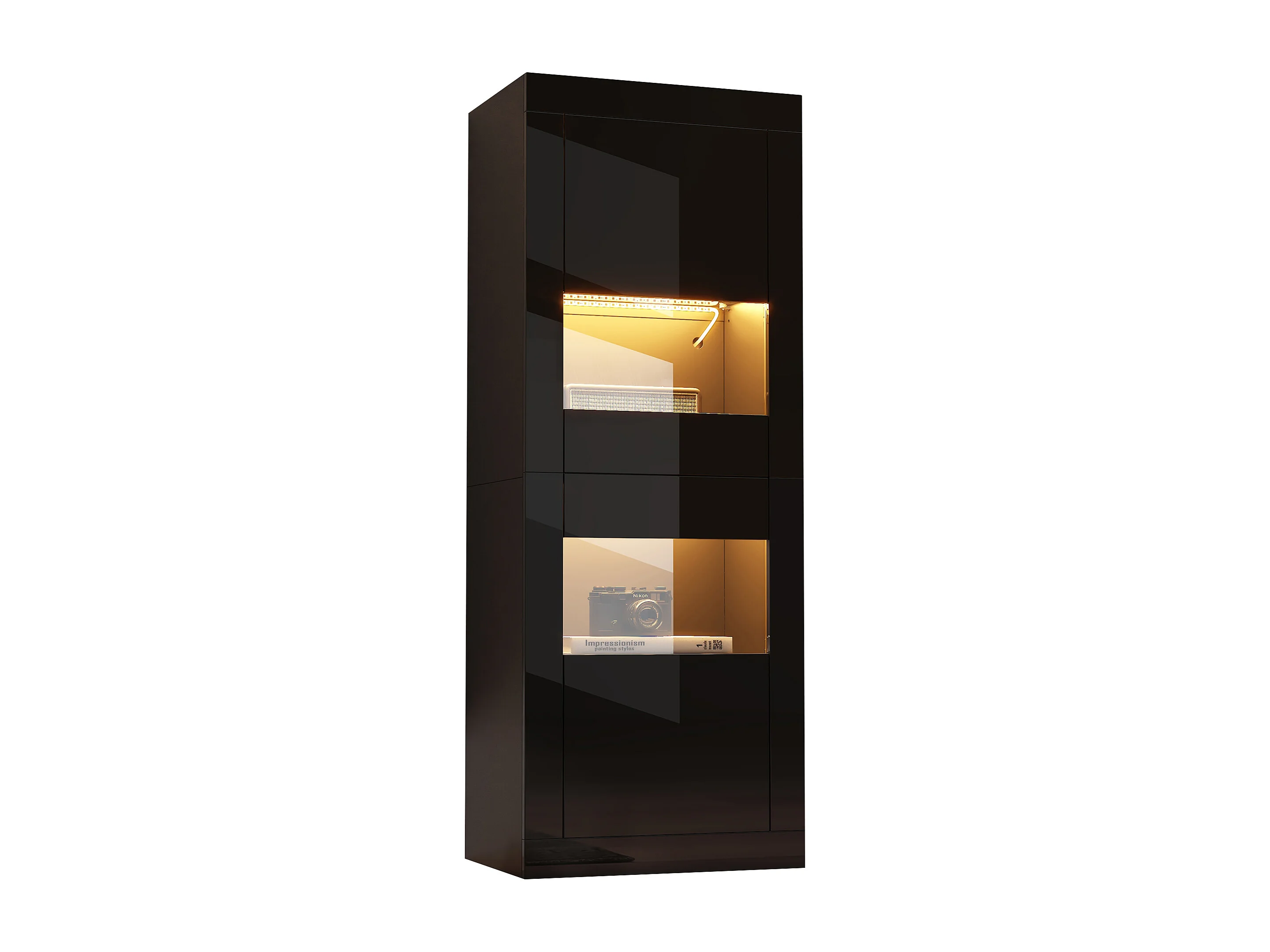 Hochglanzlack-Vitrine 61x42x162 cm - mit LED-Beleuchtung - 2 Türen - Höhenverstellbare Glasböden - Schwarz