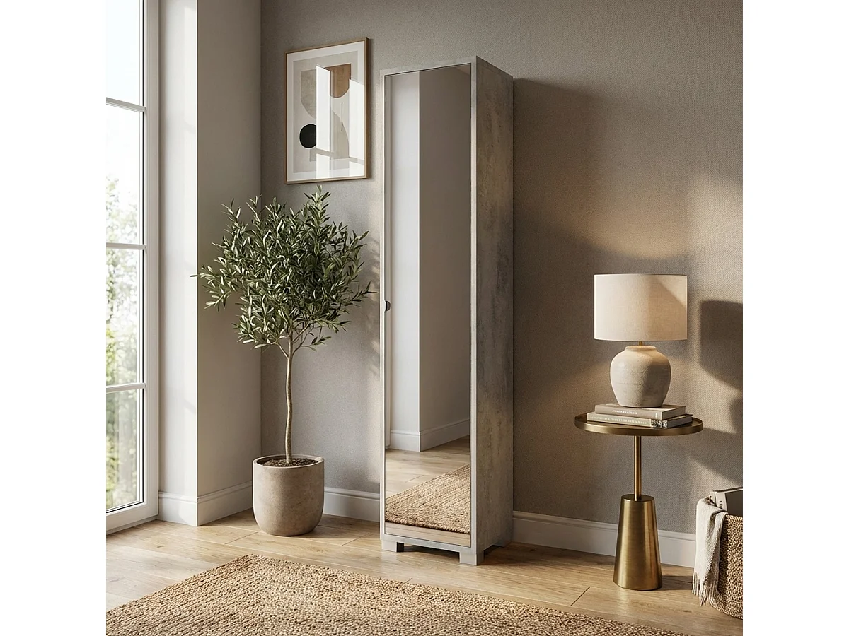 Hochschrank mit Spiegeltür, 4 verstellbare Ablagen Beck - Grau