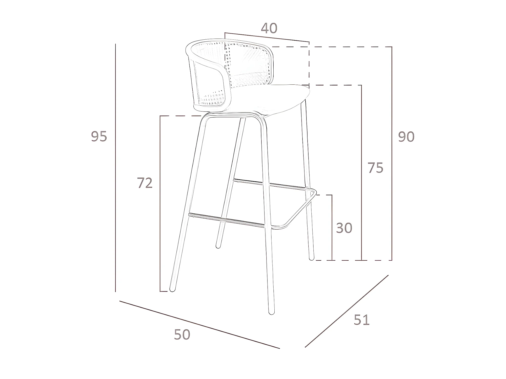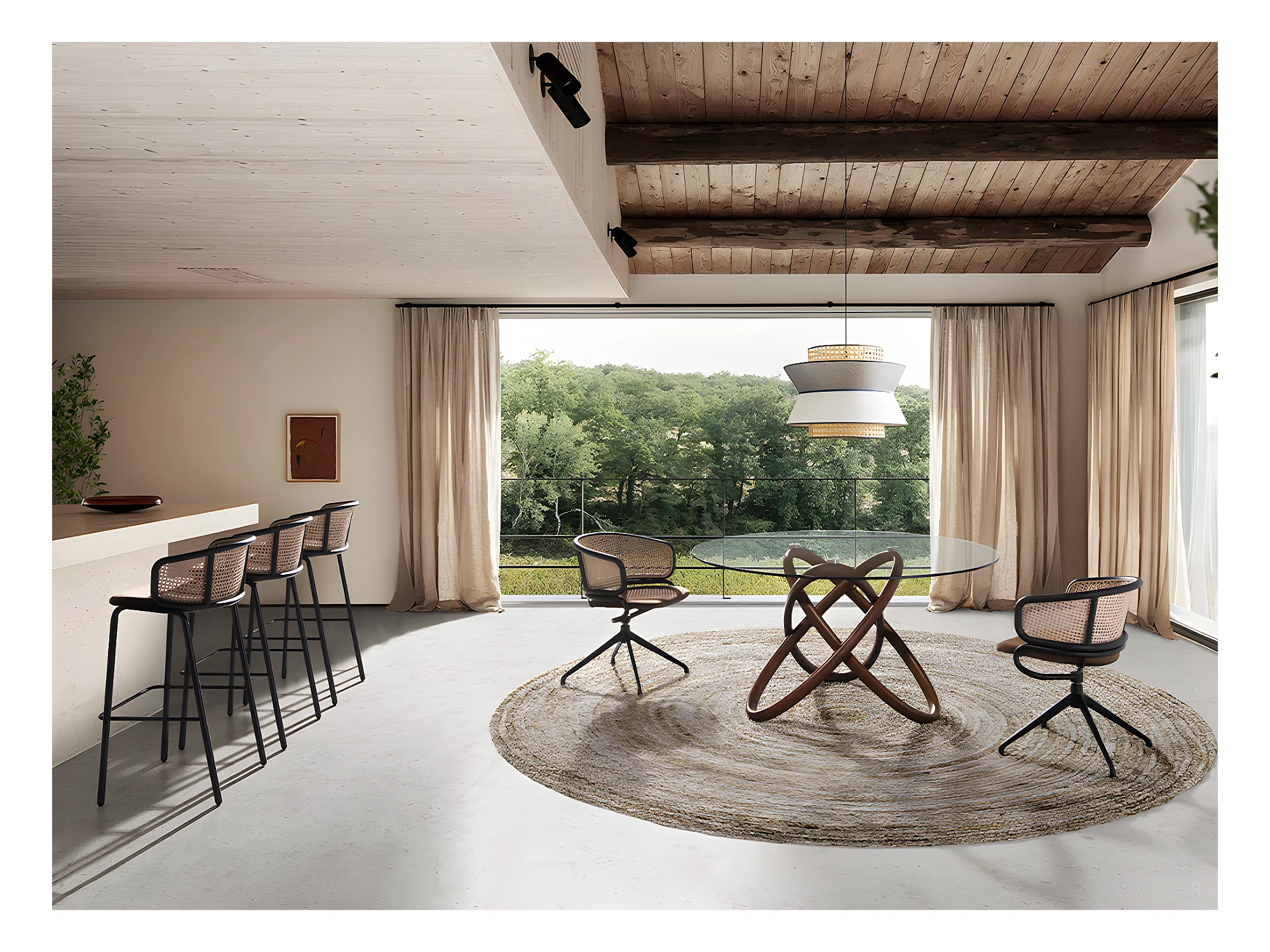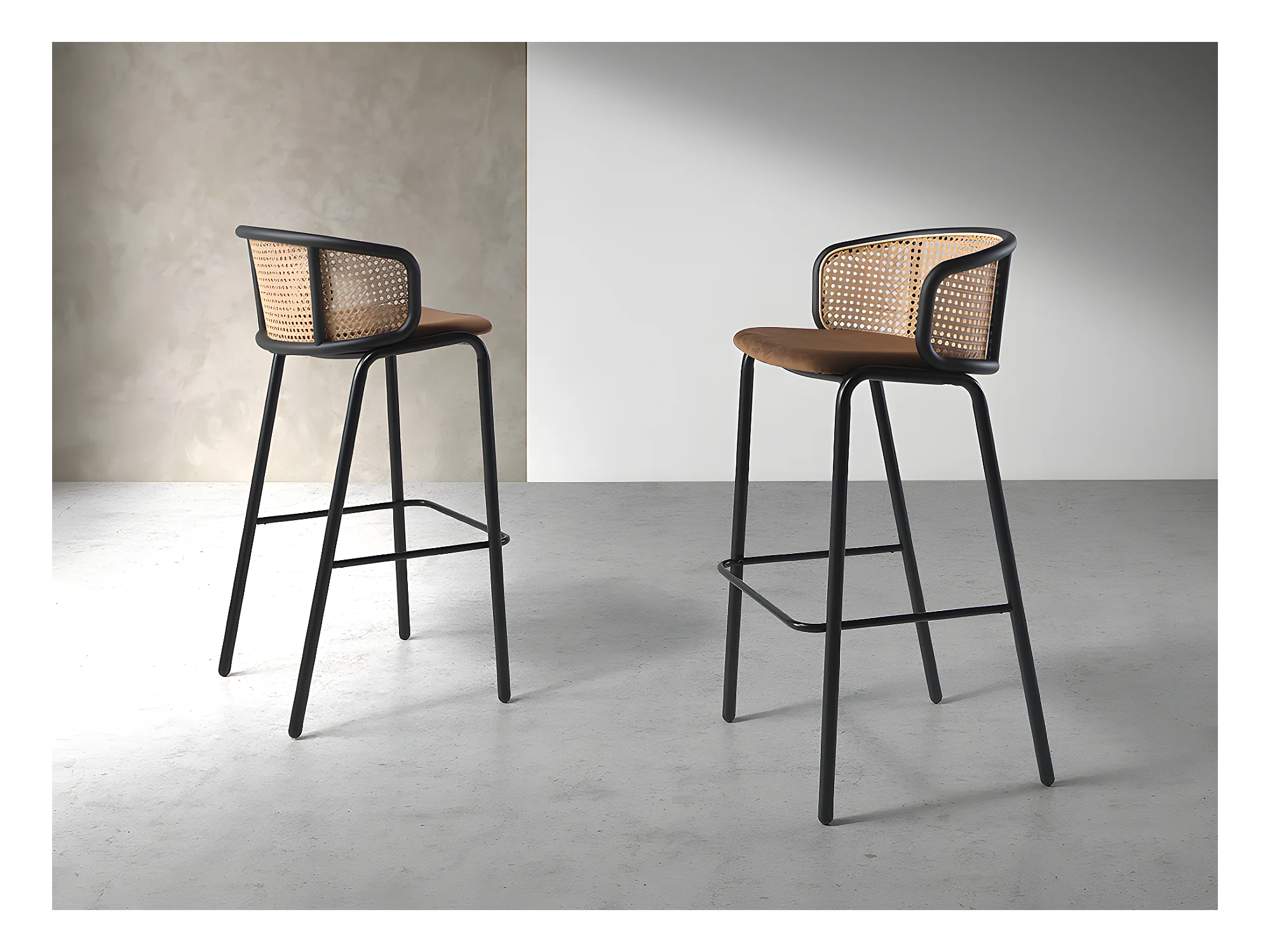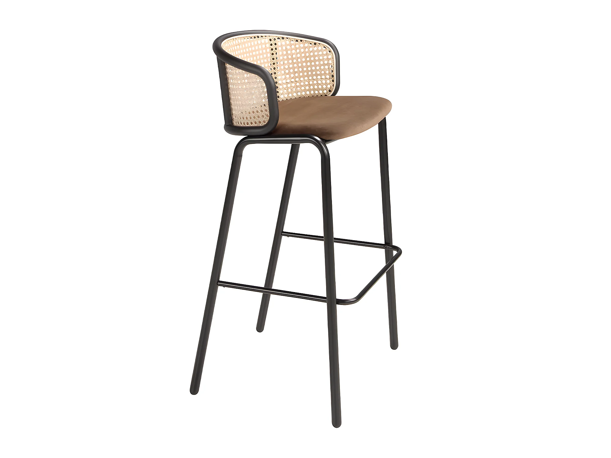 Hocker aus Rattan und braunem Samt 4128 ANGEL CERDA