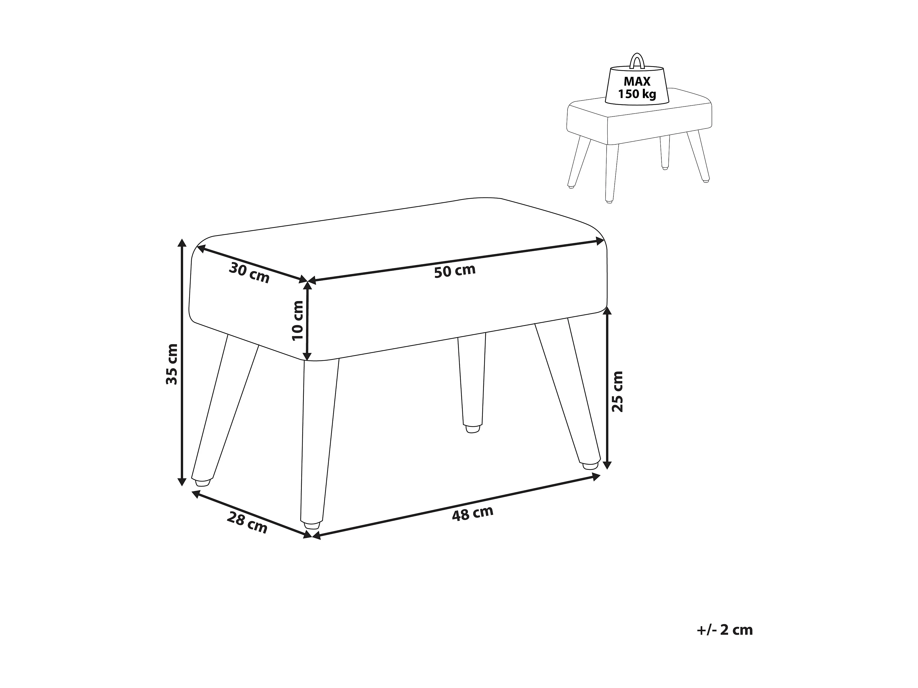 Hocker mit Holzbeinen Bouclé weiß rechteckig Schemel Sitzhocker Modern Takoma
