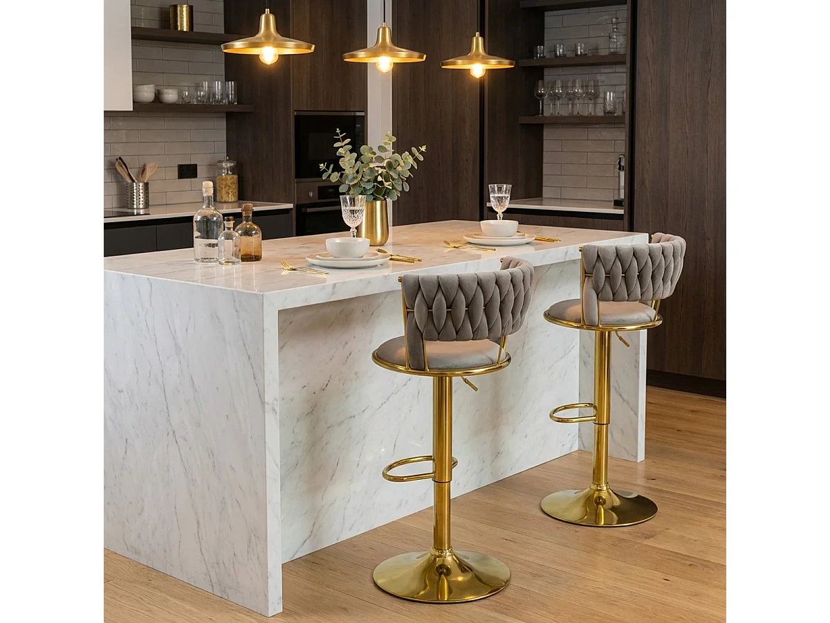 Hocker verstellbar aus goldfarbenem Metall und gewebtem Samt Macaron - Braun