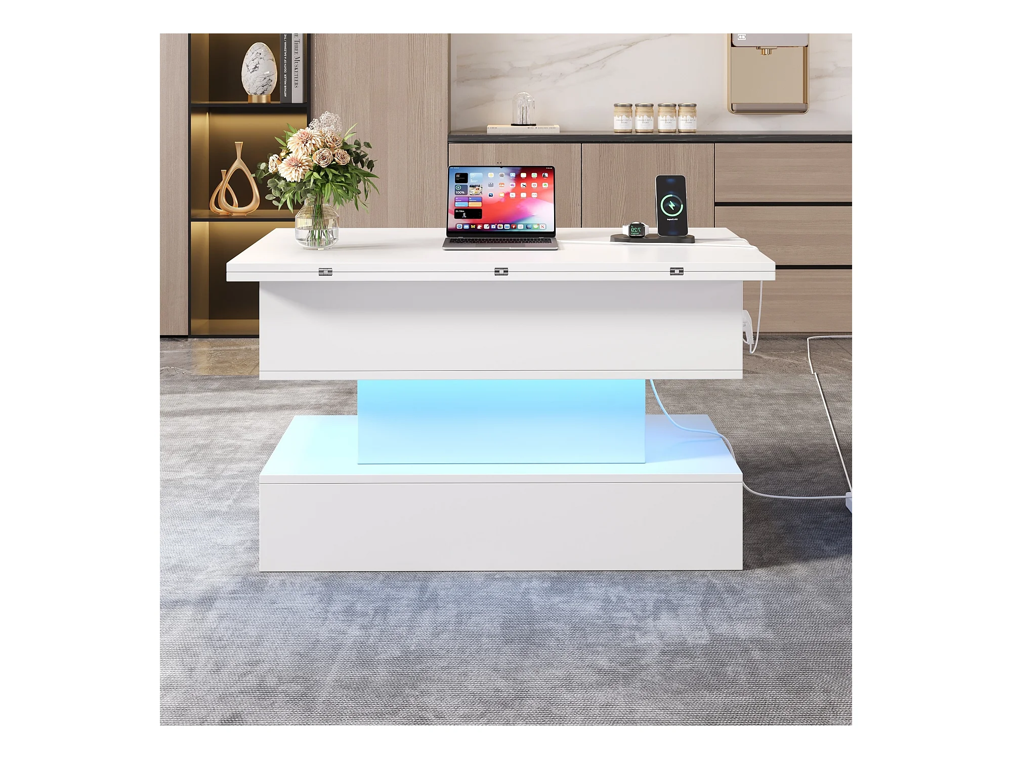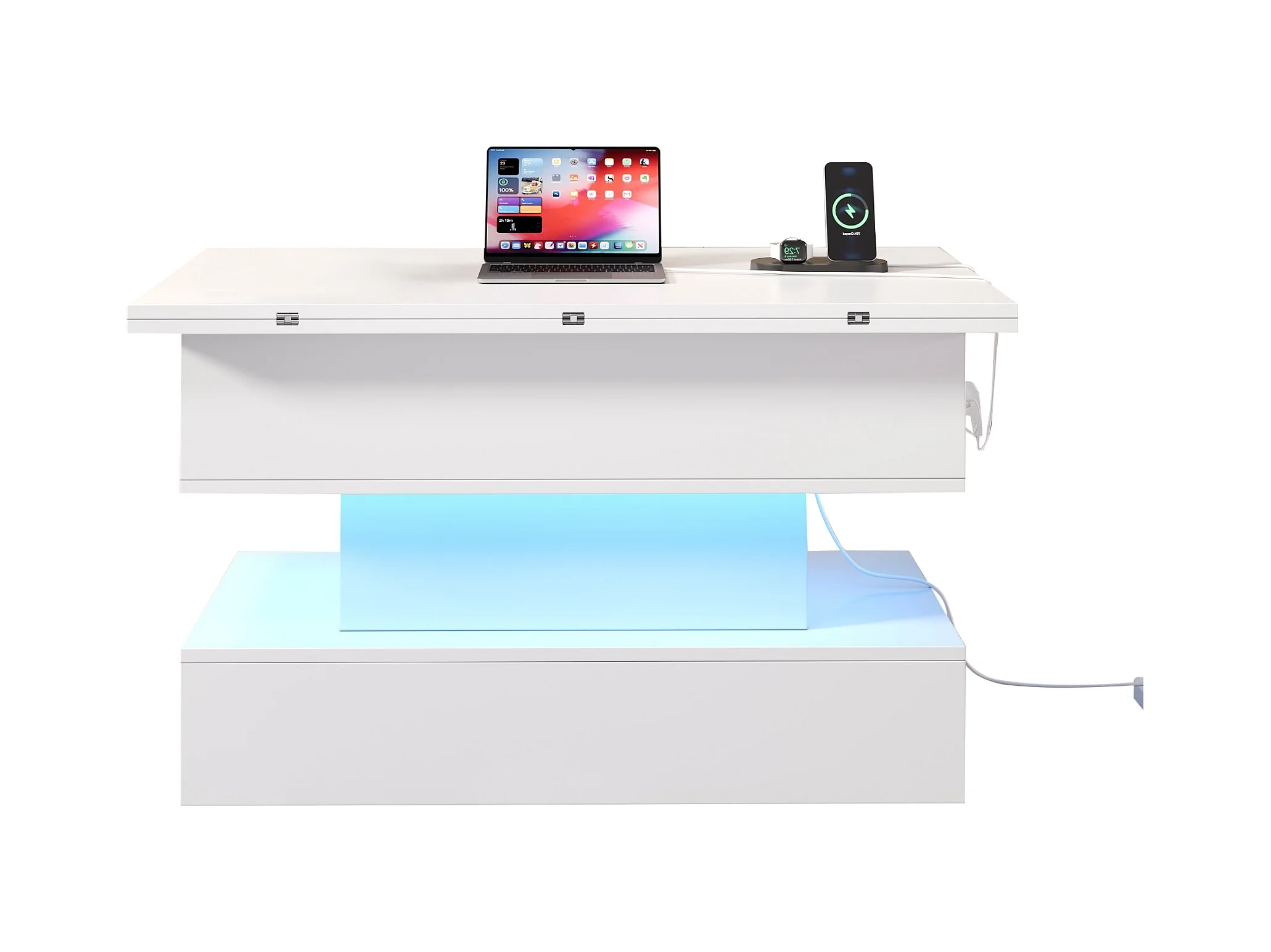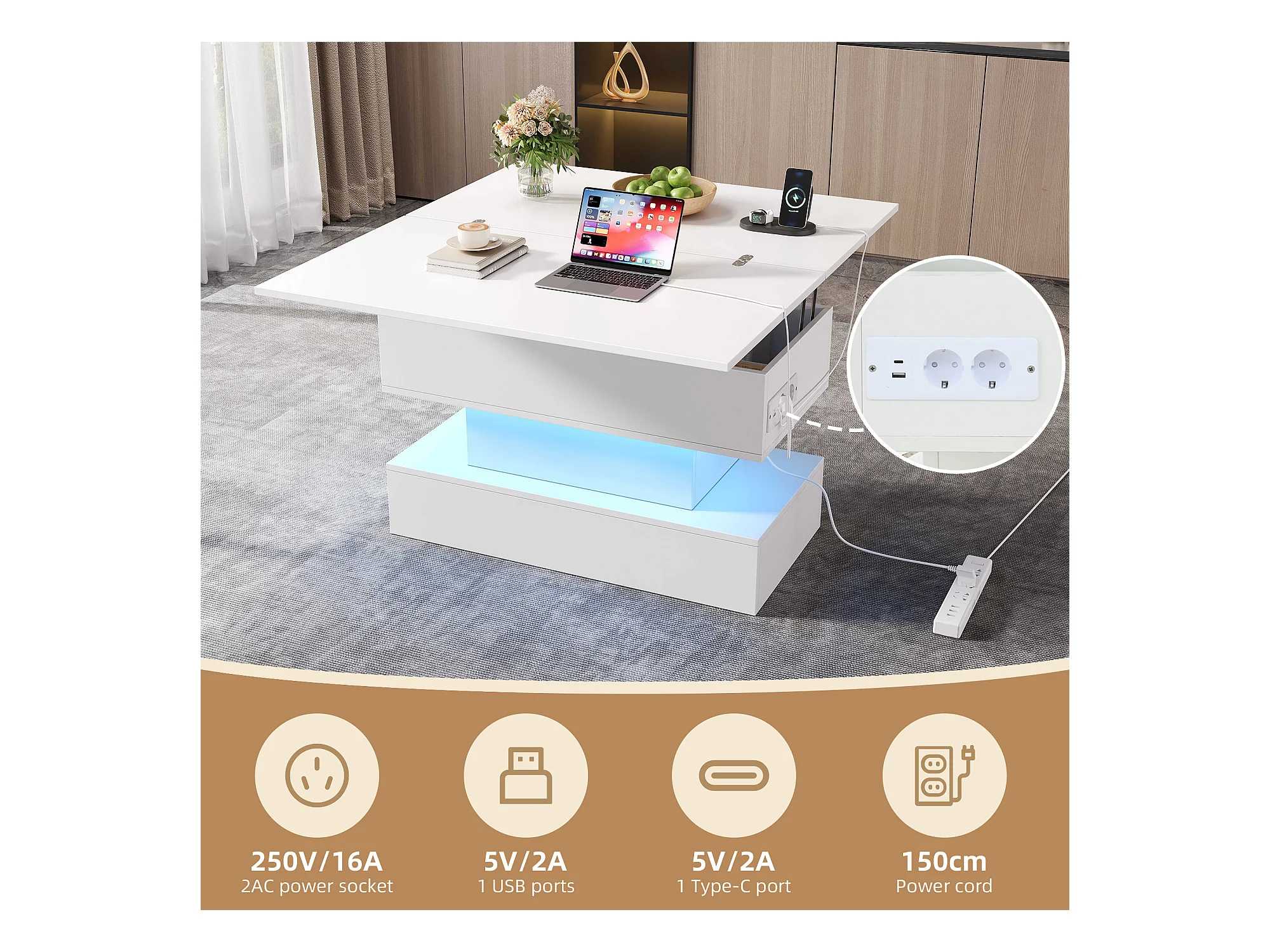 Höhenverstellbarer Beistelltisch 100x50x51,5 cm - mit USB- und Type-C-Anschlüssen - mit LED-Beleuchtung - Weiß