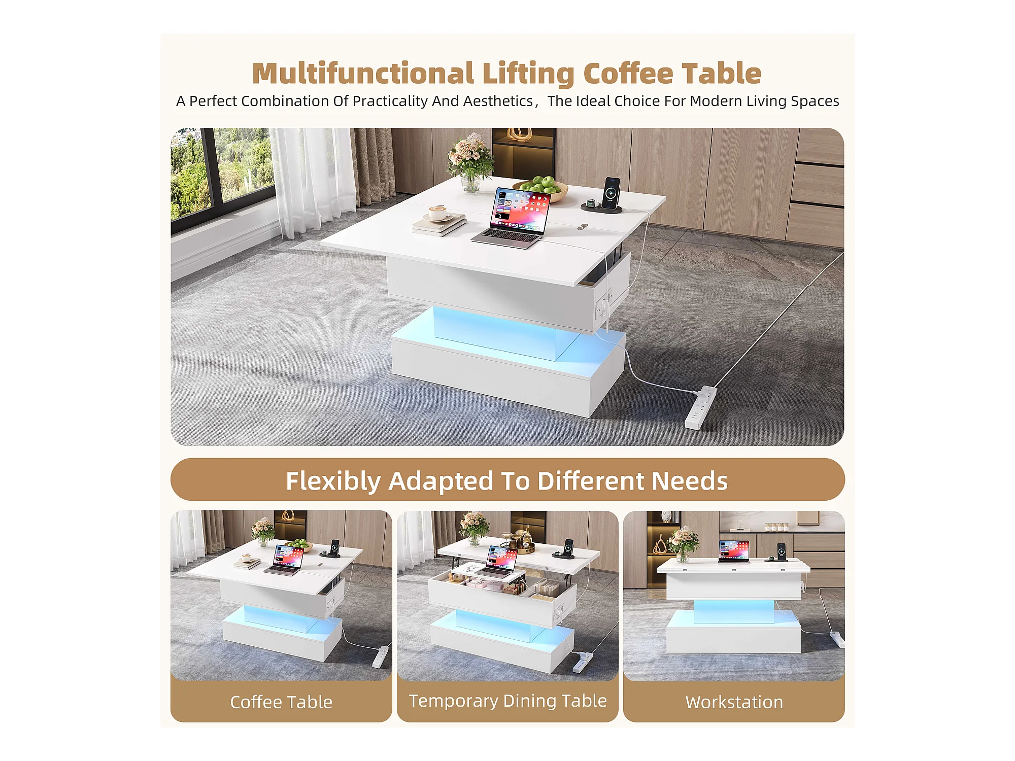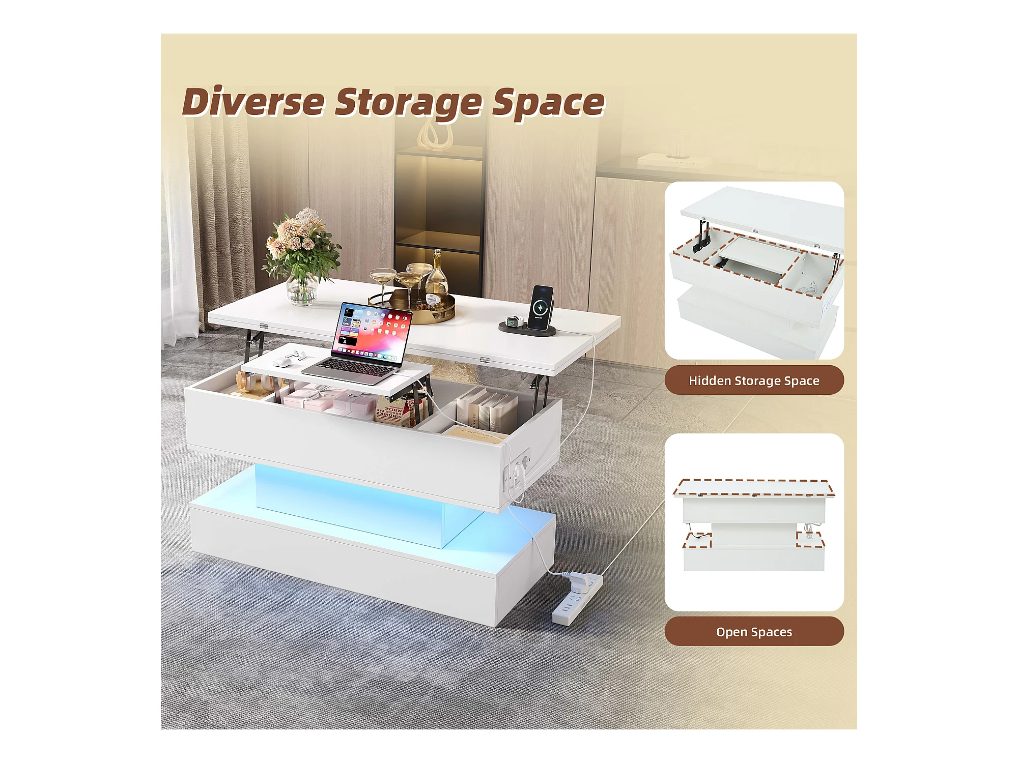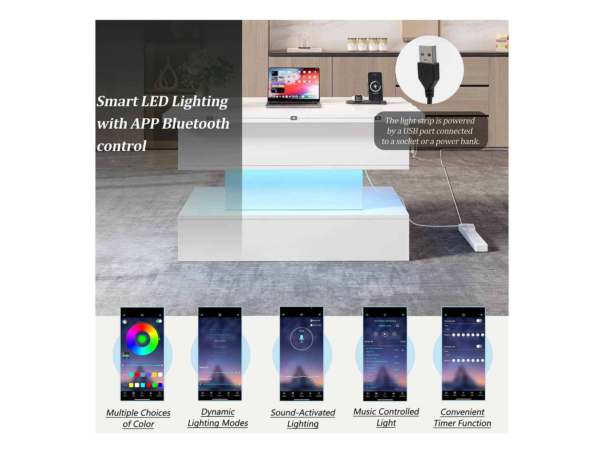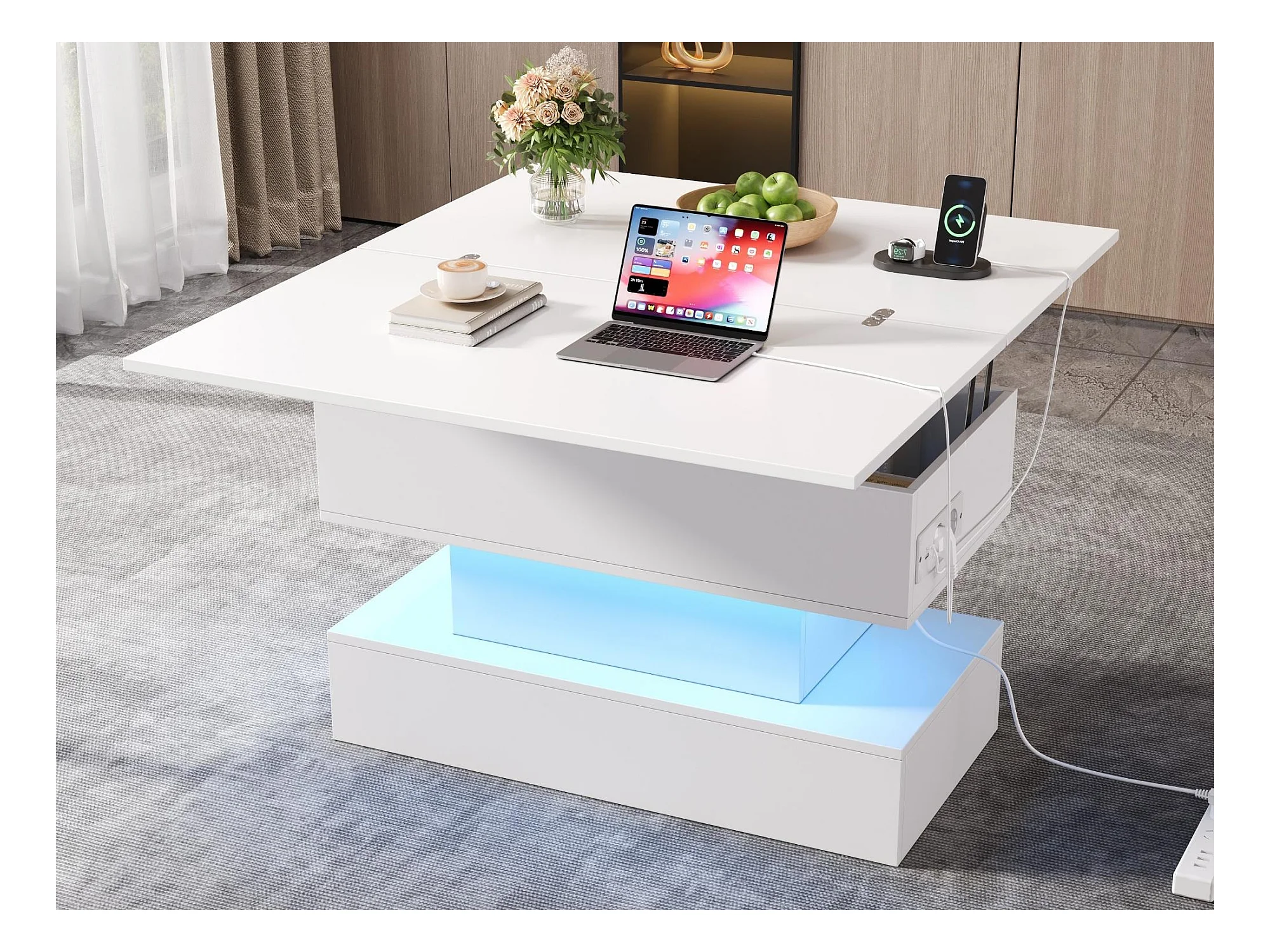 Höhenverstellbarer Beistelltisch 100x50x51,5 cm - mit USB- und Type-C-Anschlüssen - mit LED-Beleuchtung - Weiß