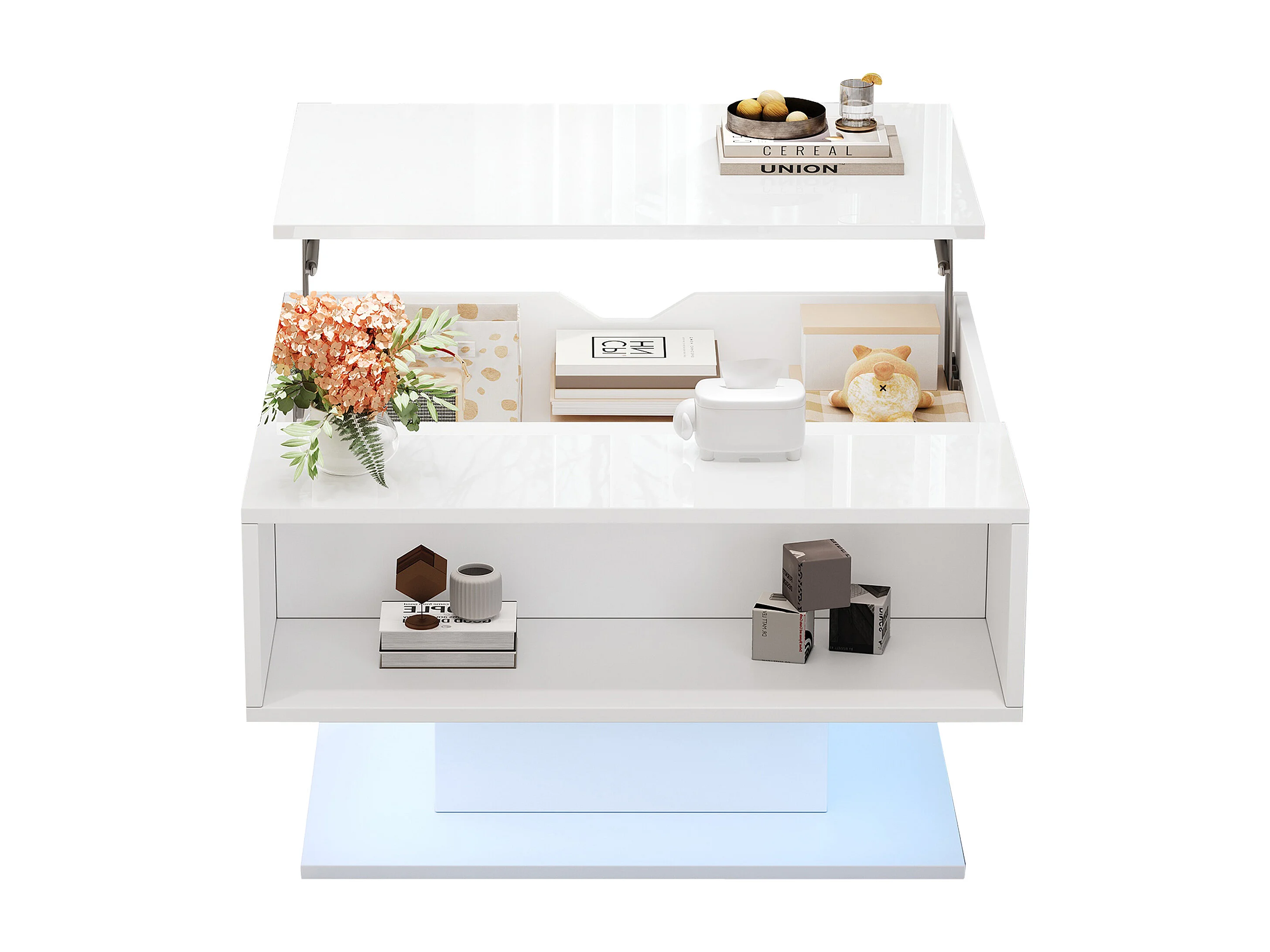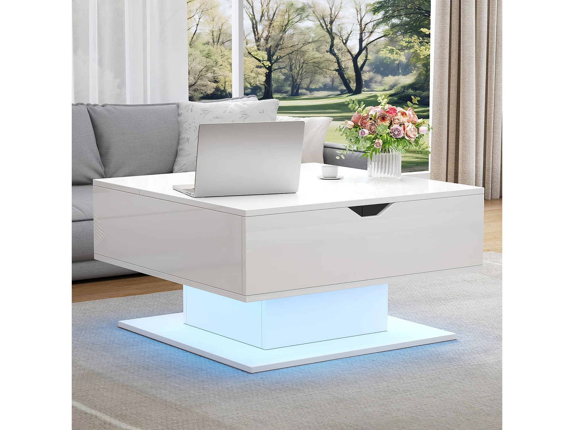 Höhenverstellbarer Beistelltisch 80x77x40 cm - Hochglanz-Design - Mit LED-Beleuchtung - Halboffener Stauraum - Weiß