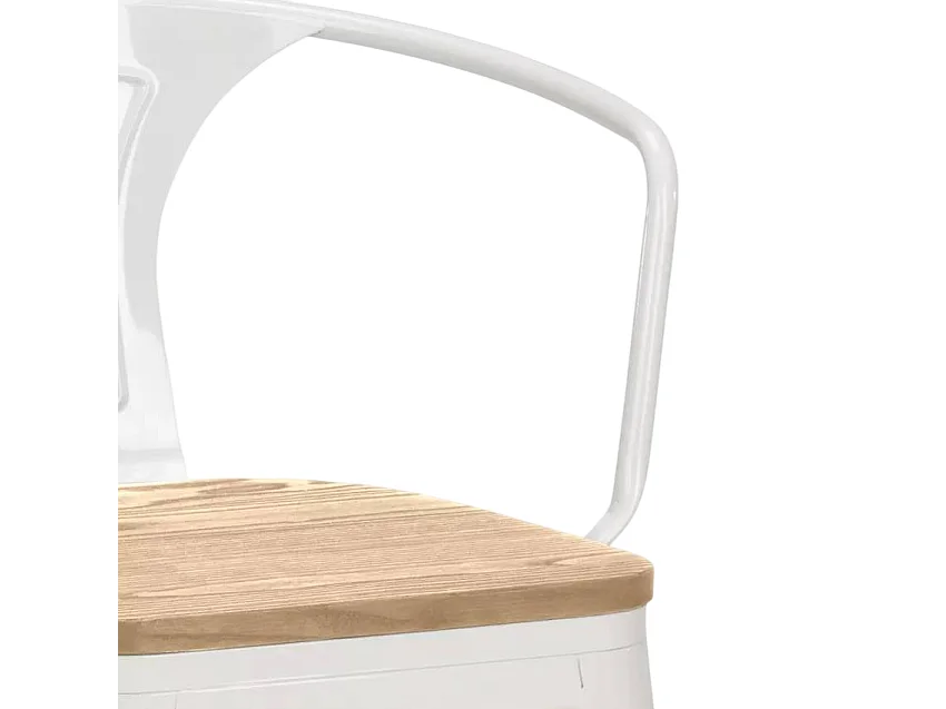 Barhocker aus stahl mit holzrückenlehne im industriestil Steel Wood Back - Weiß