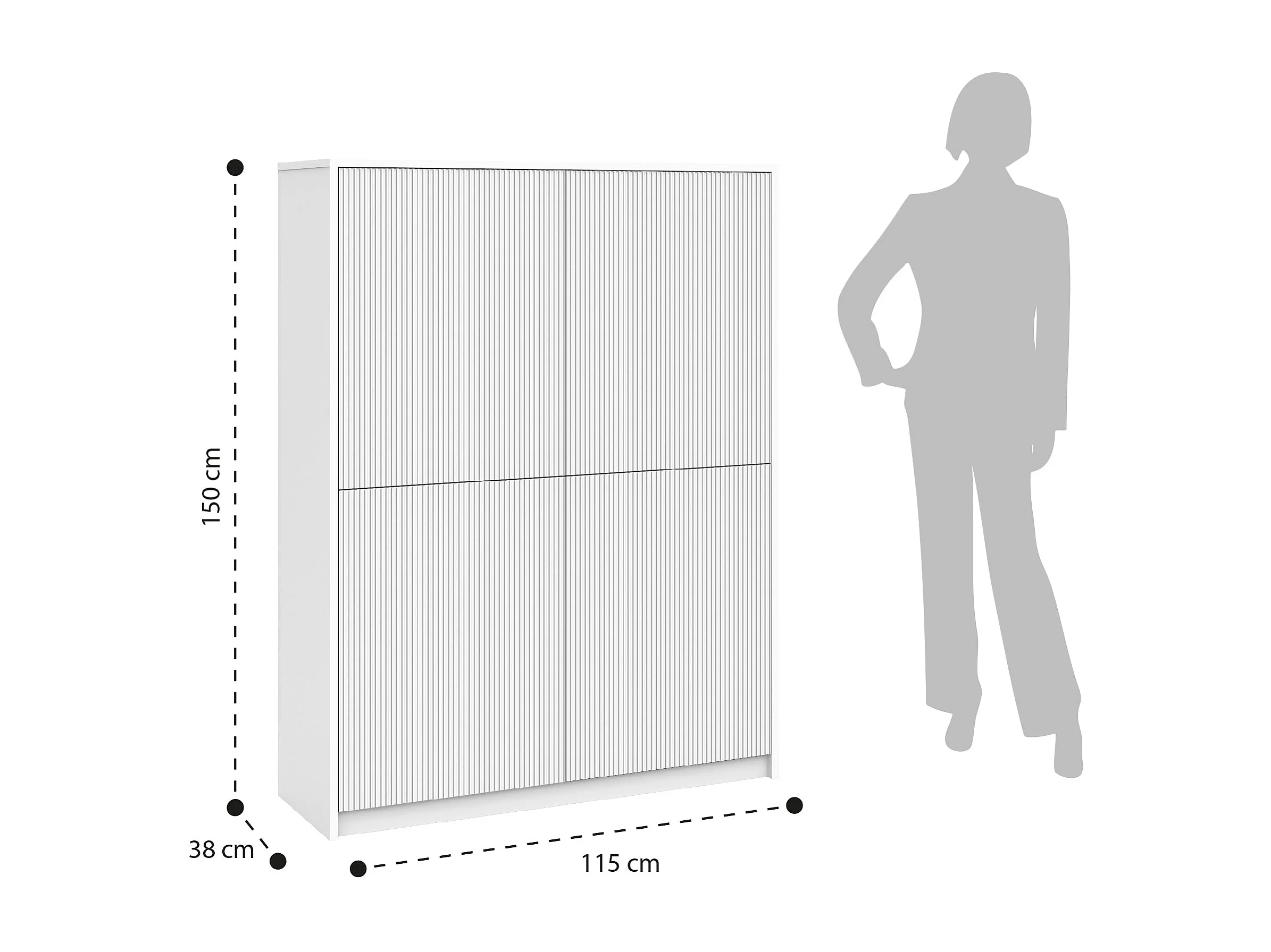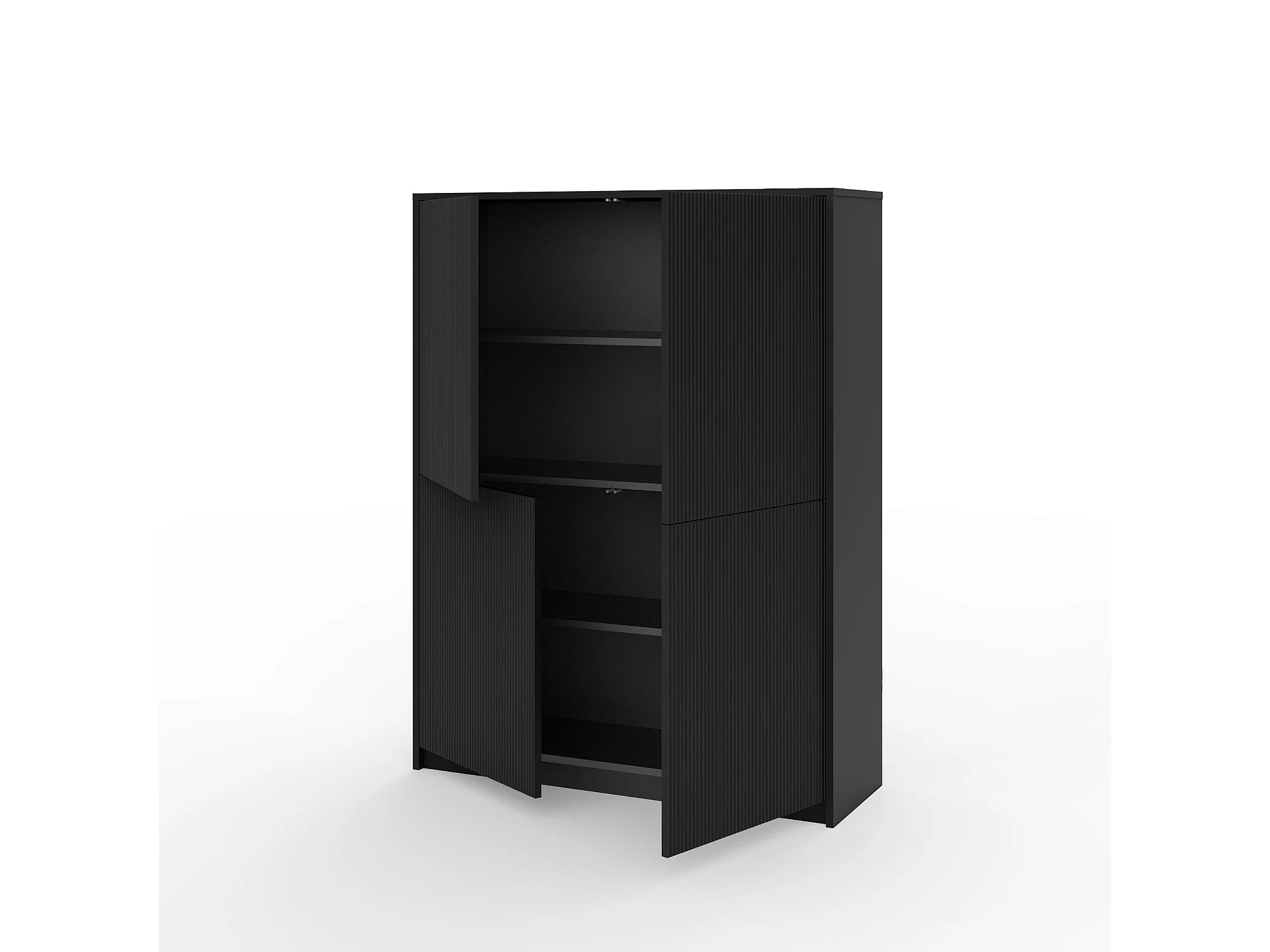 Anrichte hoch moderner Schrank mit geriffelten Türen Budapest - Schwarz