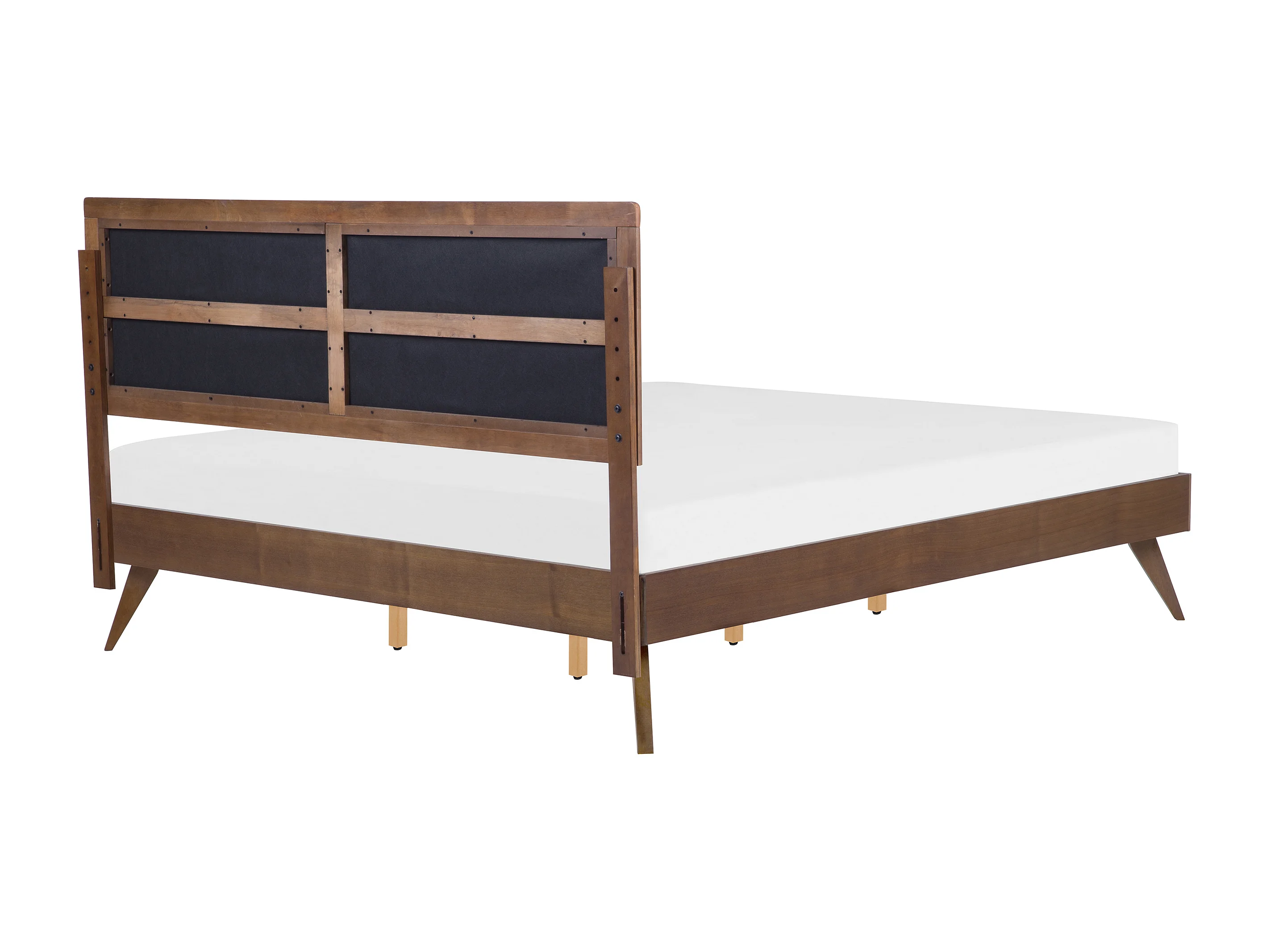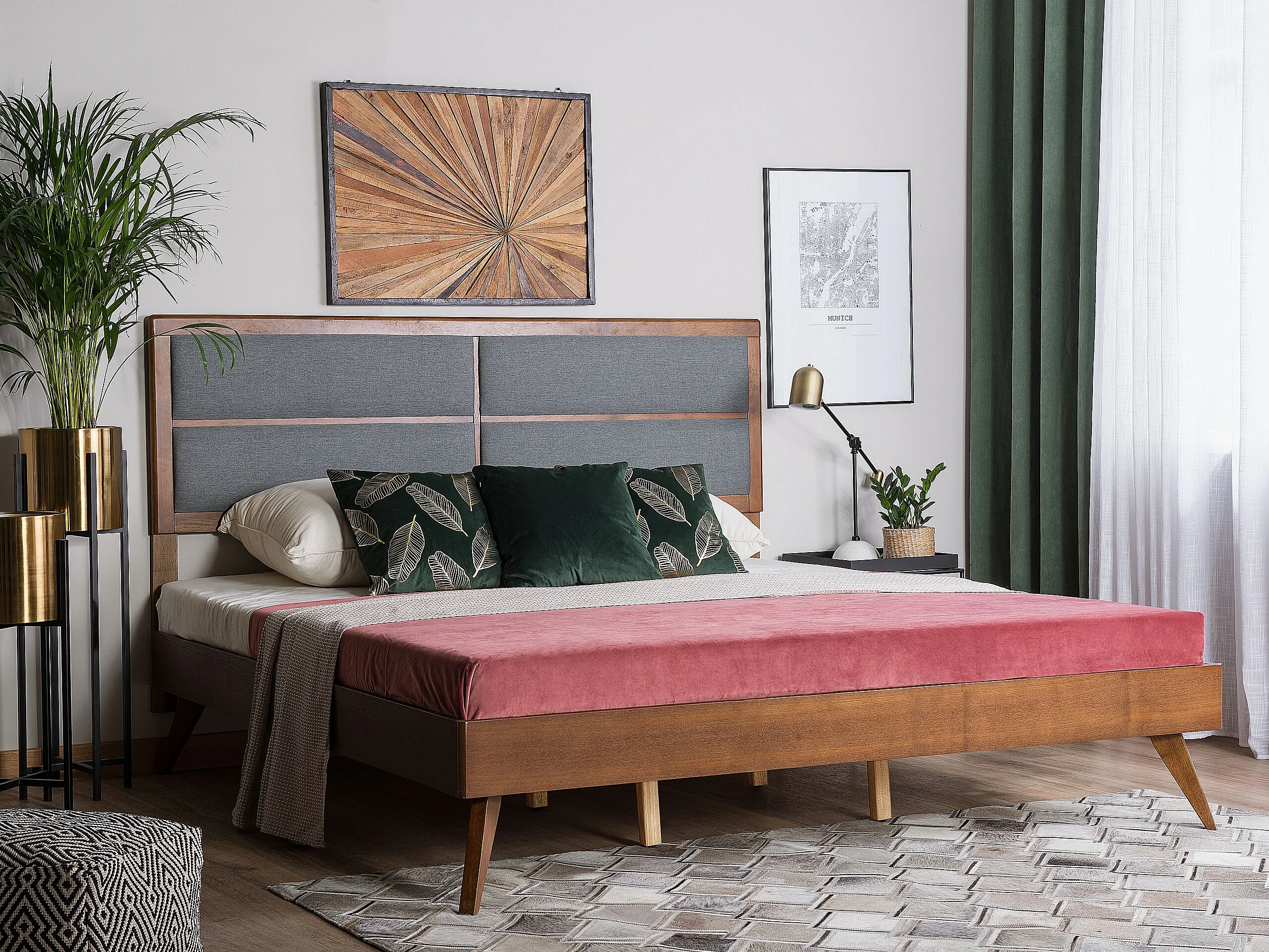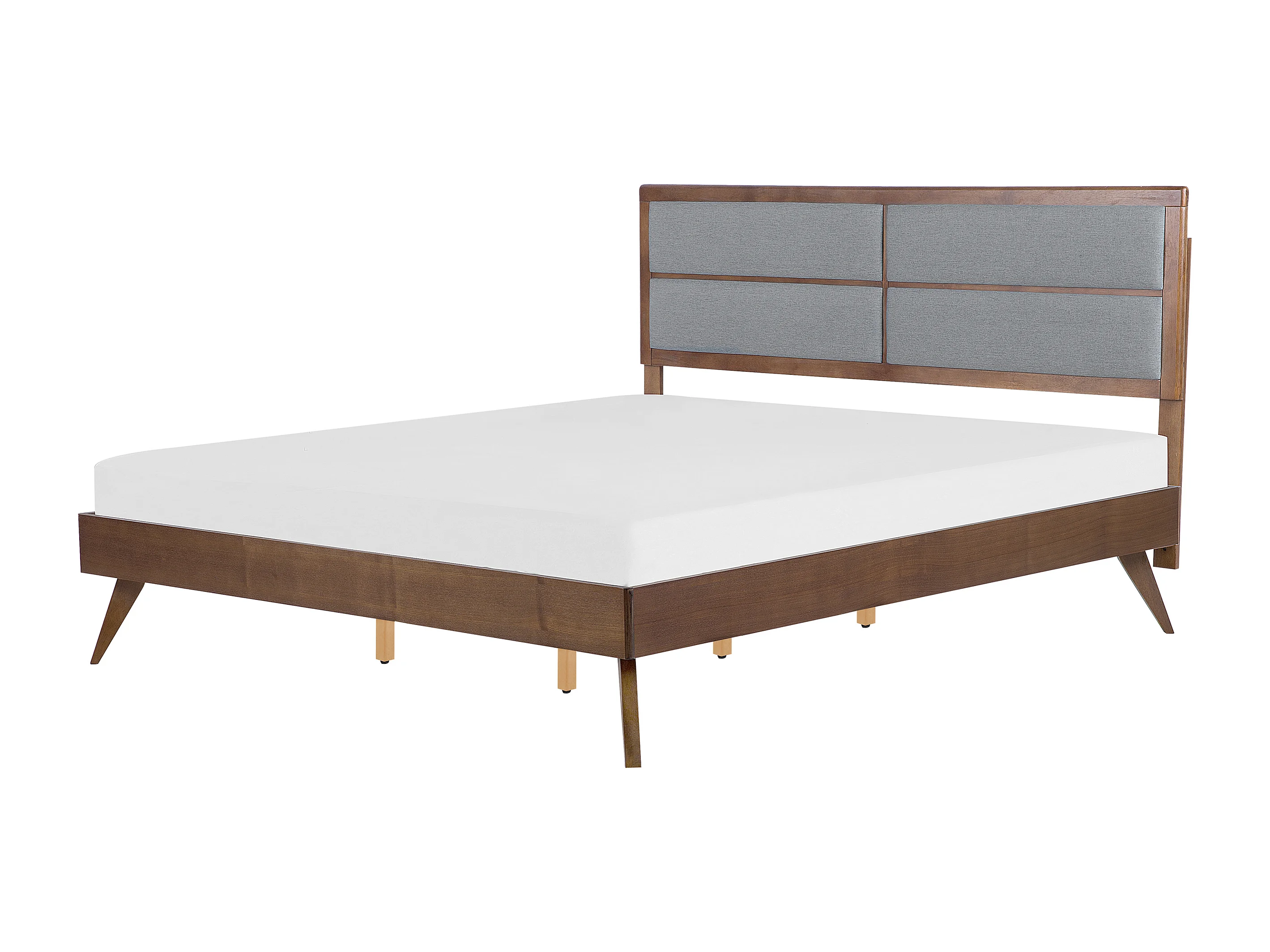 Bett Holzoptik dunkelbraun / grau mit Lattenrost 160x200cm hohes Kopfteil Poissy
