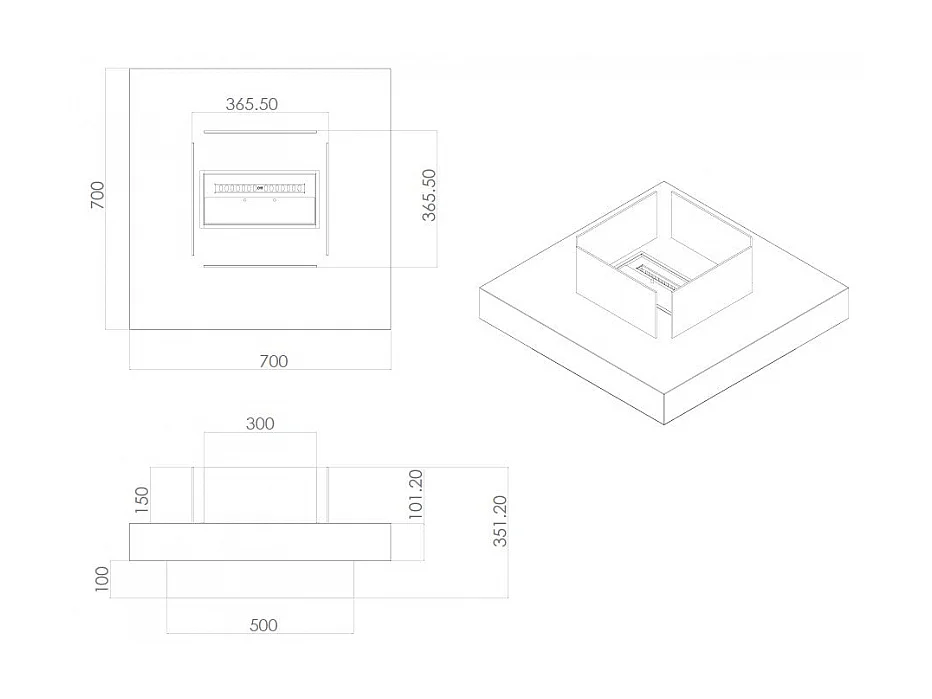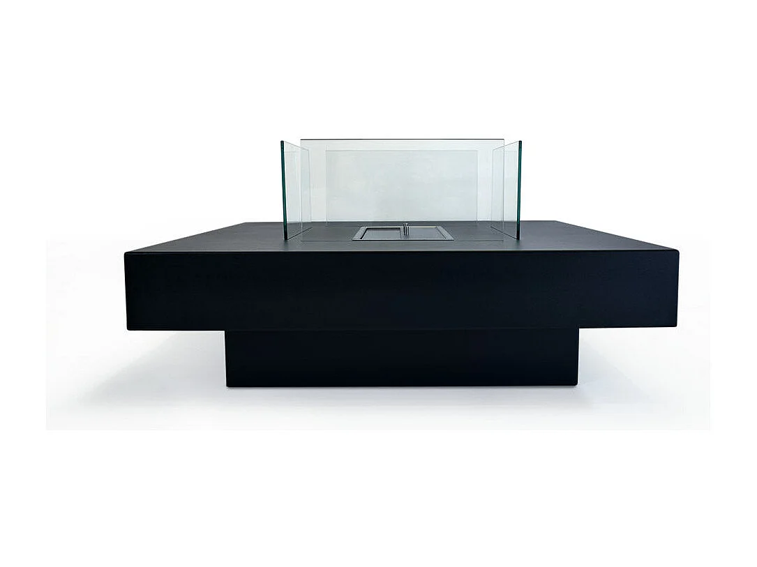 Bodenstehender Bioethanolkamin für drinnen und draußen Panarea Schwarz 70x70x35