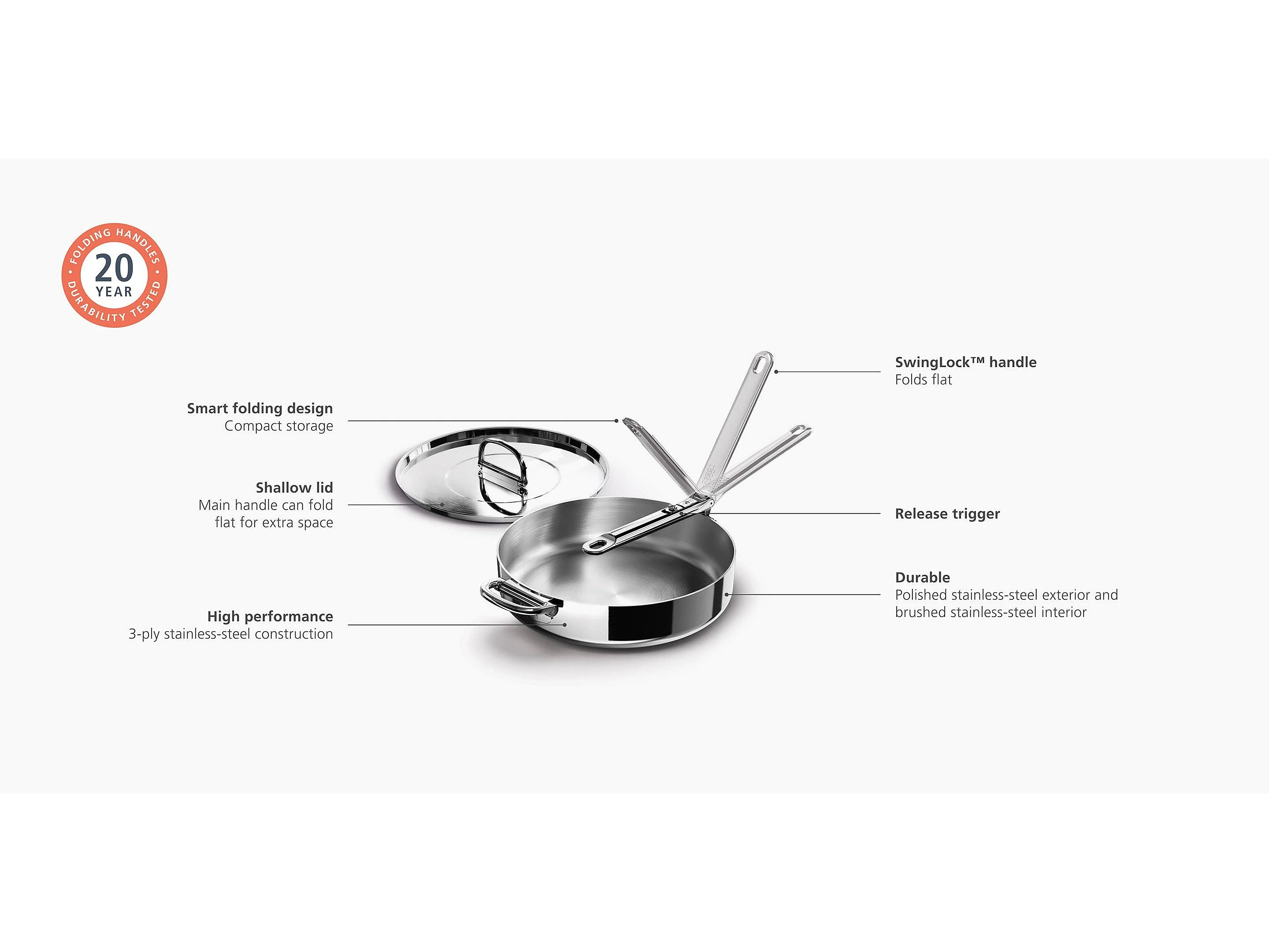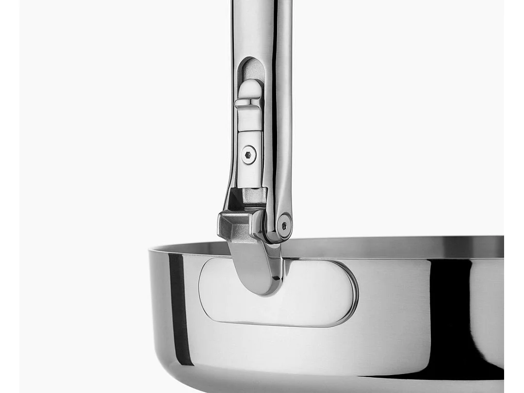 Joseph Joseph Space Steel 28 cm Sautpfanne aus Edelstahl, mit klappbarem Griff und Deckel, induktionsgeeignet und ofenfest.
