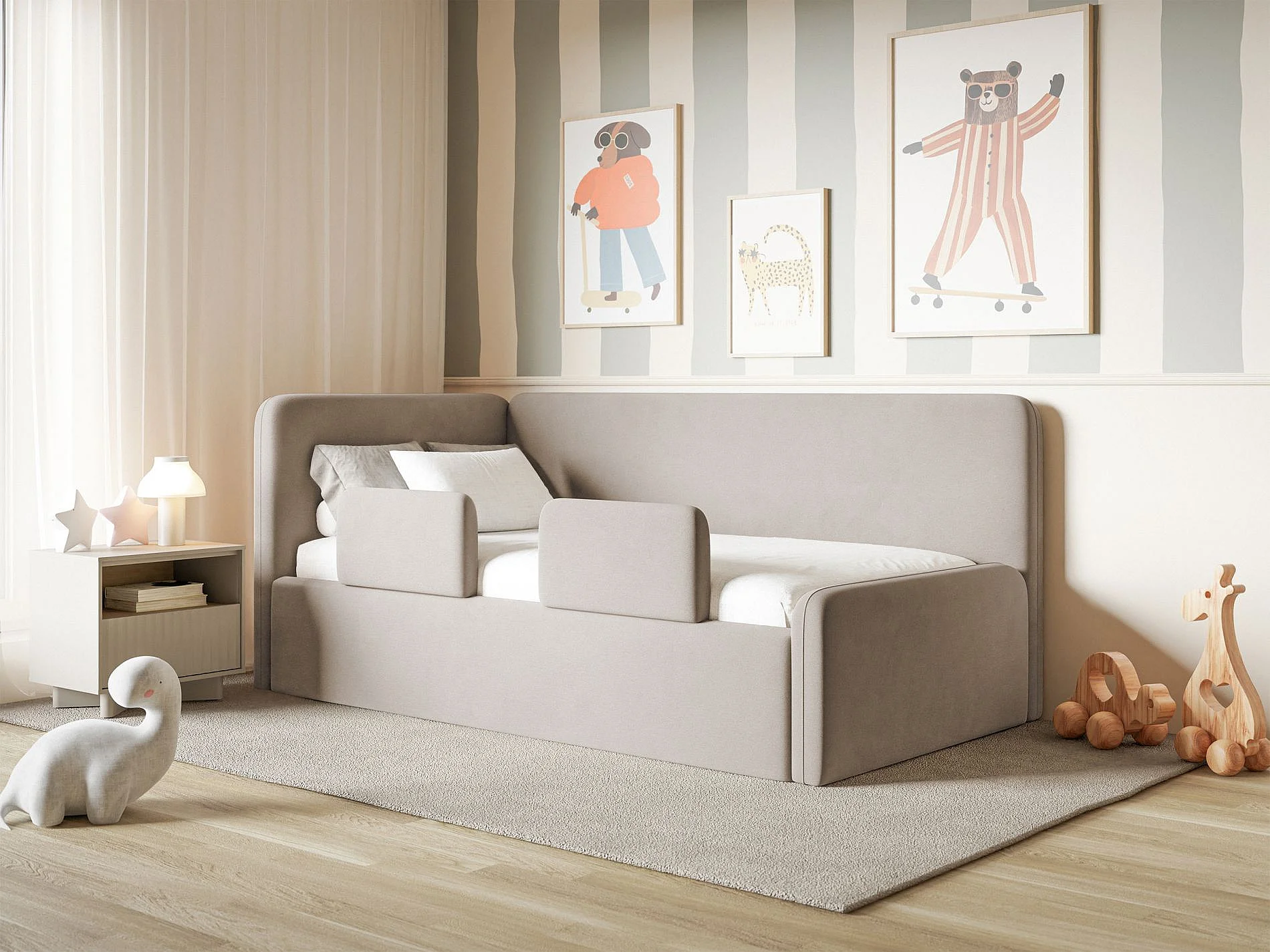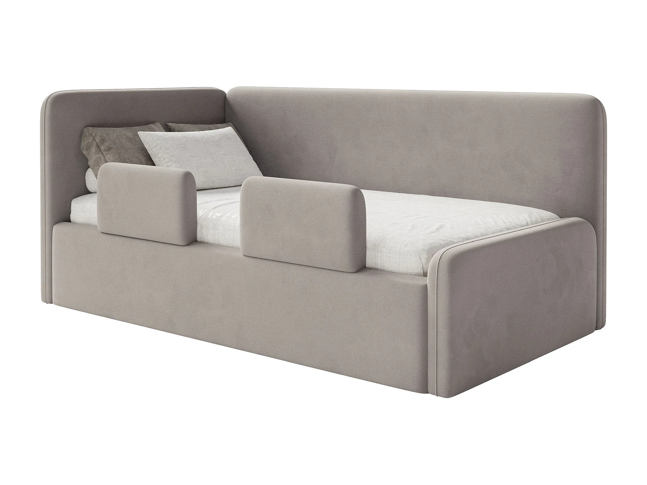 Jugendbett mit Kopfteil links – Matratze – Plüsch – Blau – 90x200 cm – FANKO