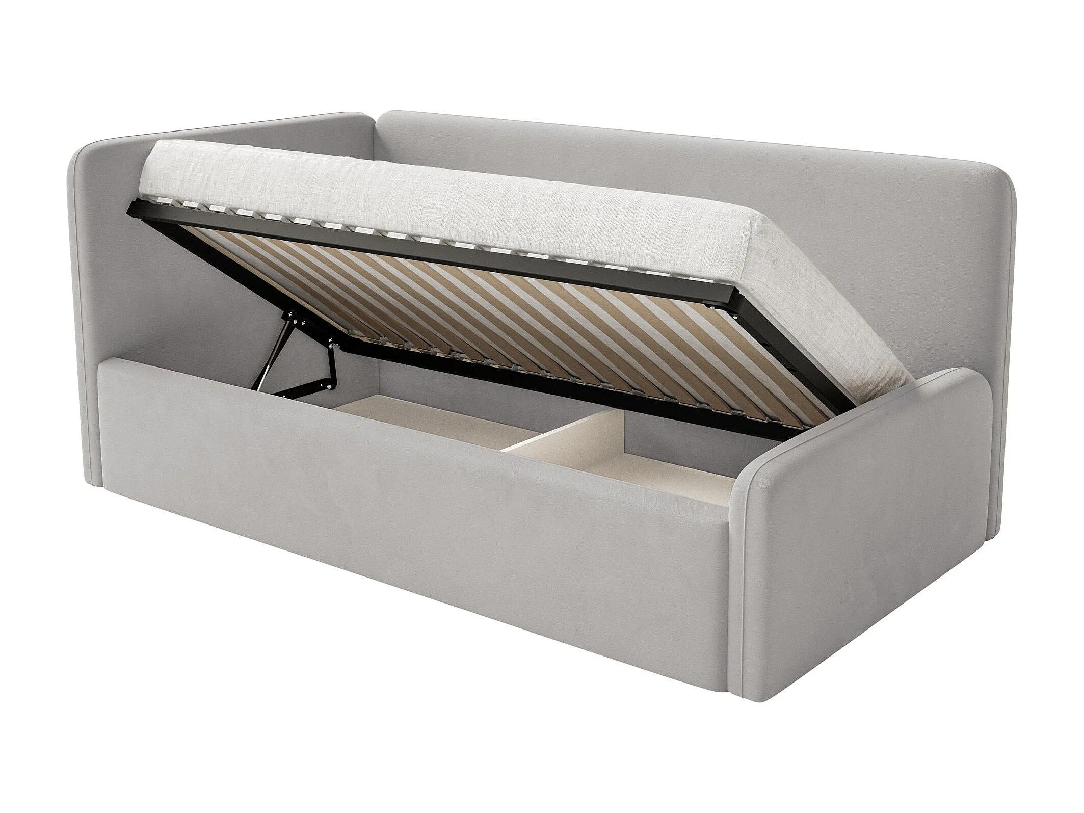 Jugendbett mit Kopfteil links – Matratze – Plüsch – Graubeige – 90x200 cm – FANKO