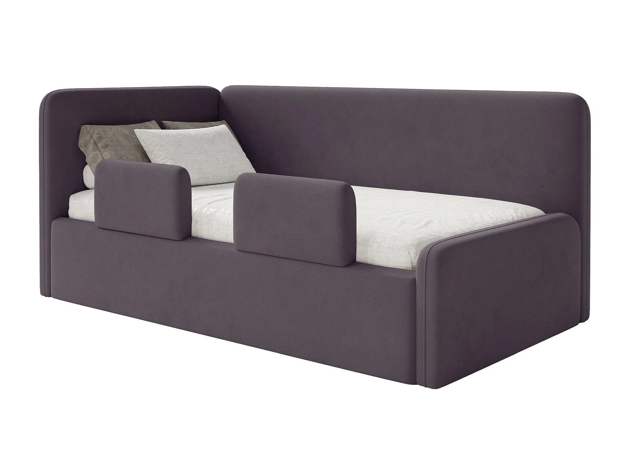 Jugendbett mit Kopfteil links – Matratze – Plüsch – Taupe – 90x200 cm – FANKO