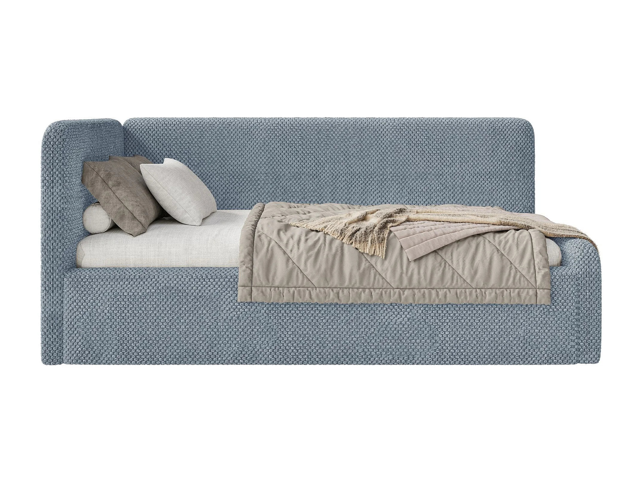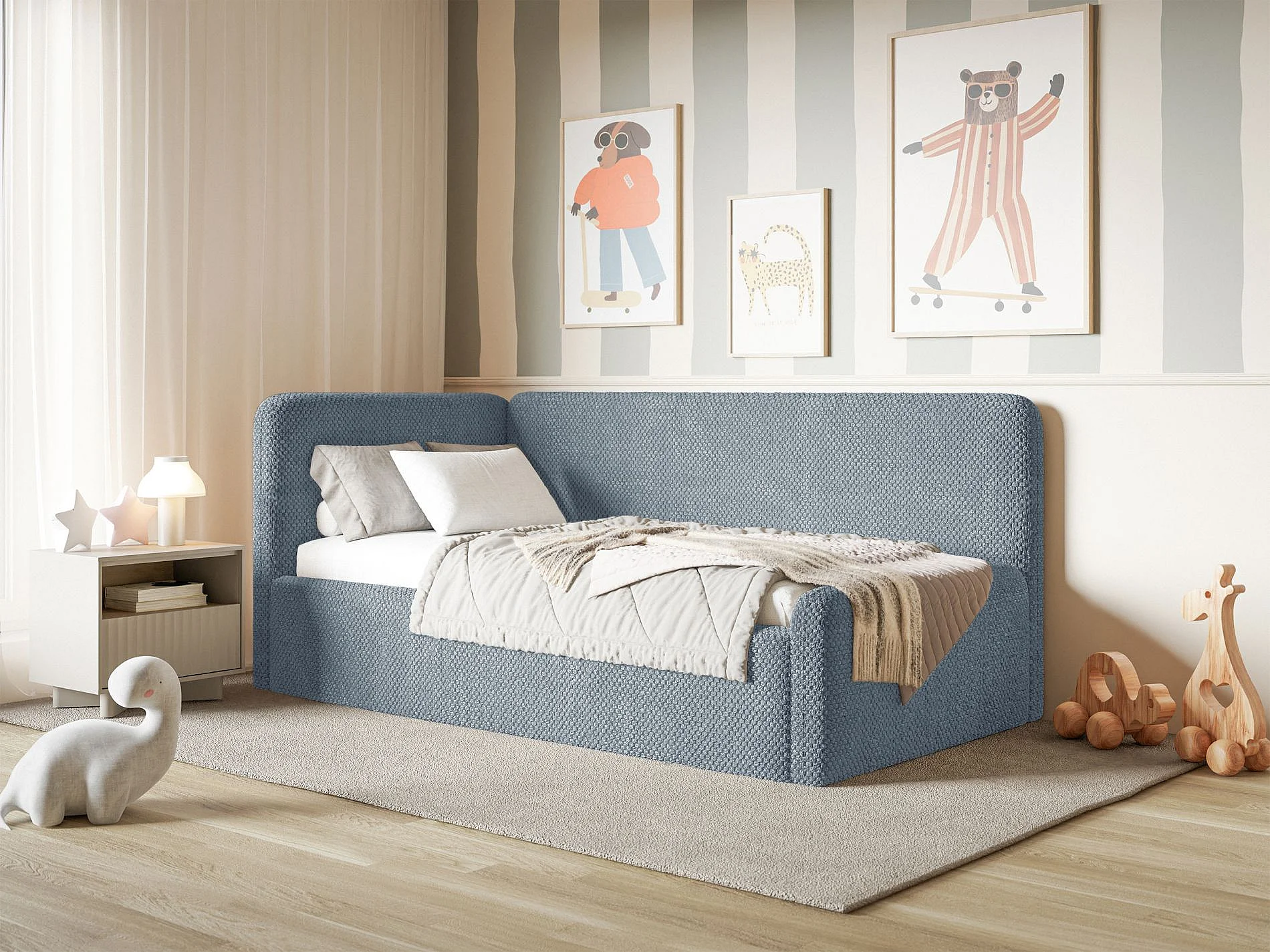 Jugendbett mit Kopfteil links – Plüsch – Blau – 90x200 cm – FANKO