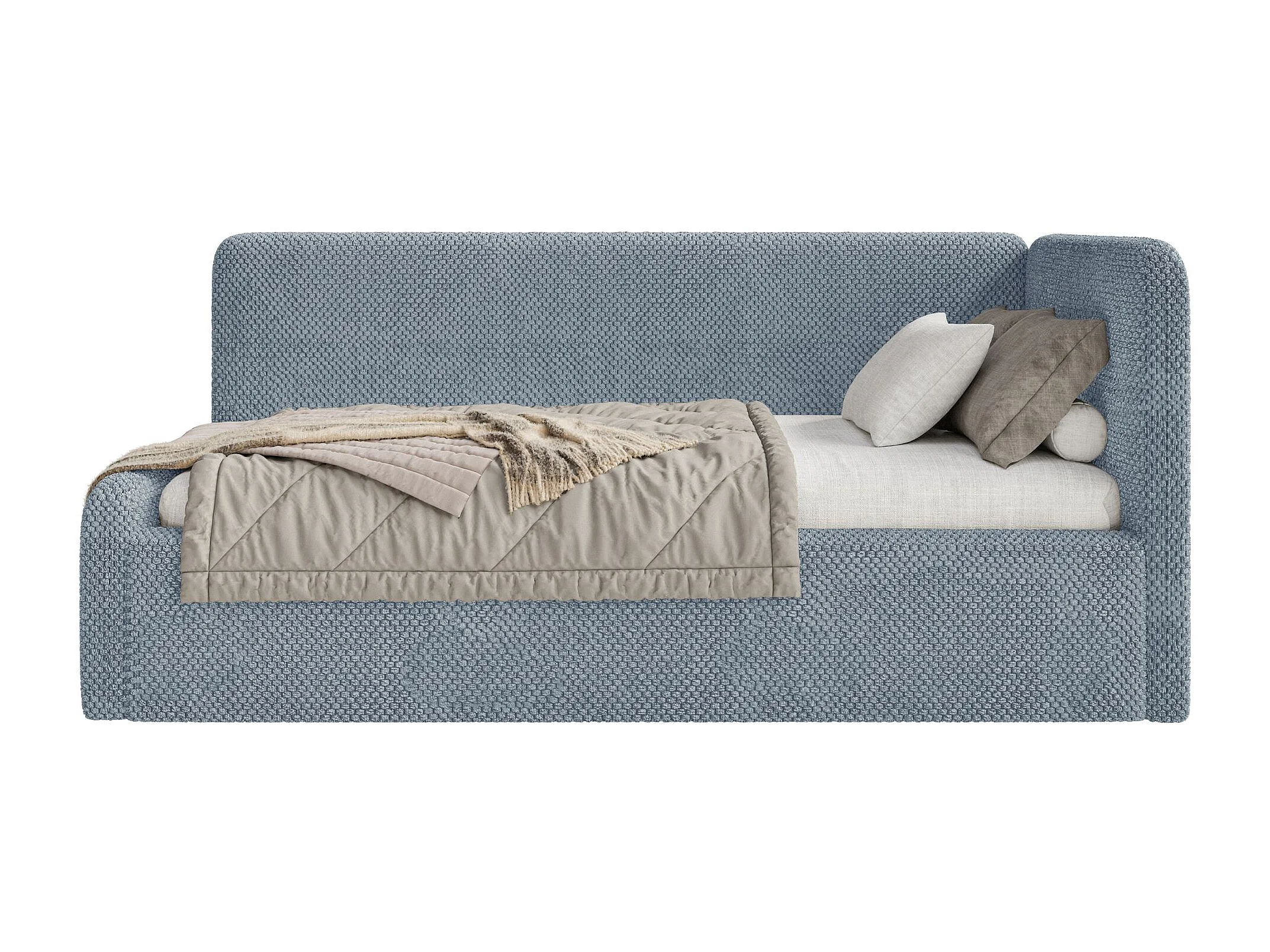 Jugendbett mit Kopfteil rechts – Matratze – Samt – Blau – 90x200 cm – FANKO