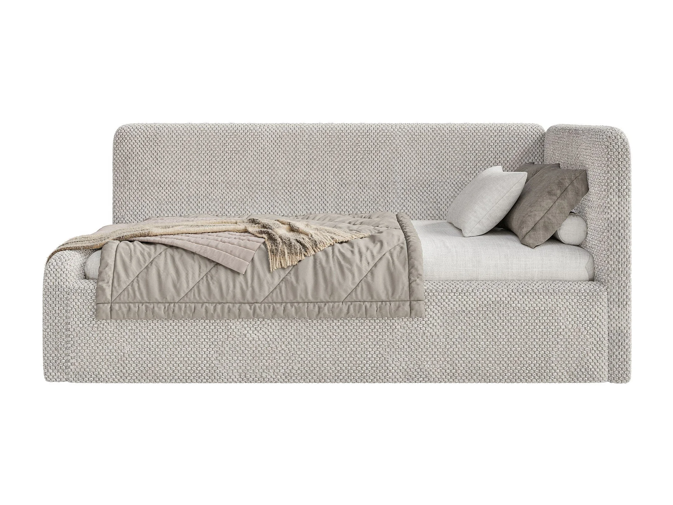Jugendbett mit Kopfteil rechts – Matratze – Samt – Greige – 90x200 cm – FANKO