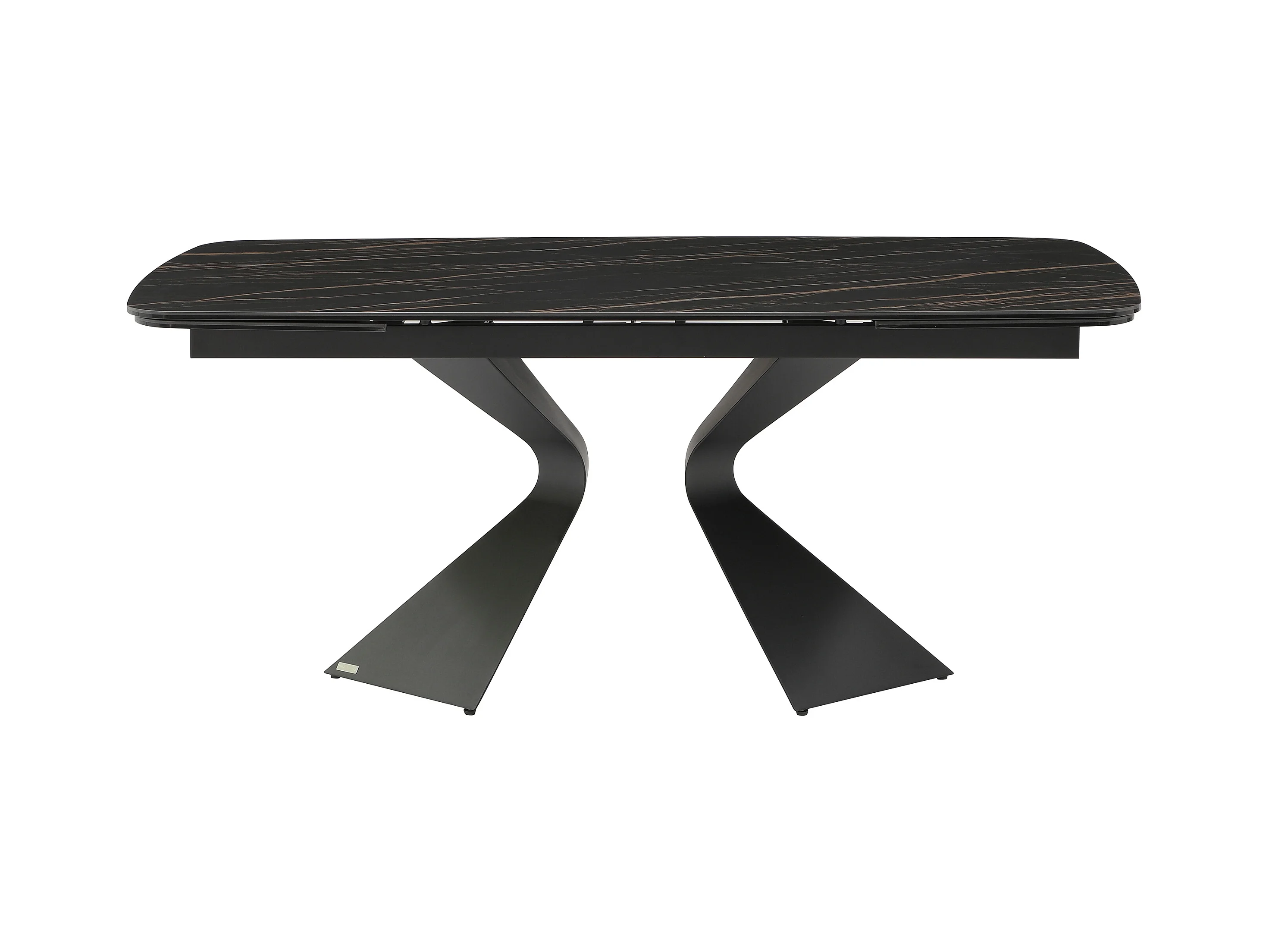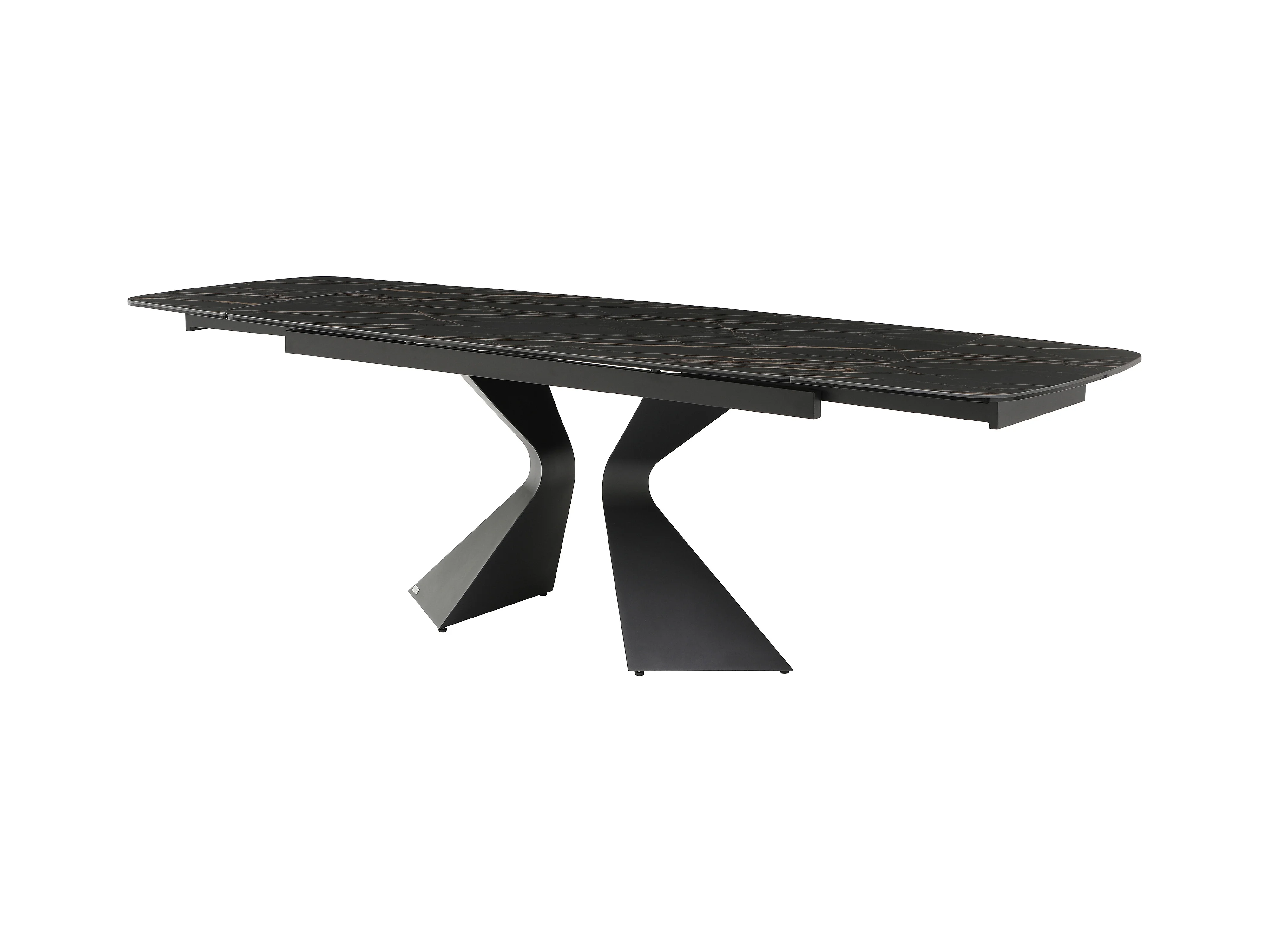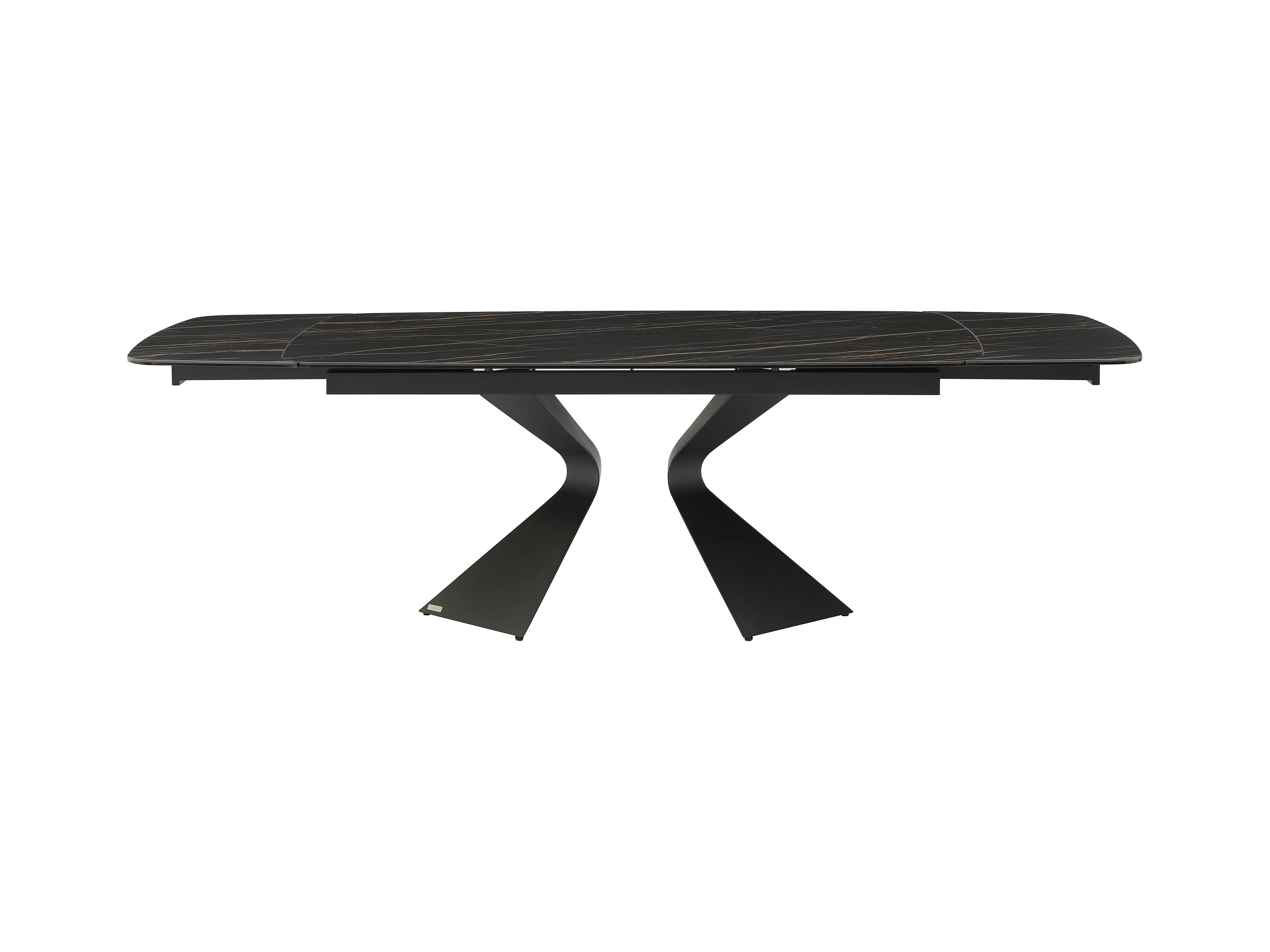 Esstisch ausziehbar - 6 bis 10 Personen - Sicherheitsglas, Keramik & Metall - Marmor-Optik Schwarz - KAJARI von Maison Céphy