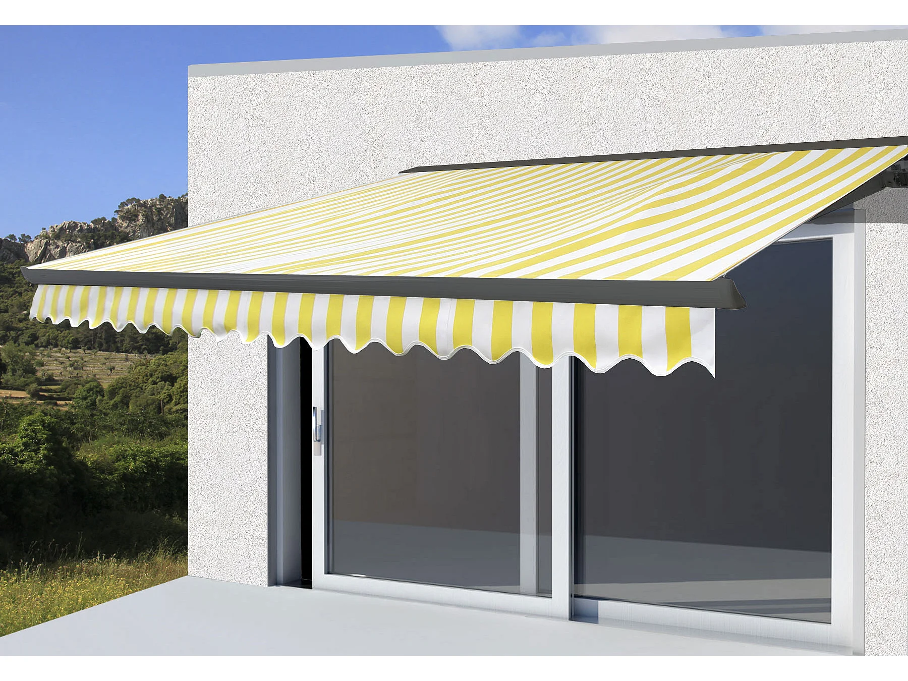 Kassetten-Markise H122 mit Volant, Polyester Gelb/Weiß, anthrazit