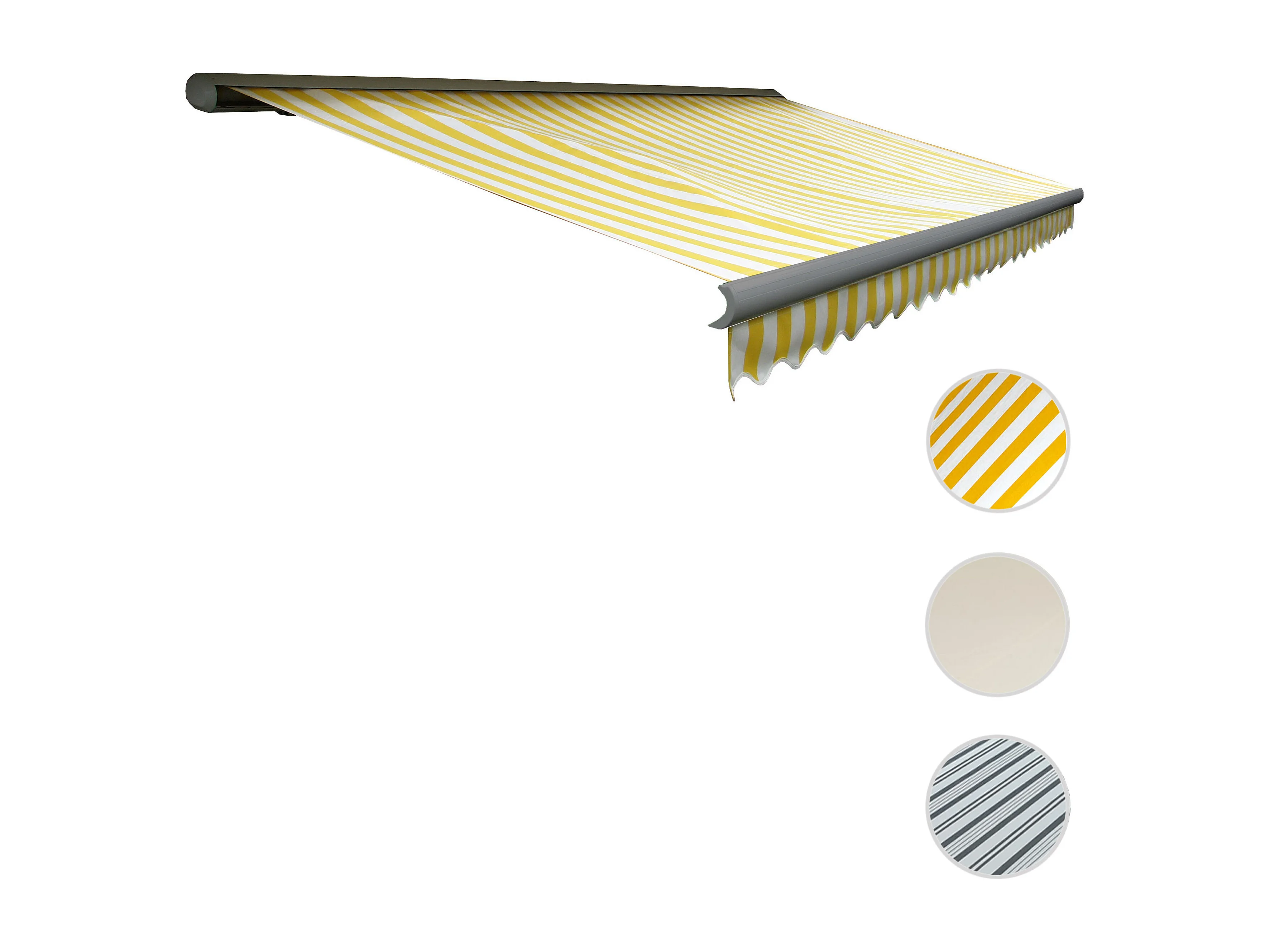 Kassetten-Markise H122 mit Volant, Polyester Gelb/Weiß, grau