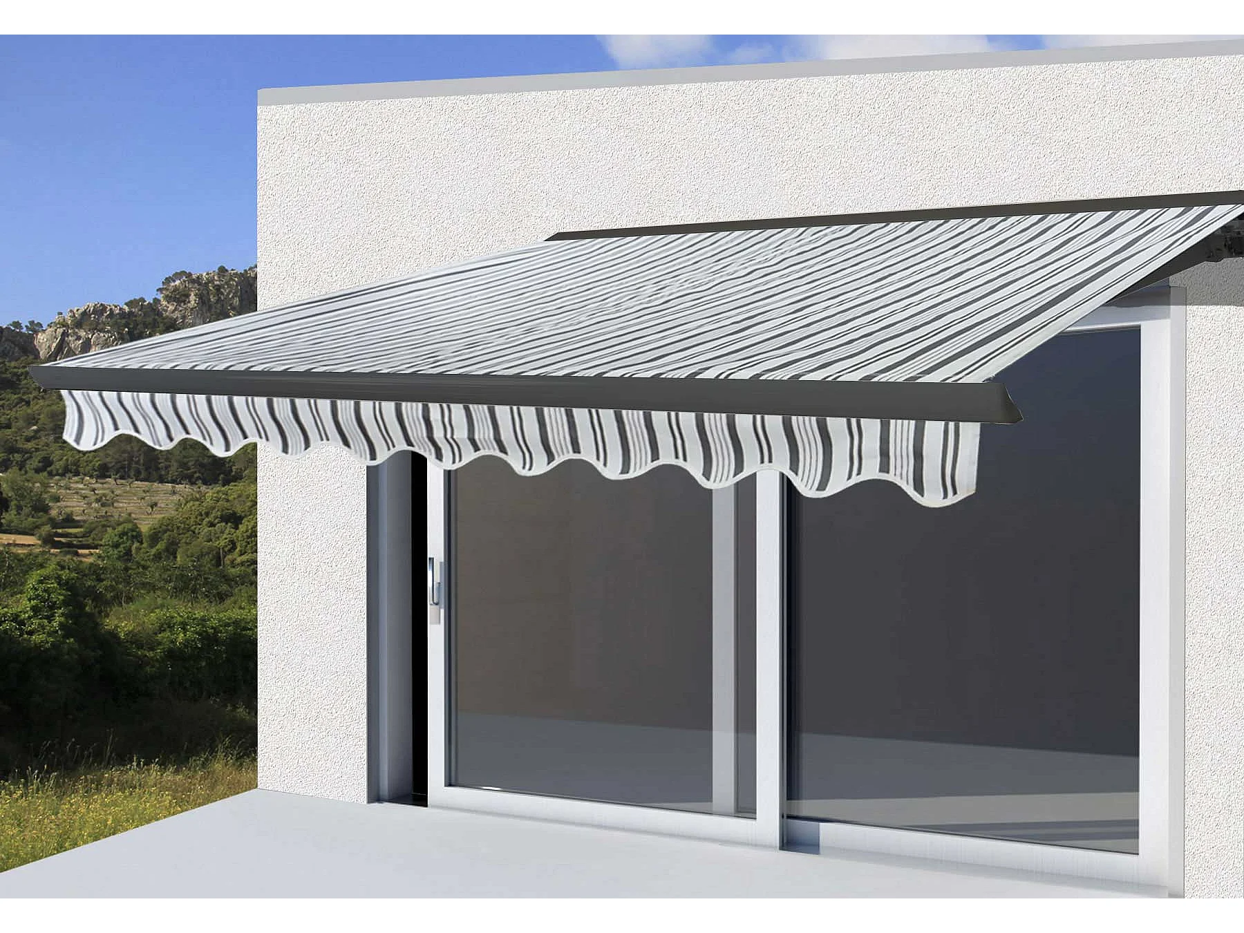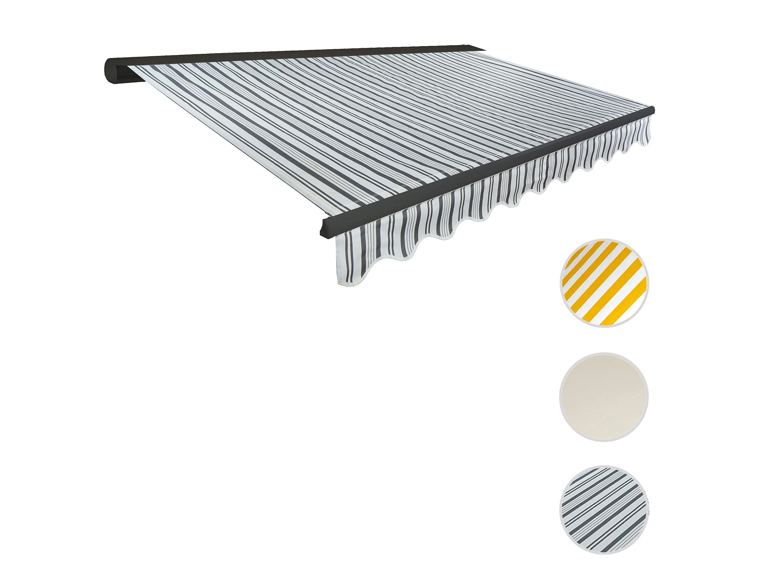 Kassetten-Markise H122 mit Volant, Polyester Grau/Weiß, anthrazit
